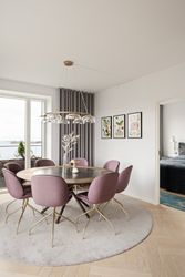 Fra entréen mødes du af en lys og gennemført stil, der fortsætter ind i det imponerende køkken-alrum med integreret stue – boligens naturlige samlingspunkt. Her er plads til både afslapning, madlavning og middage med panoramaudsigt over vandet.
