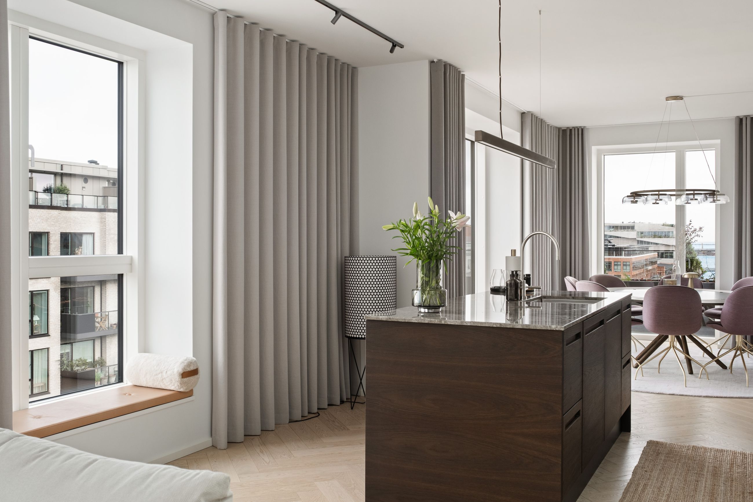 Velkommen til denne enestående penthouselejlighed på Kronløbsøen – et hjem, hvor æstetik, komfort og arkitektur forenes i perfekt harmoni.