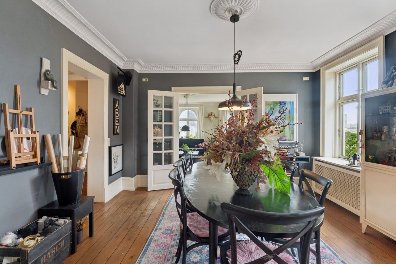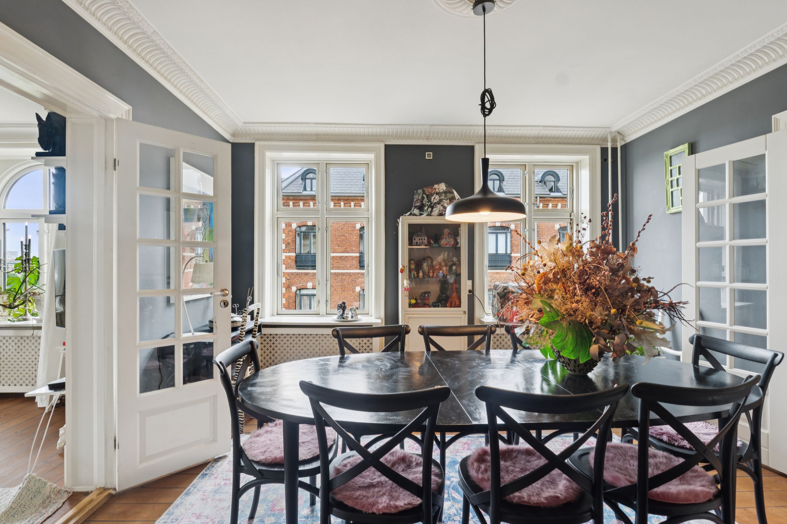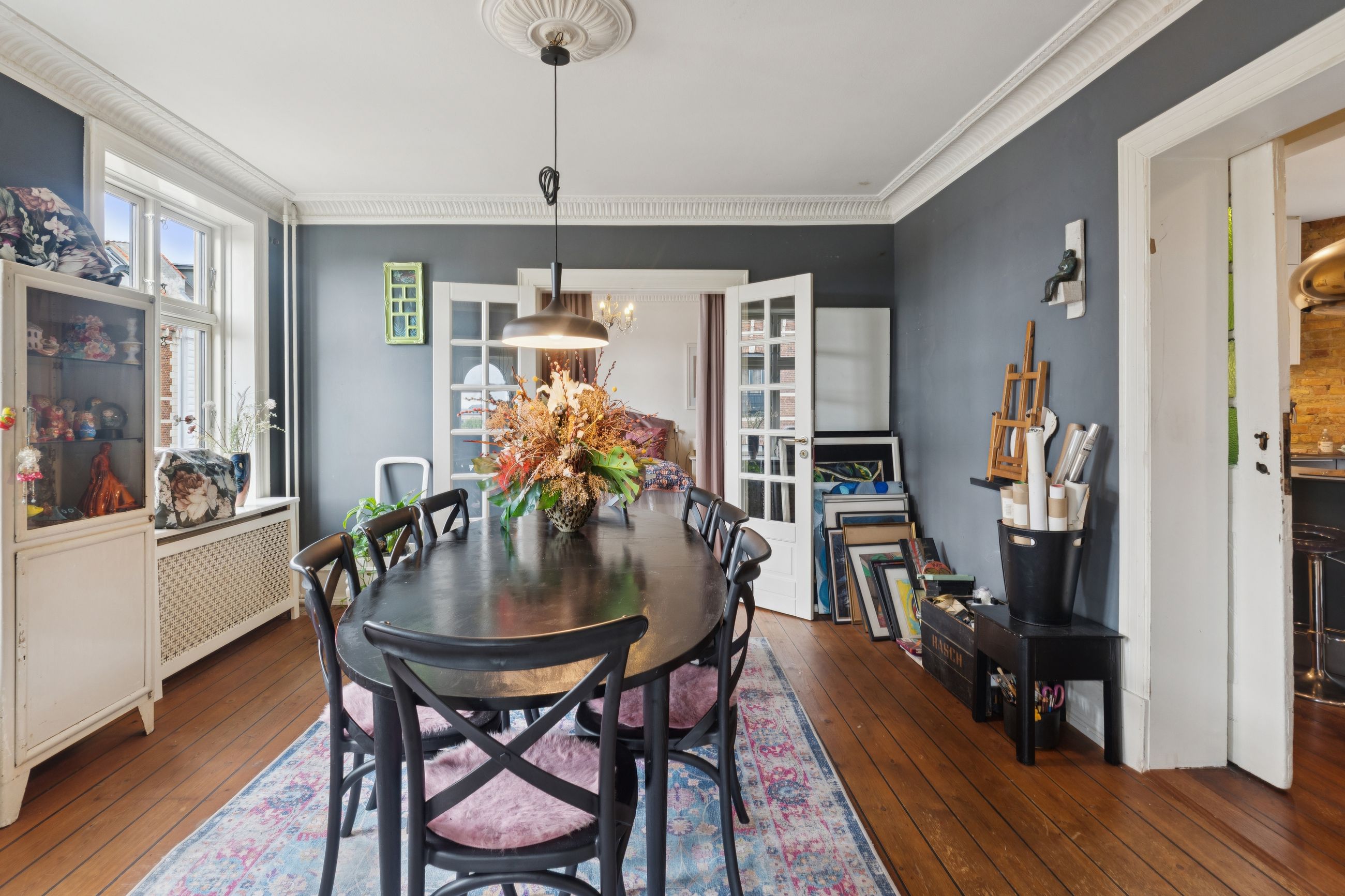 Udefra slås tonen an af den charmerende, klassiske københavnerejendom fra 1883, og den henrivende stil fortsætter inden døre, hvor der er flotte, herskabelige detaljer såsom stuk, radiatorskjulere og rosetter.