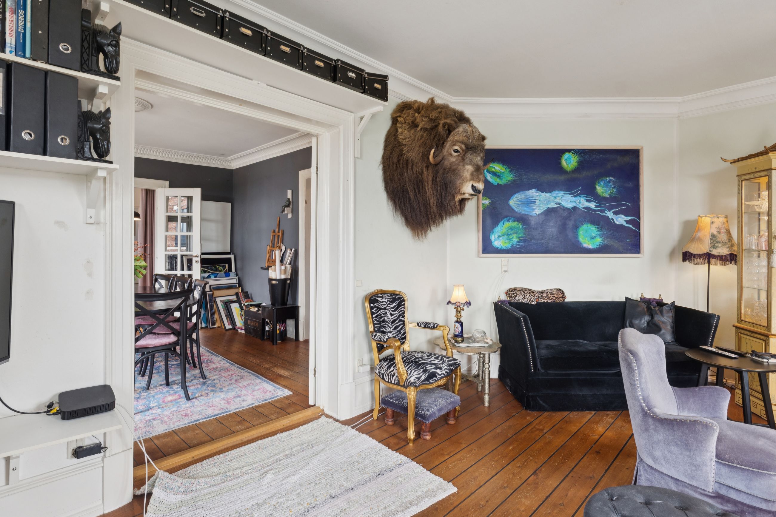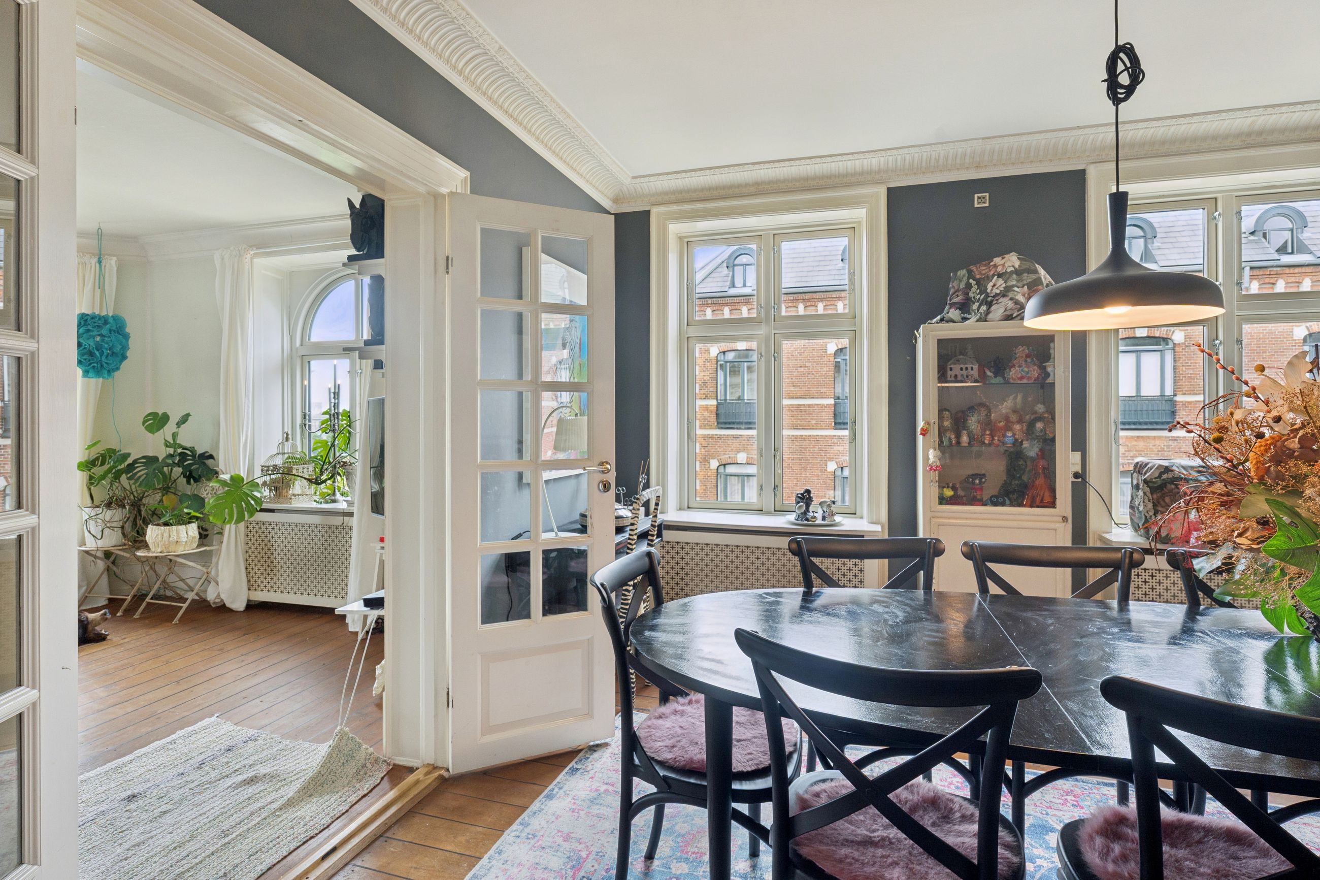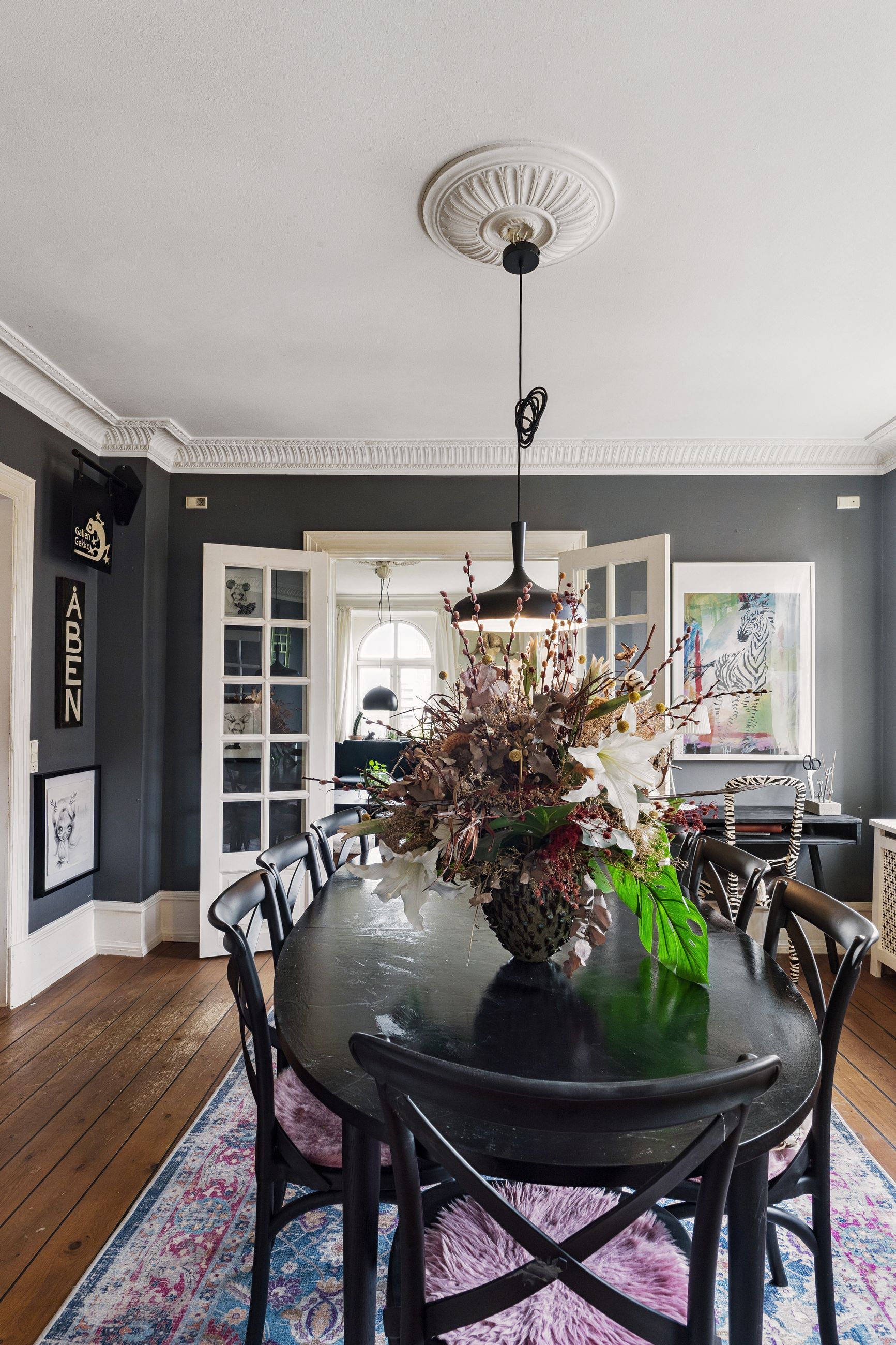 Udefra slås tonen an af den charmerende, klassiske københavnerejendom fra 1883, og den henrivende stil fortsætter inden døre, hvor der er flotte, herskabelige detaljer såsom stuk, radiatorskjulere og rosetter.
