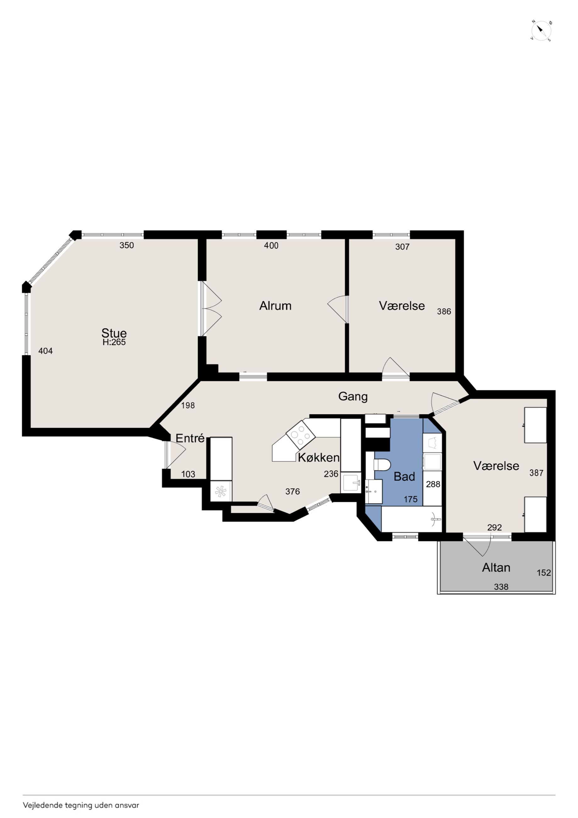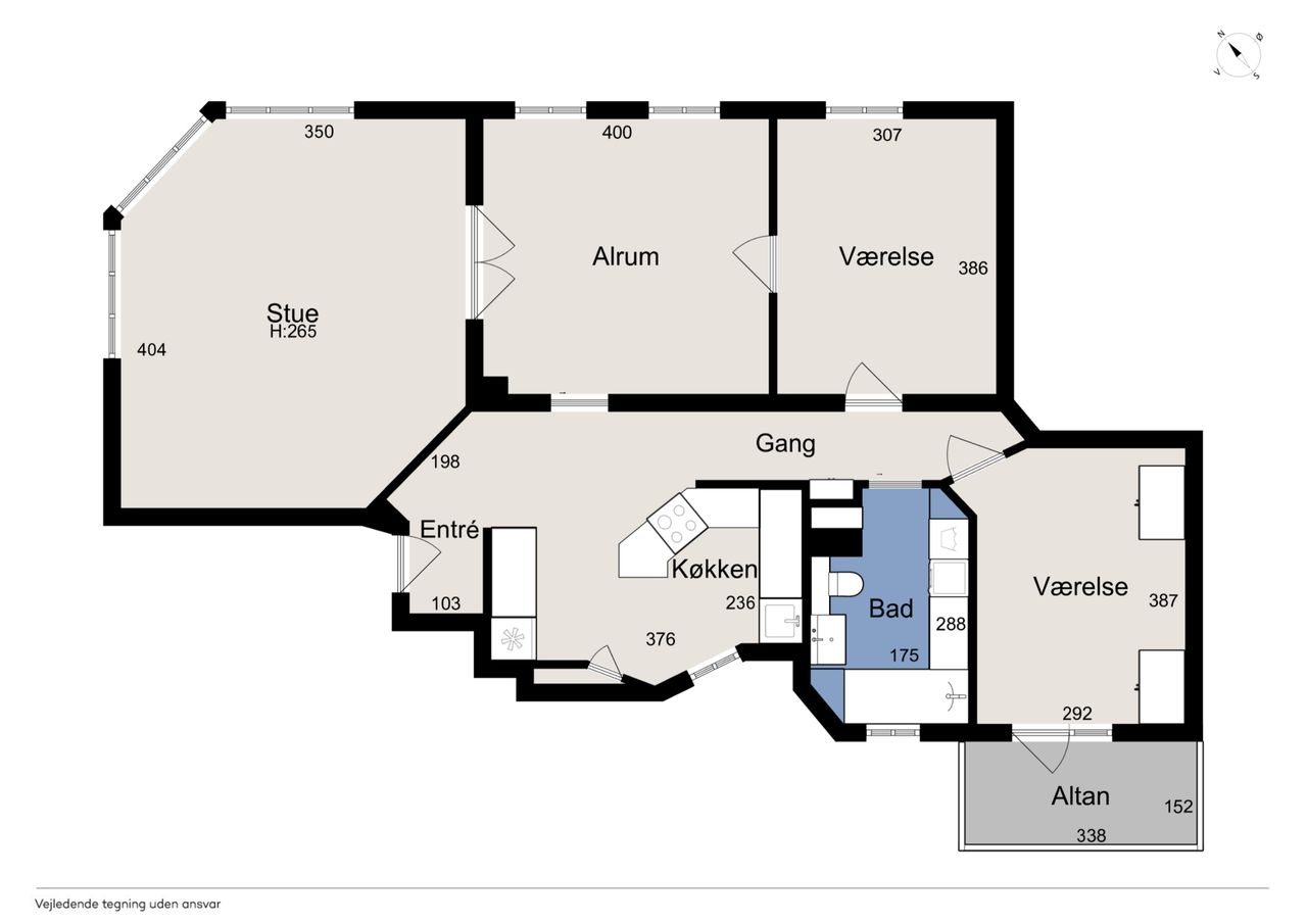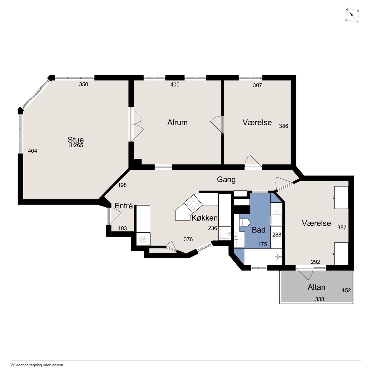 Den gode planløsning fordeler videre et rummeligt badeværelse med kar og plads til vaskemaskinen foruden et værelse, og skulle I få brug for et ekstra, kan I sagtens tage en af stuerne i brug til formålet.
