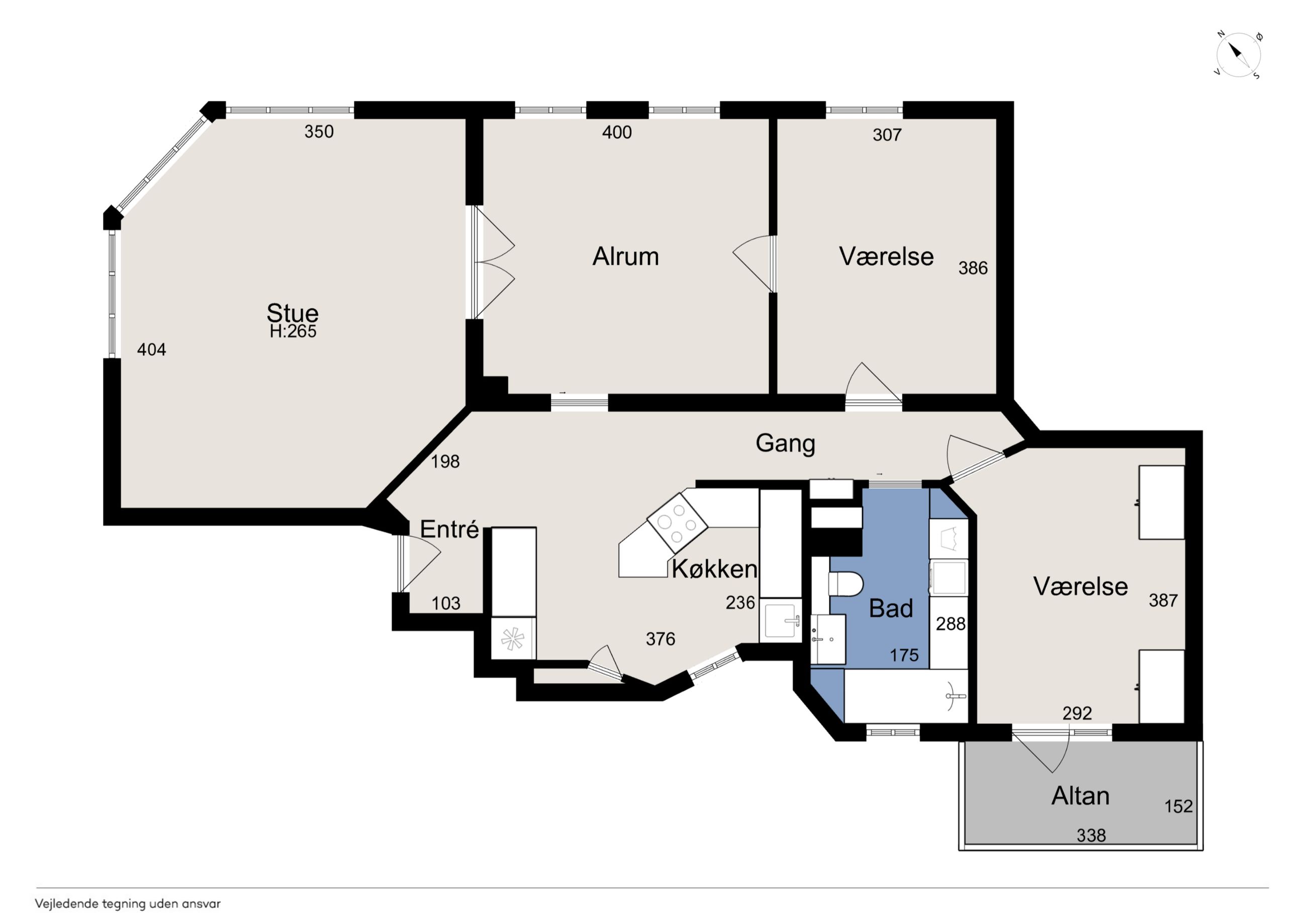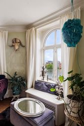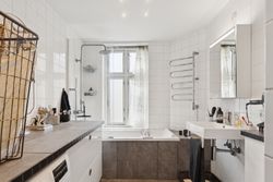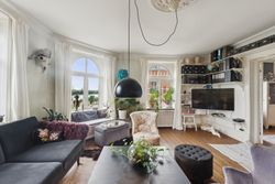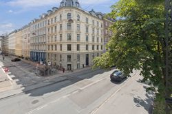 Ved ankomst drages I mod de tre stuer en suite, hvor den betagende udsigt til Søerne kommer til sin ret. Da ejendommen samtidig ligger på et hjørne, modtager rummene også et fremragende lysindfald. Tag turen videre til køkkenet, der står præsentabelt med nydelige elementer og dejligt med plads.