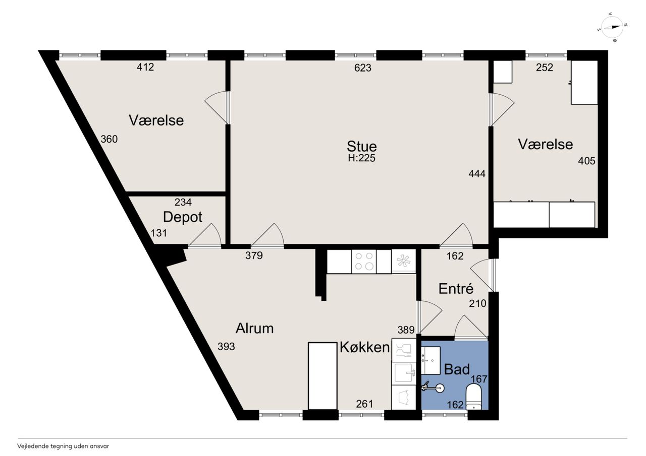Charmerende lejlighed med ideel plantegning og flot lysindfald