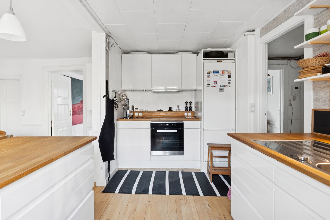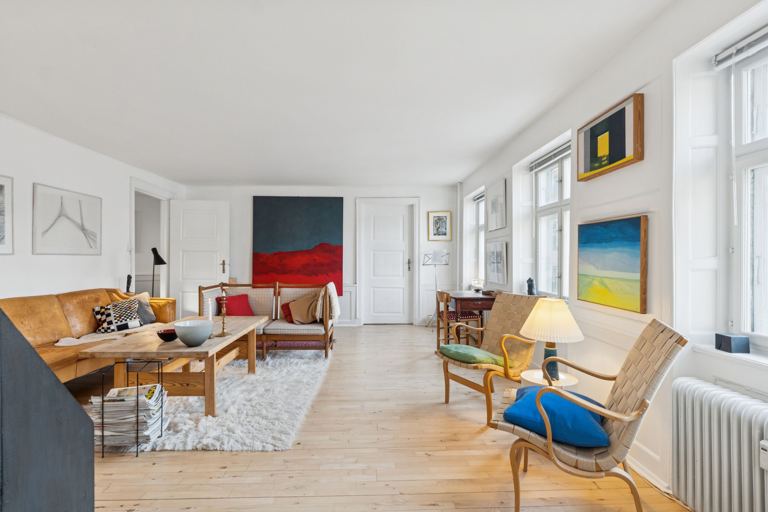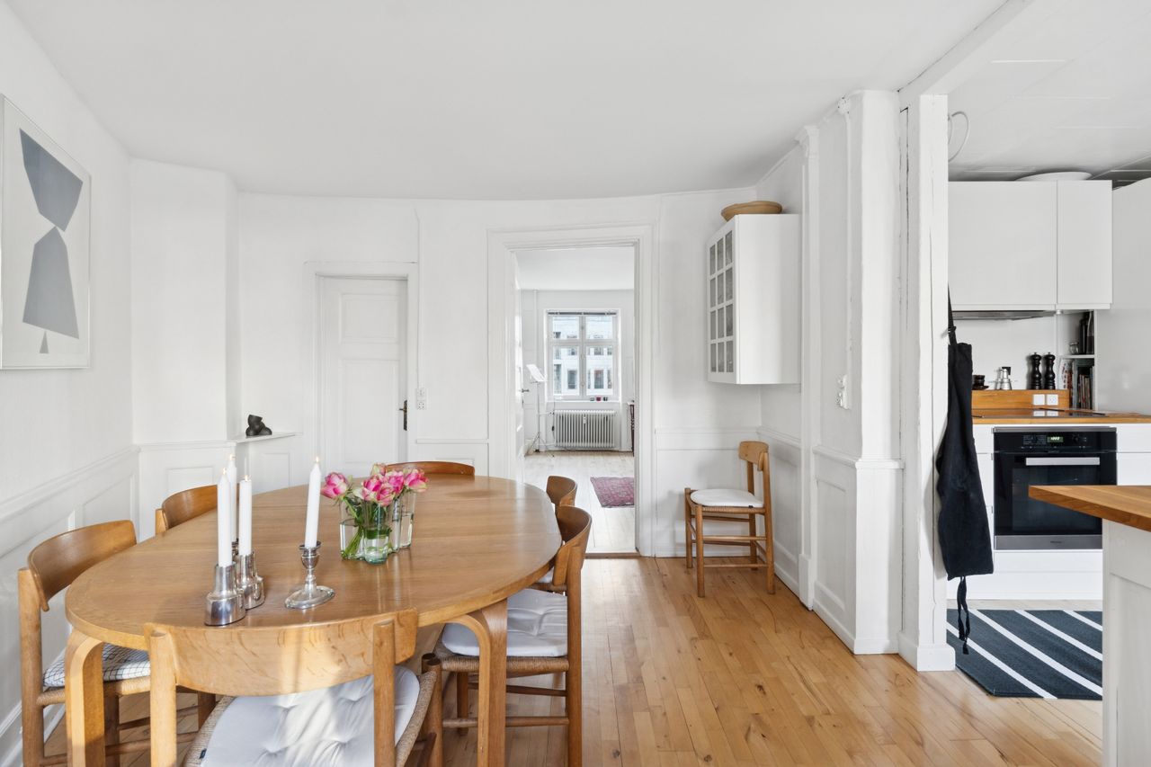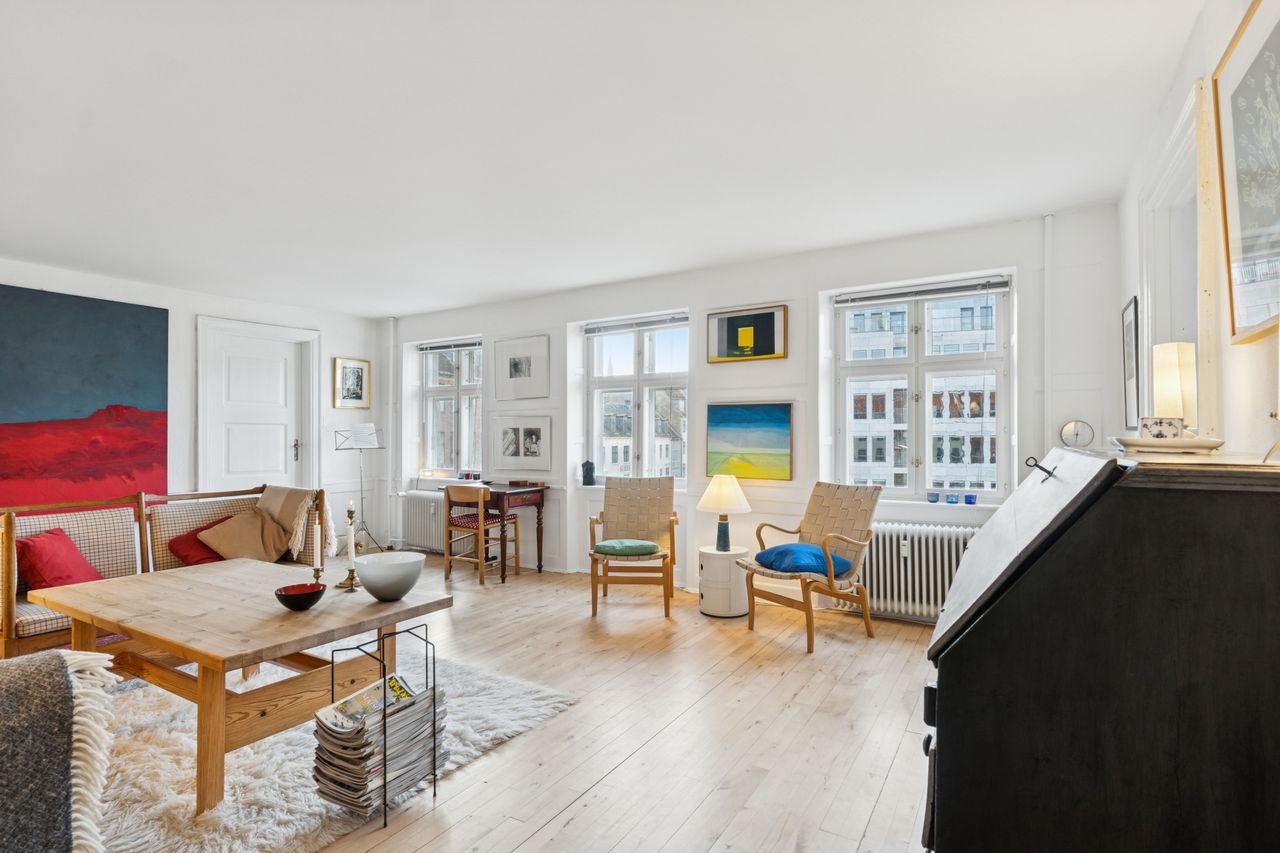 På Hauser Plads ligger der et meget fint byggeri, som kan dateres tilbage til 1831. Netop her, nærmere bestemt på tredje sal, udbydes nu denne store treværelses til salg. Autentisk charme og smukke lysindfald kendetegner boligen, der blandt andet er indrettet med et tidssvarende køkken-alrum.