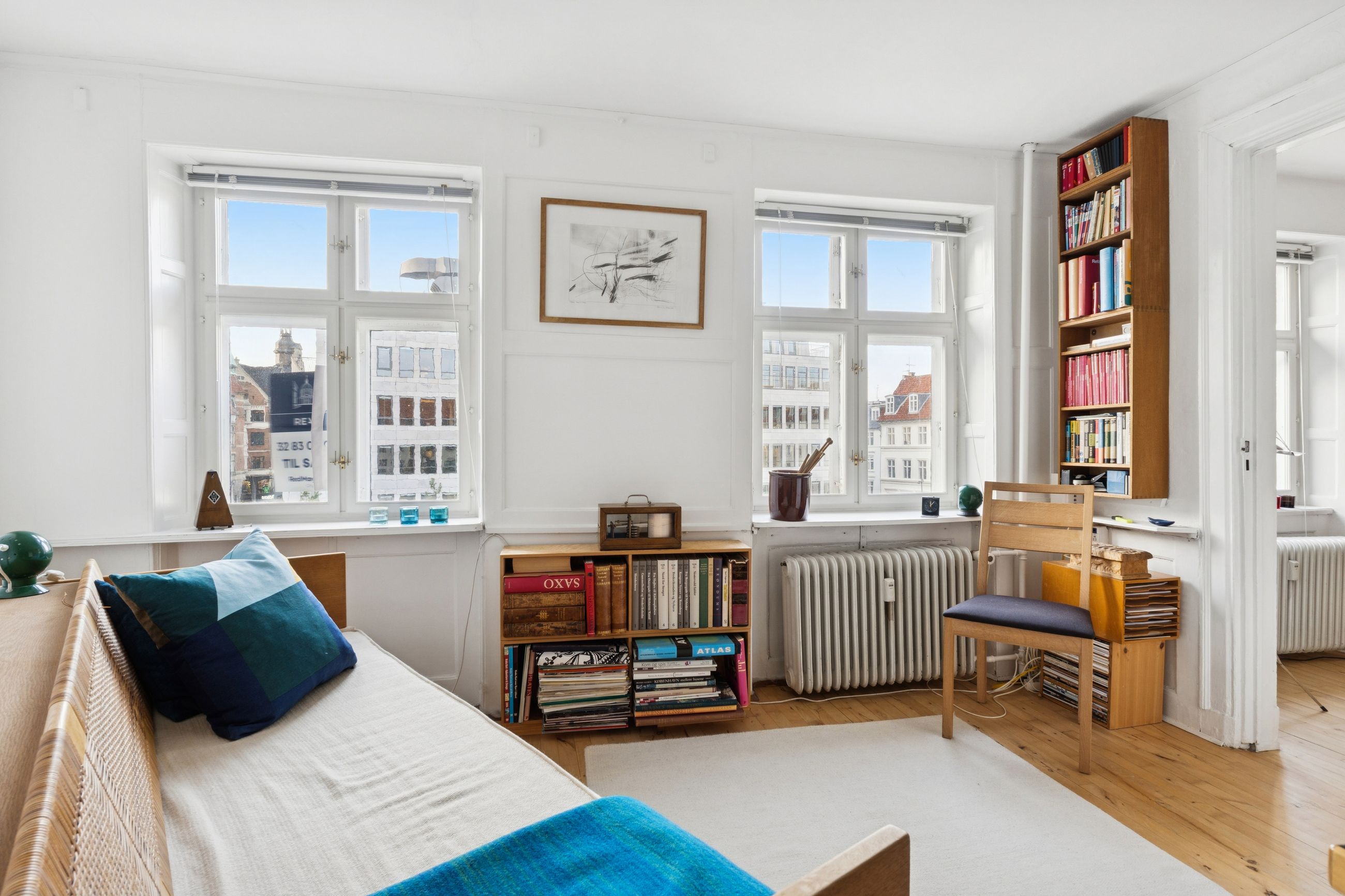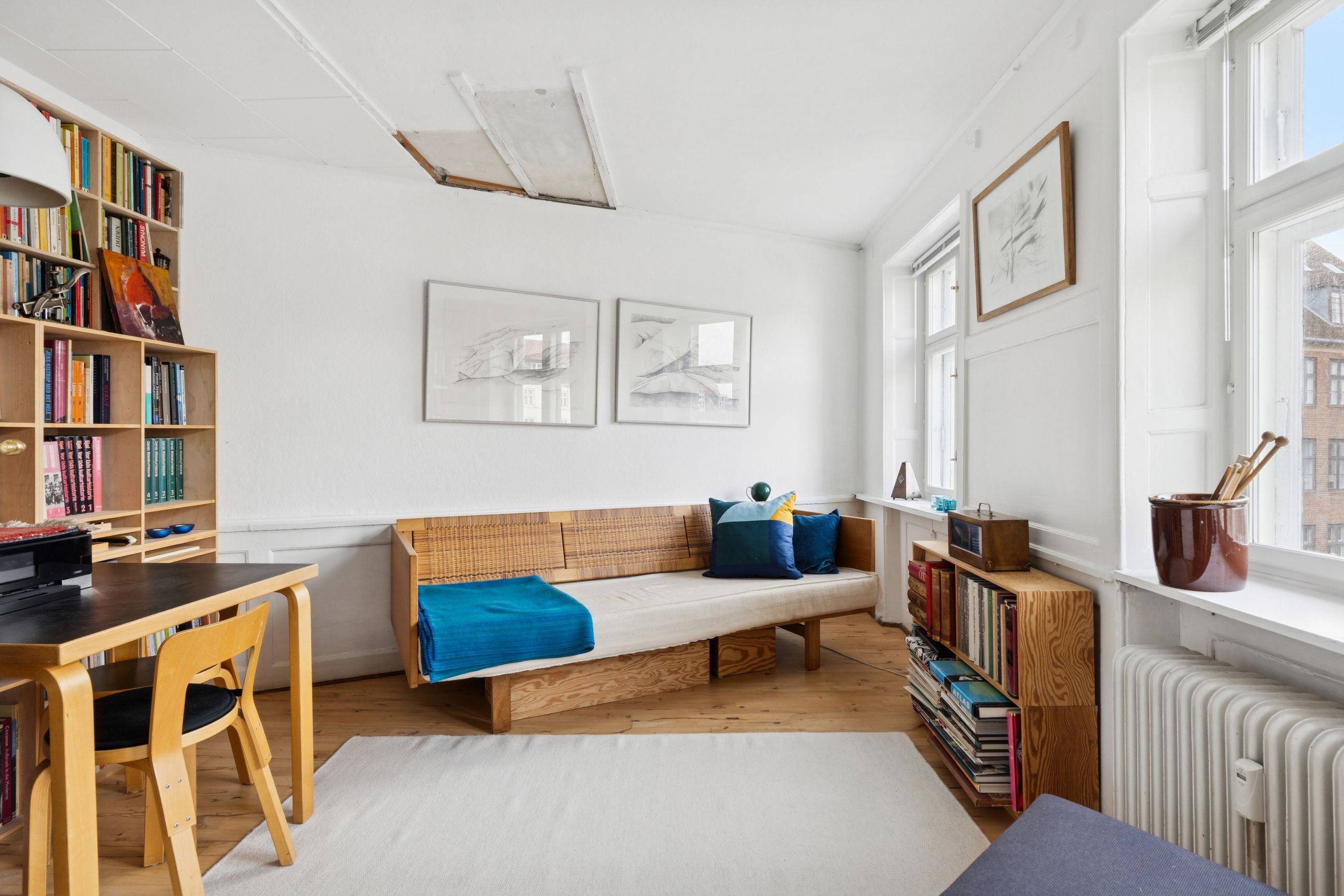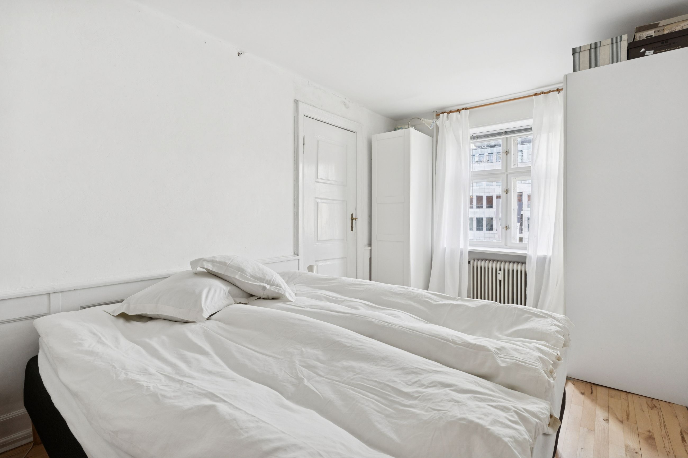 På Hauser Plads ligger der et meget fint byggeri, som kan dateres tilbage til 1831. Netop her, nærmere bestemt på tredje sal, udbydes nu denne store treværelses til salg. Autentisk charme og smukke lysindfald kendetegner boligen, der blandt andet er indrettet med et tidssvarende køkken-alrum.
