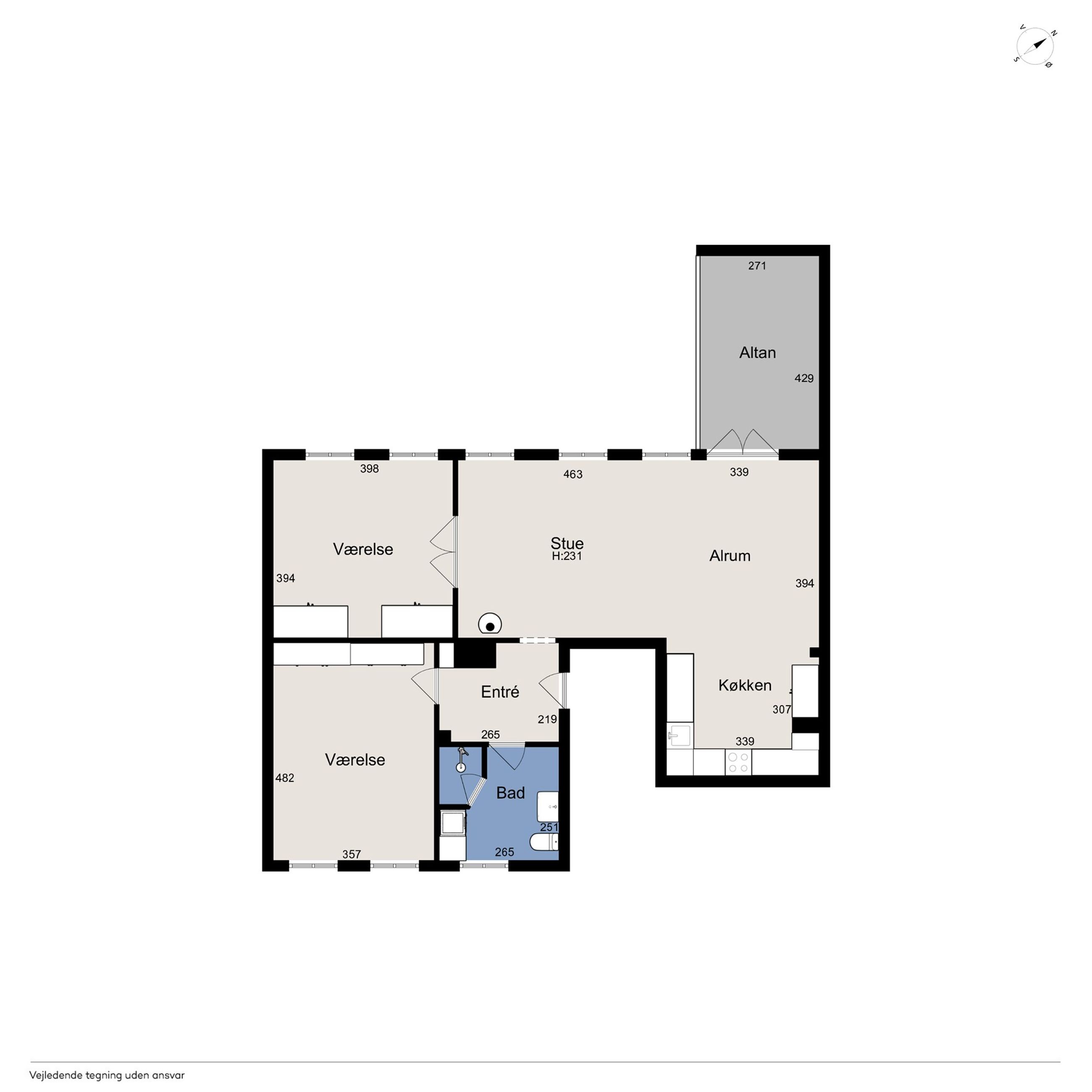 Fra alrummet er der udgang til tagterrassen, hvor du kan nyde sommersolen med følelsen af at være helt dig selv. Endelig kan du se frem til at indrette to store værelser og et indbydende badeværelse med bruseniche.