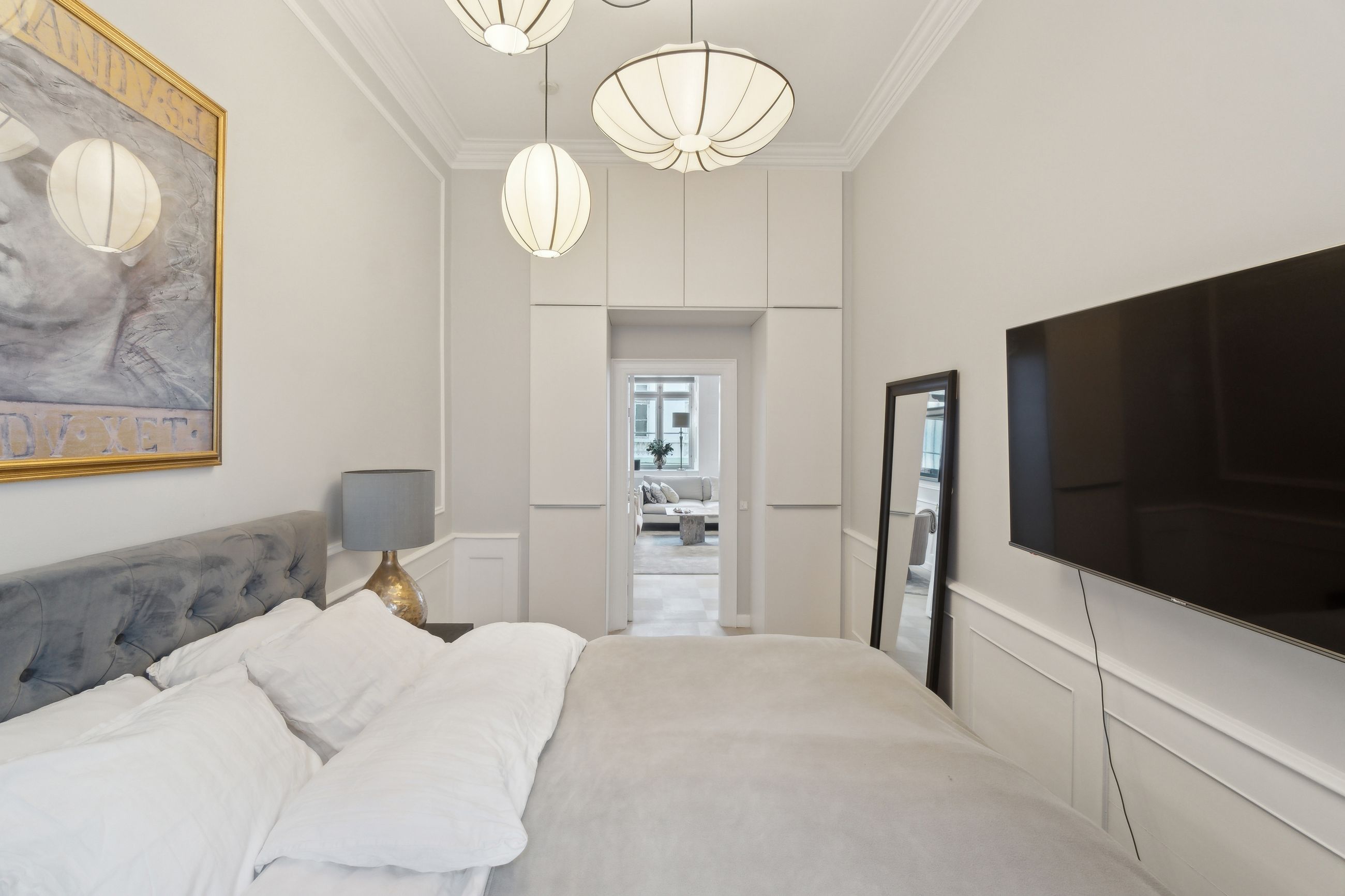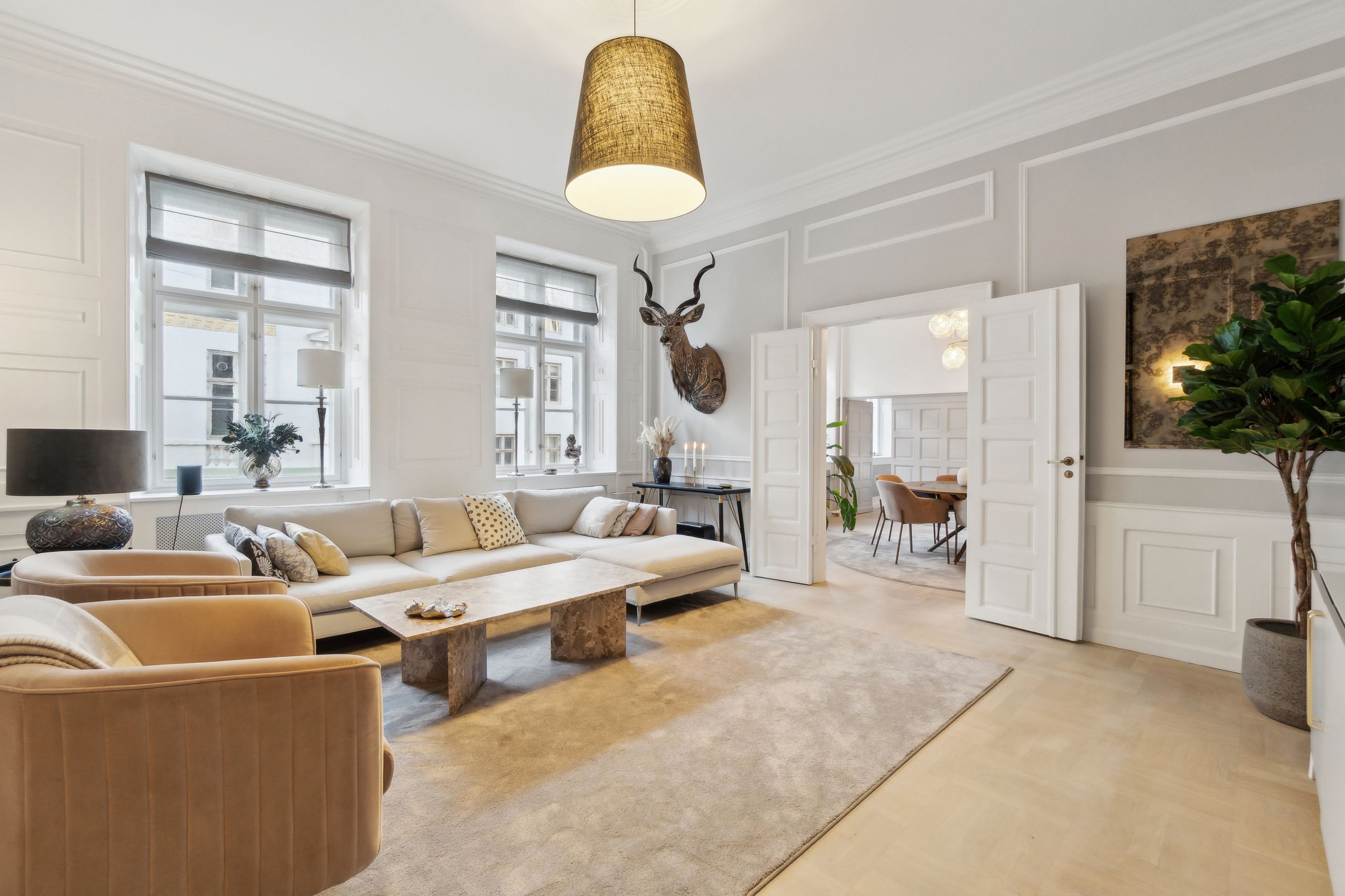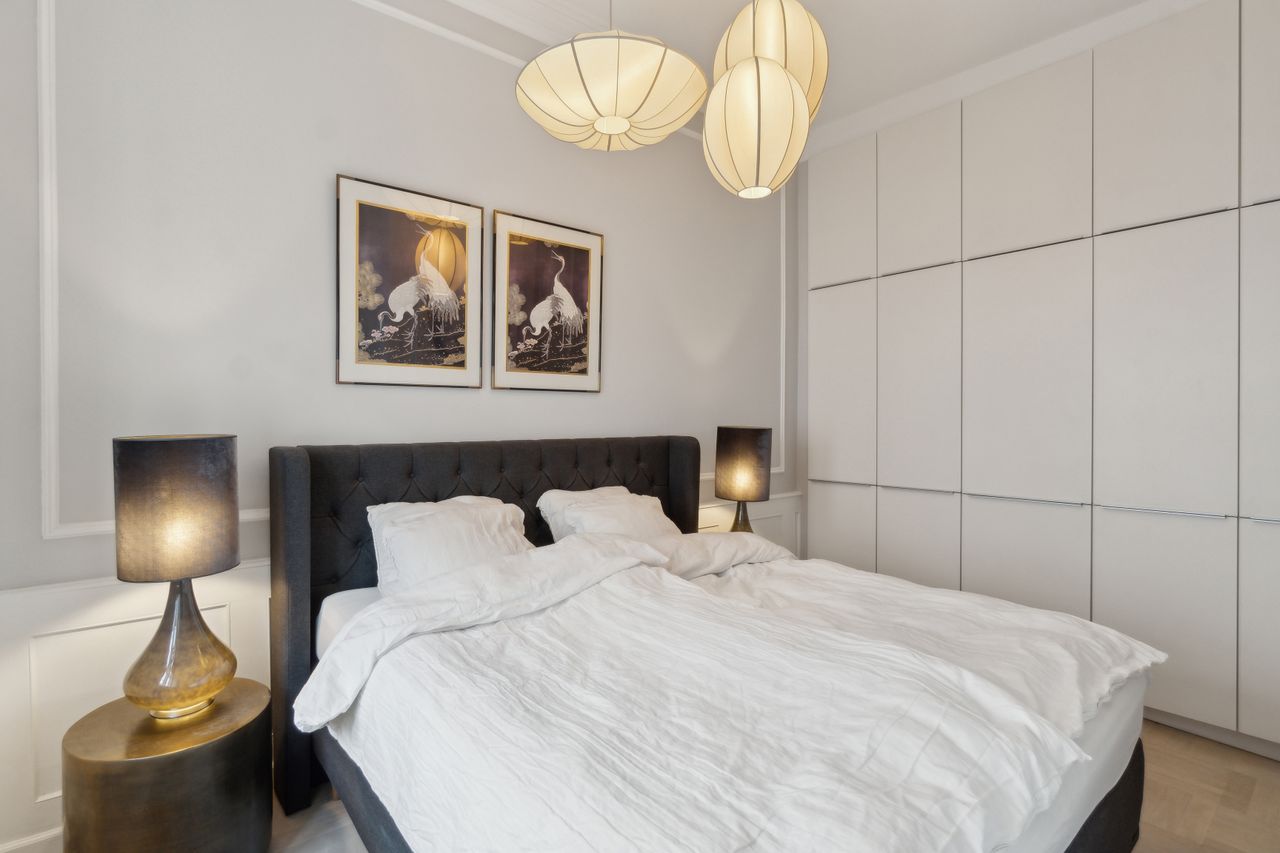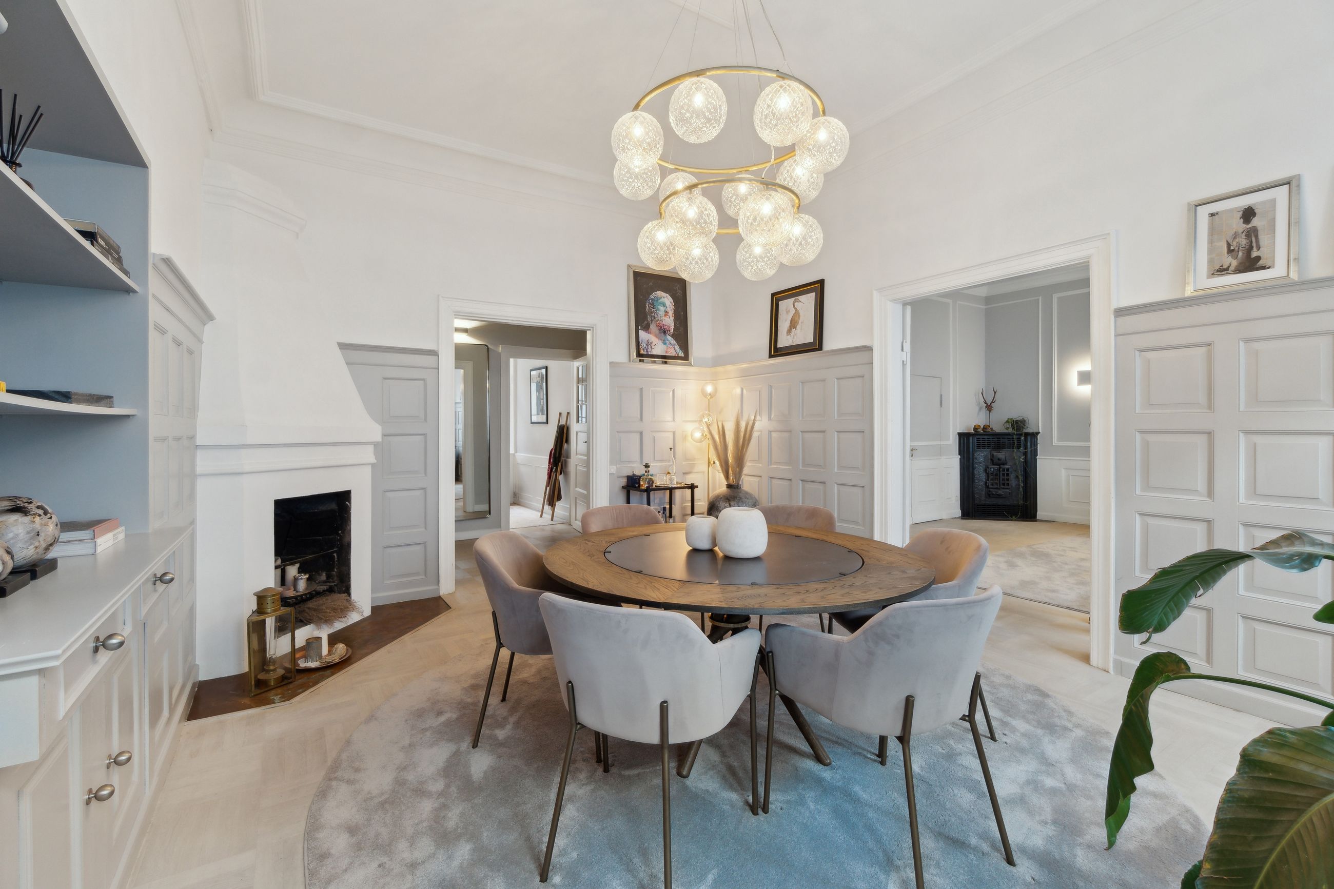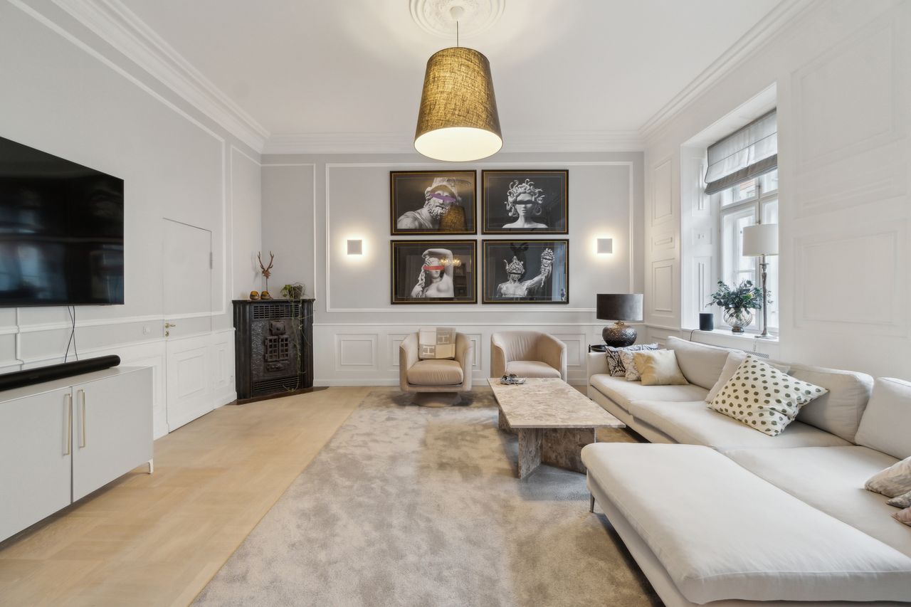 Flotte detaljer, høje vægpaneler og en herskabelig stil er netop, hvad der venter jer i denne elegante