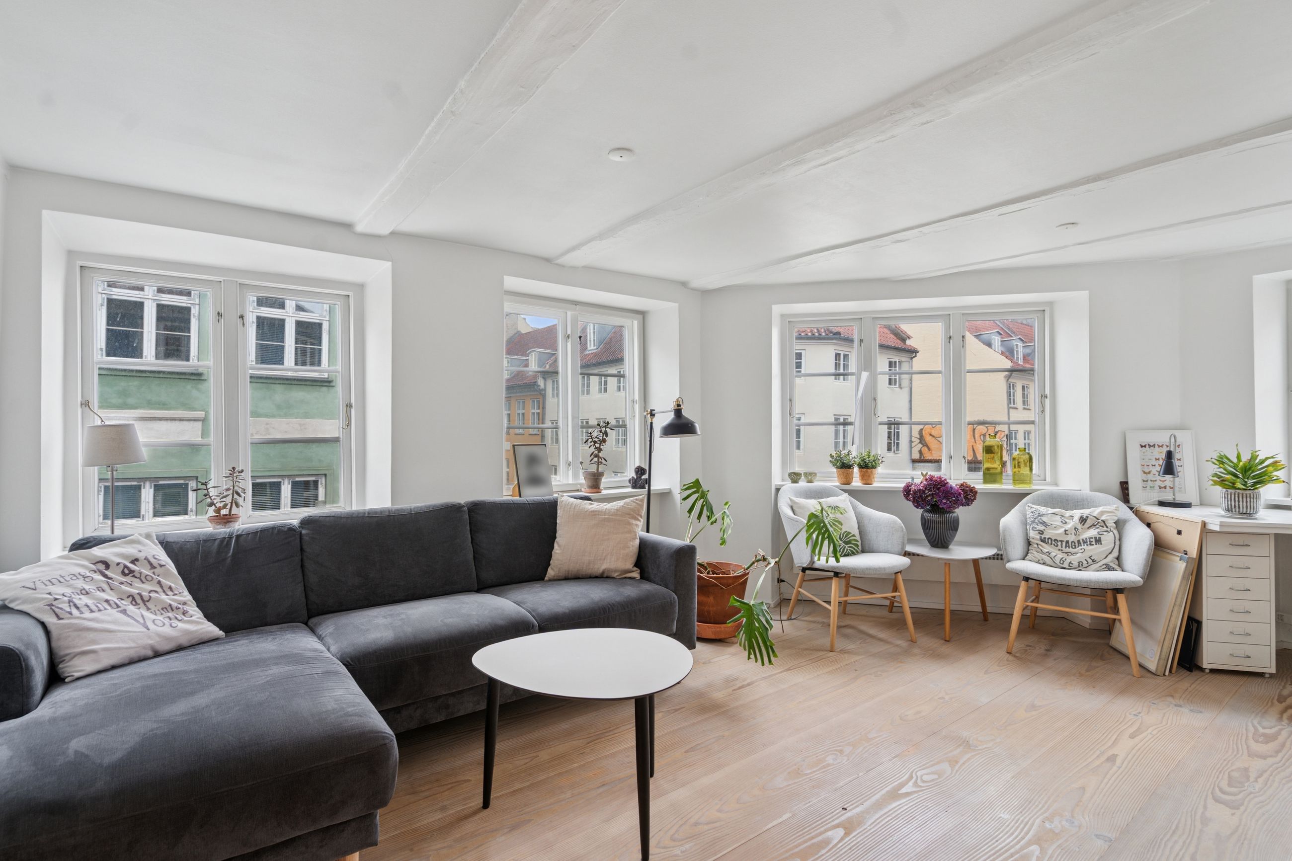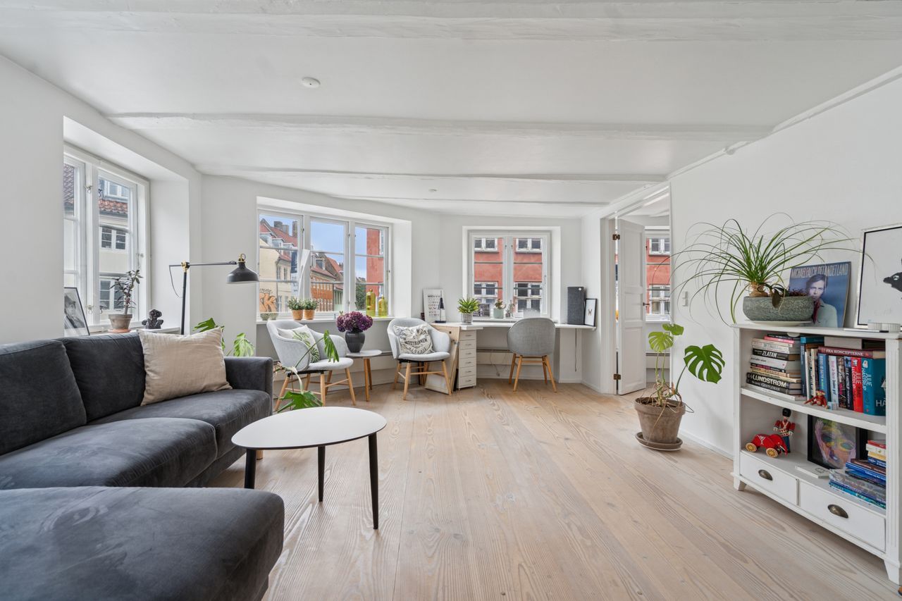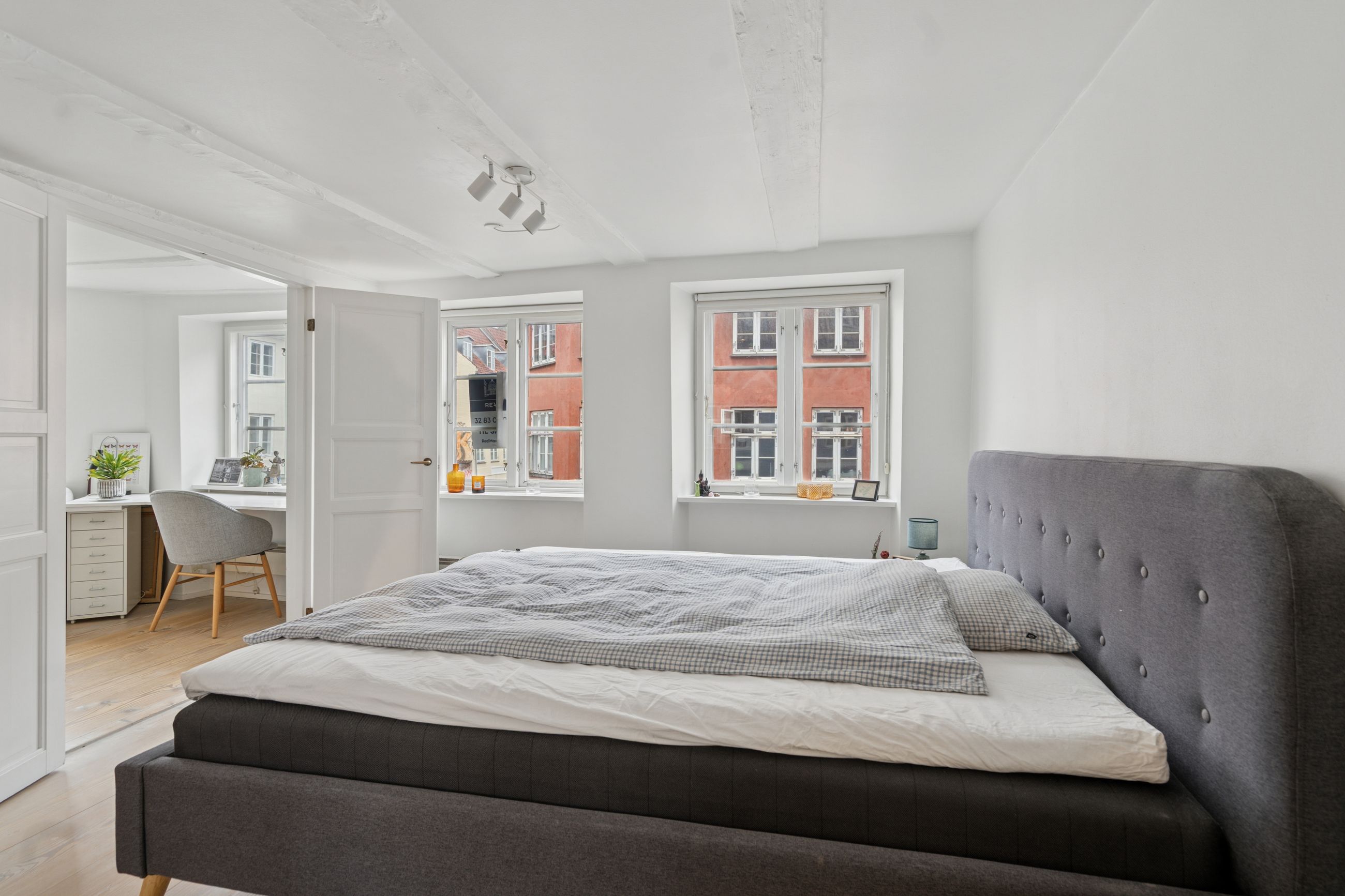Lejligheden er placeret midt i bybilledet i en ældre, klassisk ejendom fra 1798. Bag ejendommen gemmer sig et af København K's fedeste gårdmiljøer, hvor I kan søge ned og nyde de lune sommerdage.