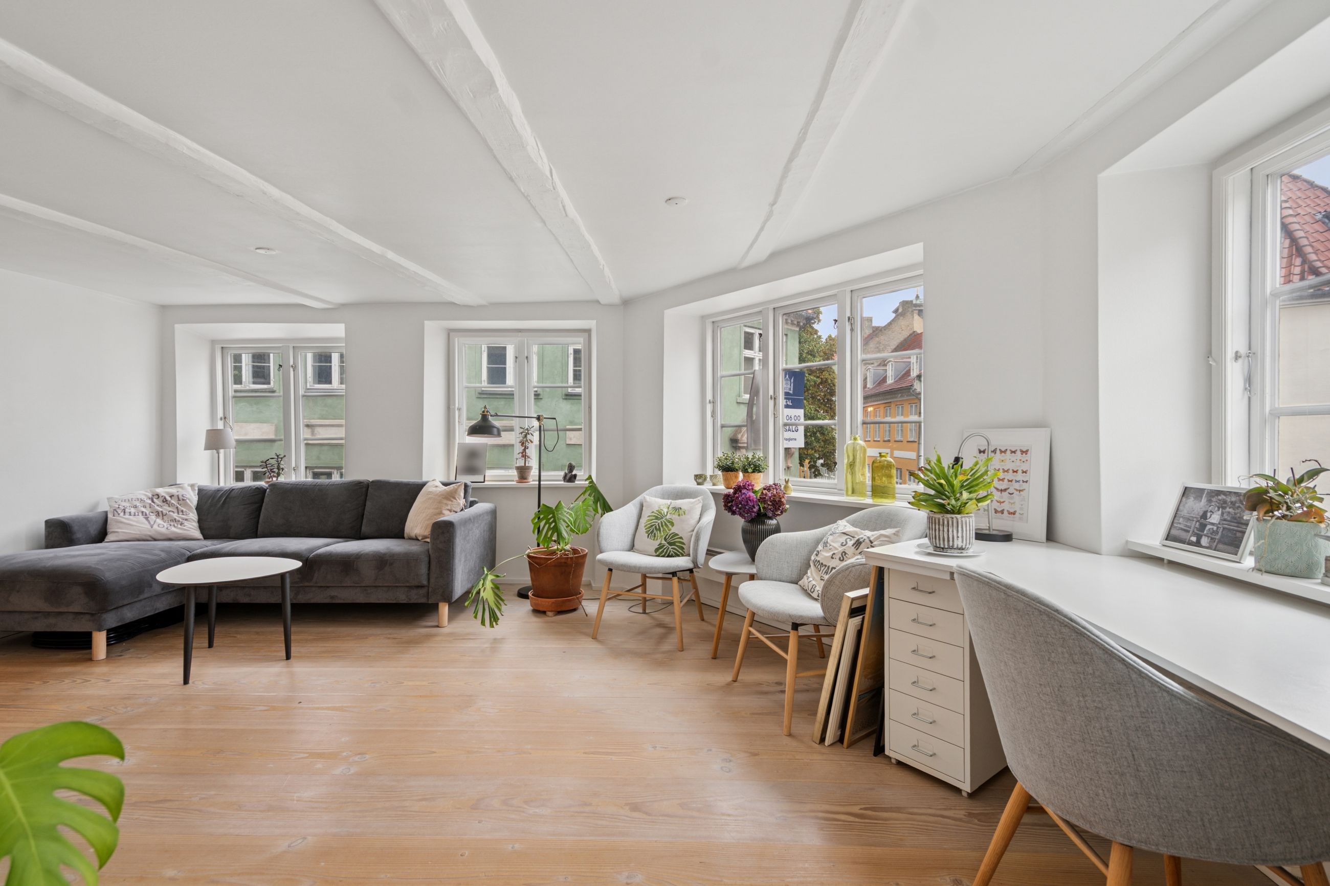 I hjertet af det indre København møder I denne hyggelige hjørnelejlighed på anden sal, som udgør en dejlig base for parret, der gerne vil bo tæt på bylivets puls. Indretningen er veldisponeret med gode opholdsrum, et værelse og et badeværelse, og dertil kommer den fortrinlige beliggenhed i den centrale del af Latinerkvarteret.