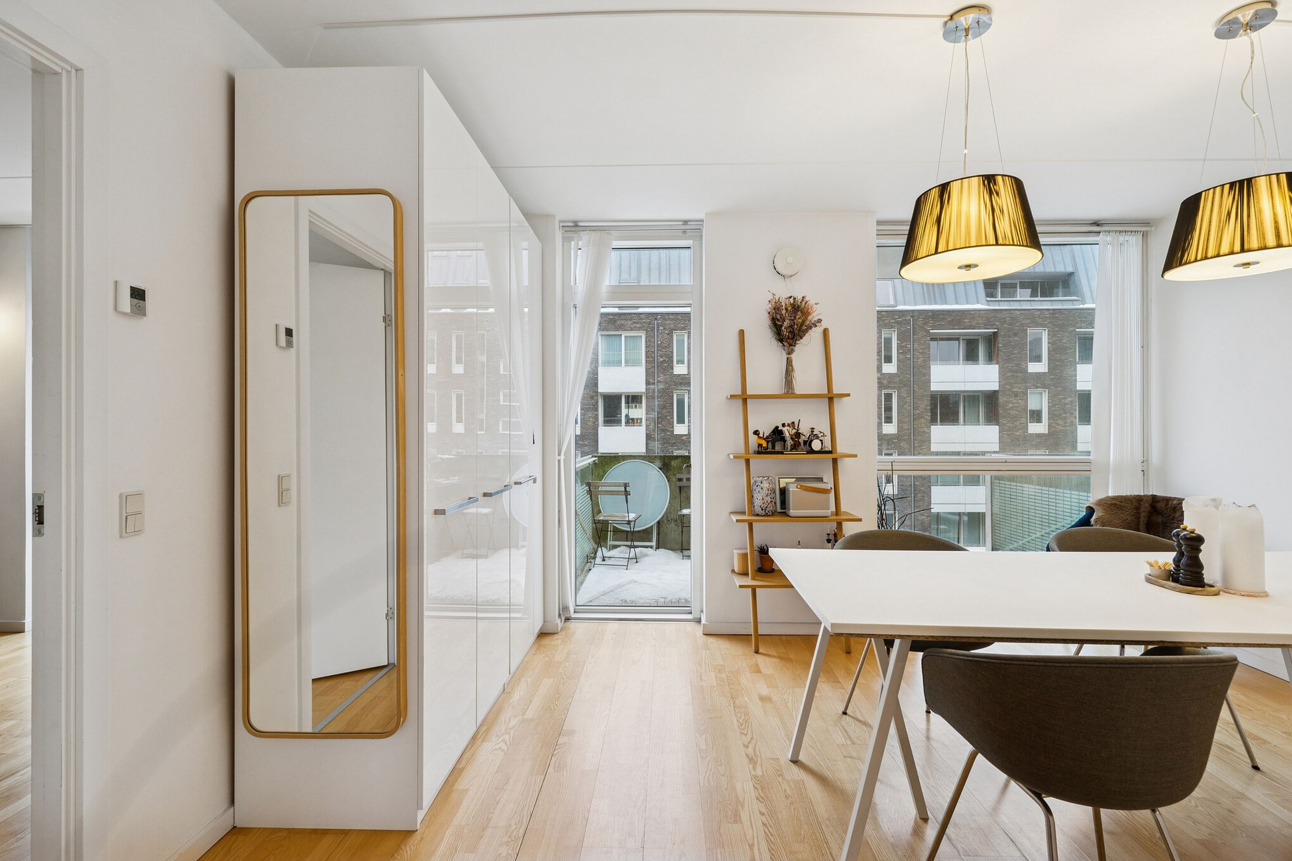 I bosætter jer yderst centralt. Til den ene side har I Islands Brygge med Havnebadet og gåture langs promenaden. I den anden retning finder I alle de mange muligheder, som Amagerbro byder på, og fordi I er så tæt på Langebro, tager det rundt regnet ti minutter at gå til Rådhuspladsen. Og alligevel er der helt fredeligt og roligt i lokalområdet.