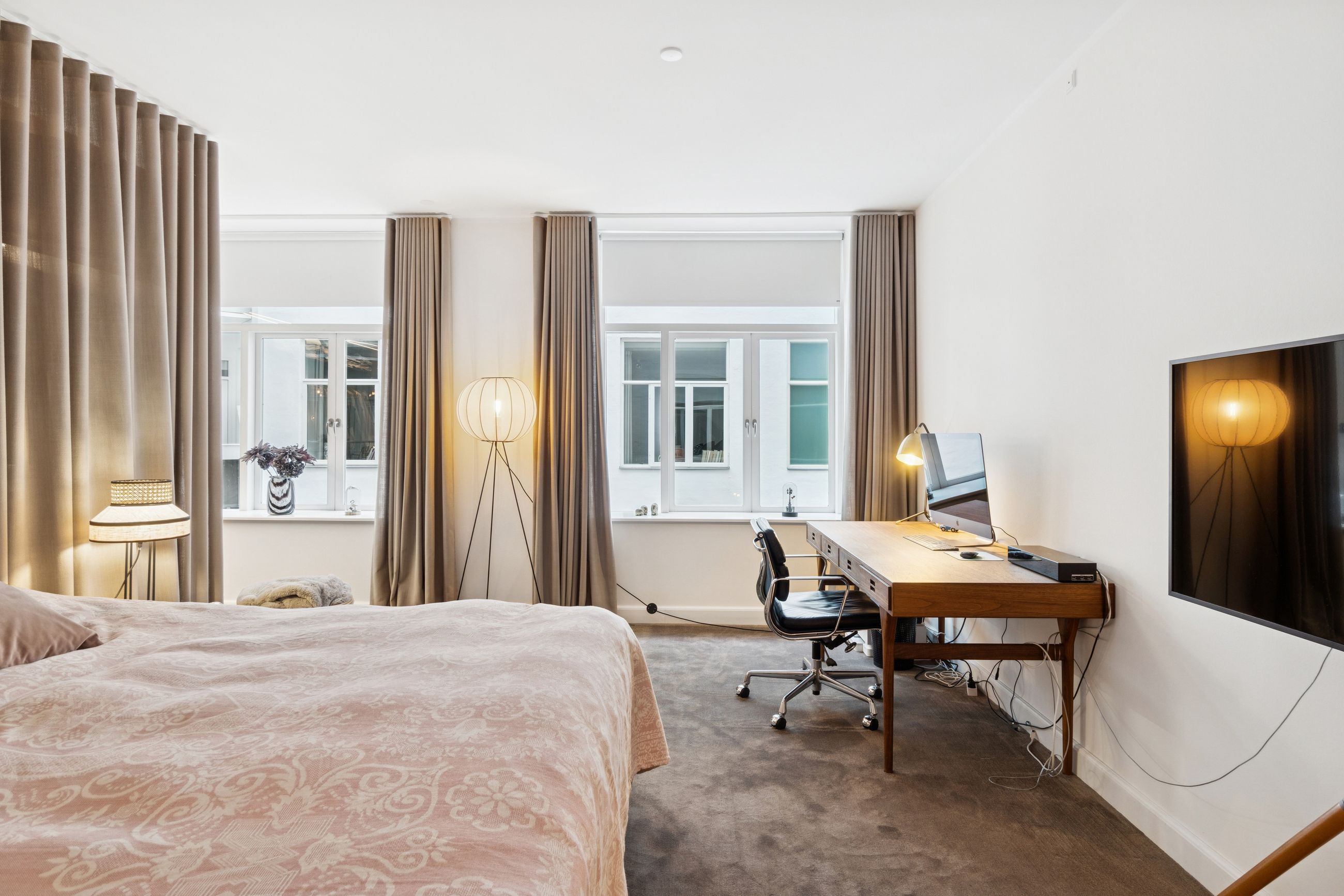 Denne elegante lejlighed forener en god planløsning, stilrene materialer og en beliggenhed i absolut særklasse. Ejendommen fremstår indbydende og velholdt med elevator og en hyggelig gårdhave, der skaber et roligt modspil til bylivet udenfor.