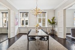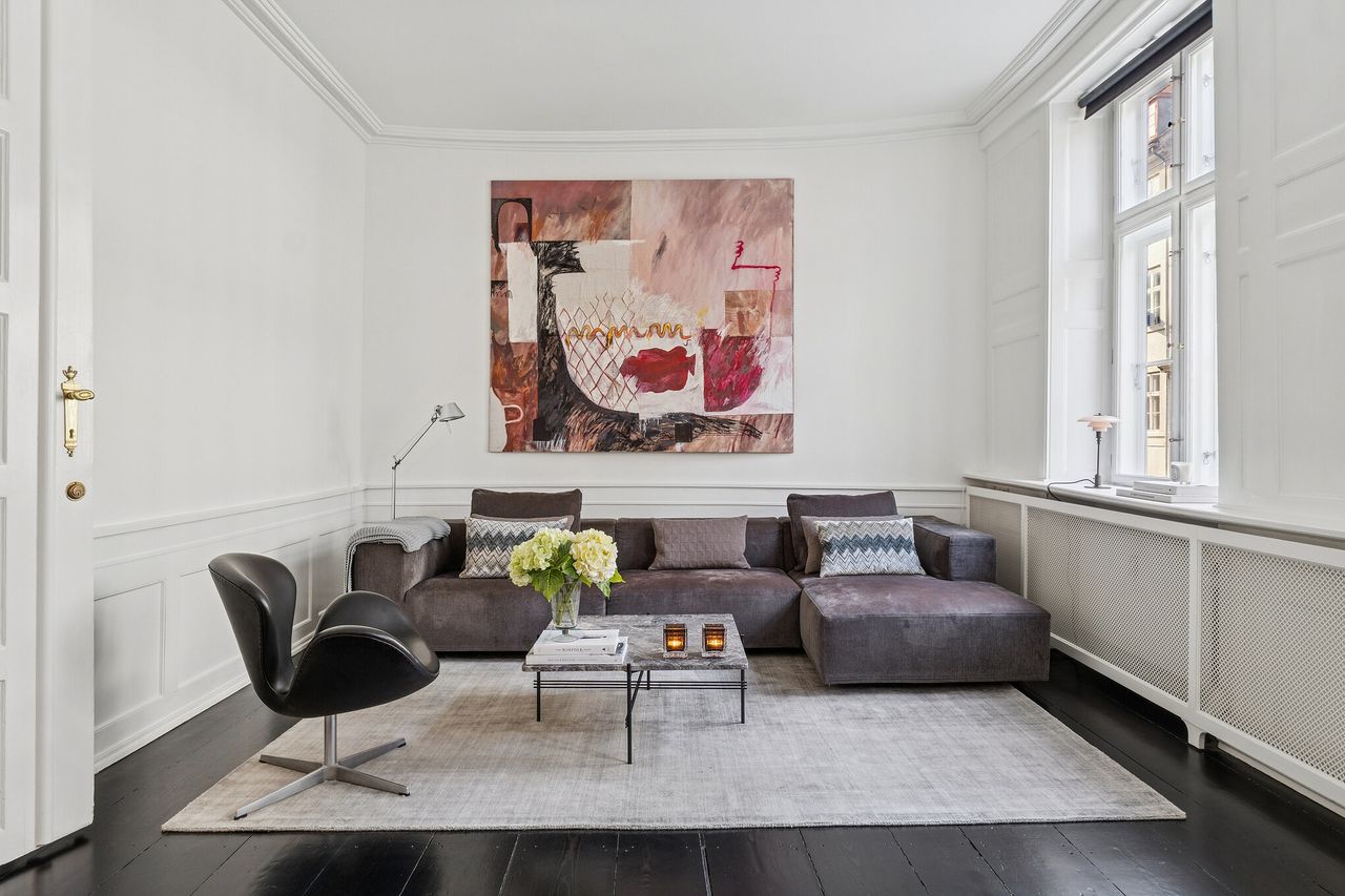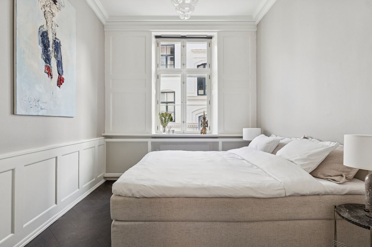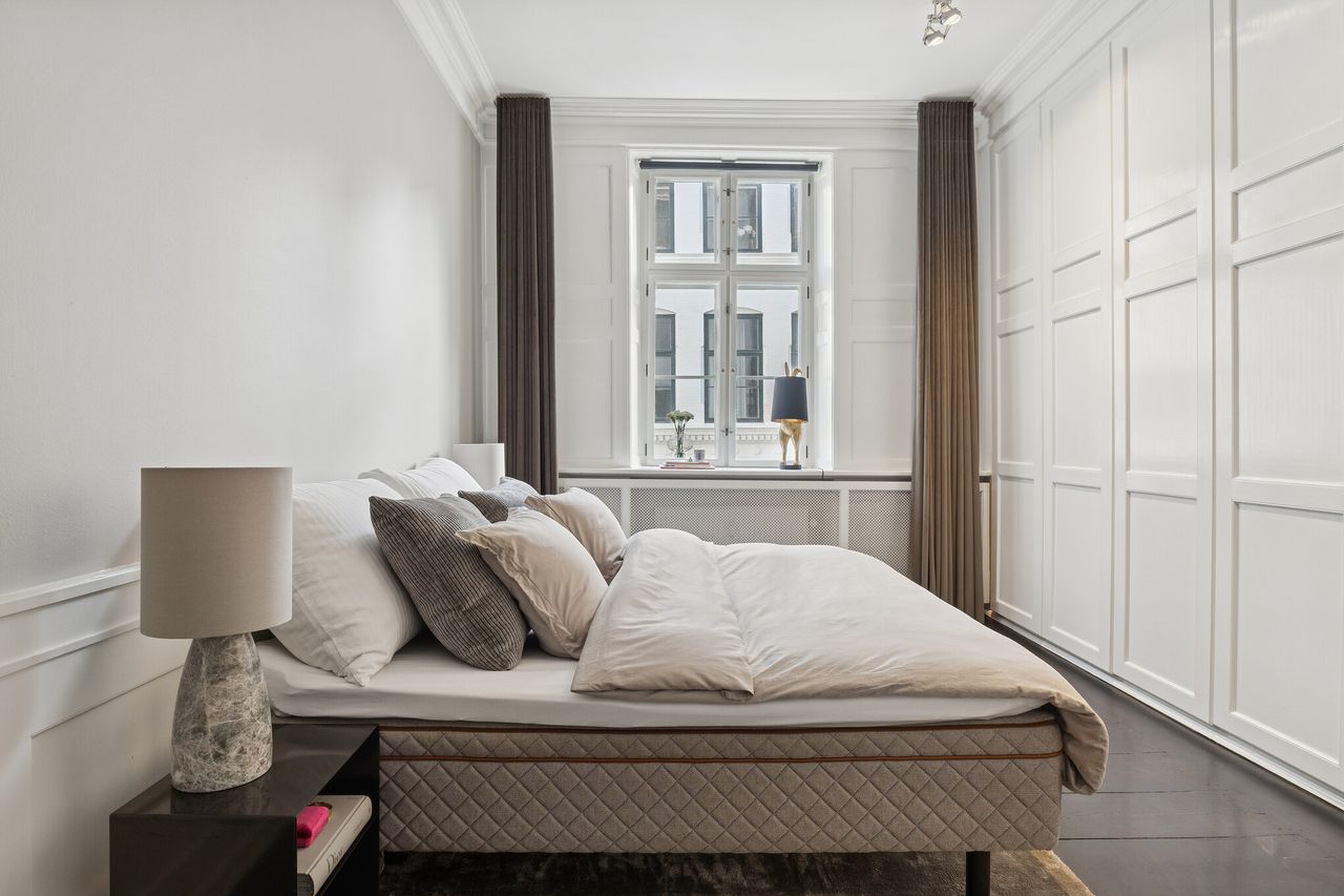 Ejendommen har stået siden 1862, og historiens vingesus mærkes i de kittede vinduer og de smukke bygningsdetaljer. Det er en herskabslejlighed, hvor fortidens elegance og nutidens komfort går hånd i hånd – og hvor kurtiseringen fortsat er i høj kurs.