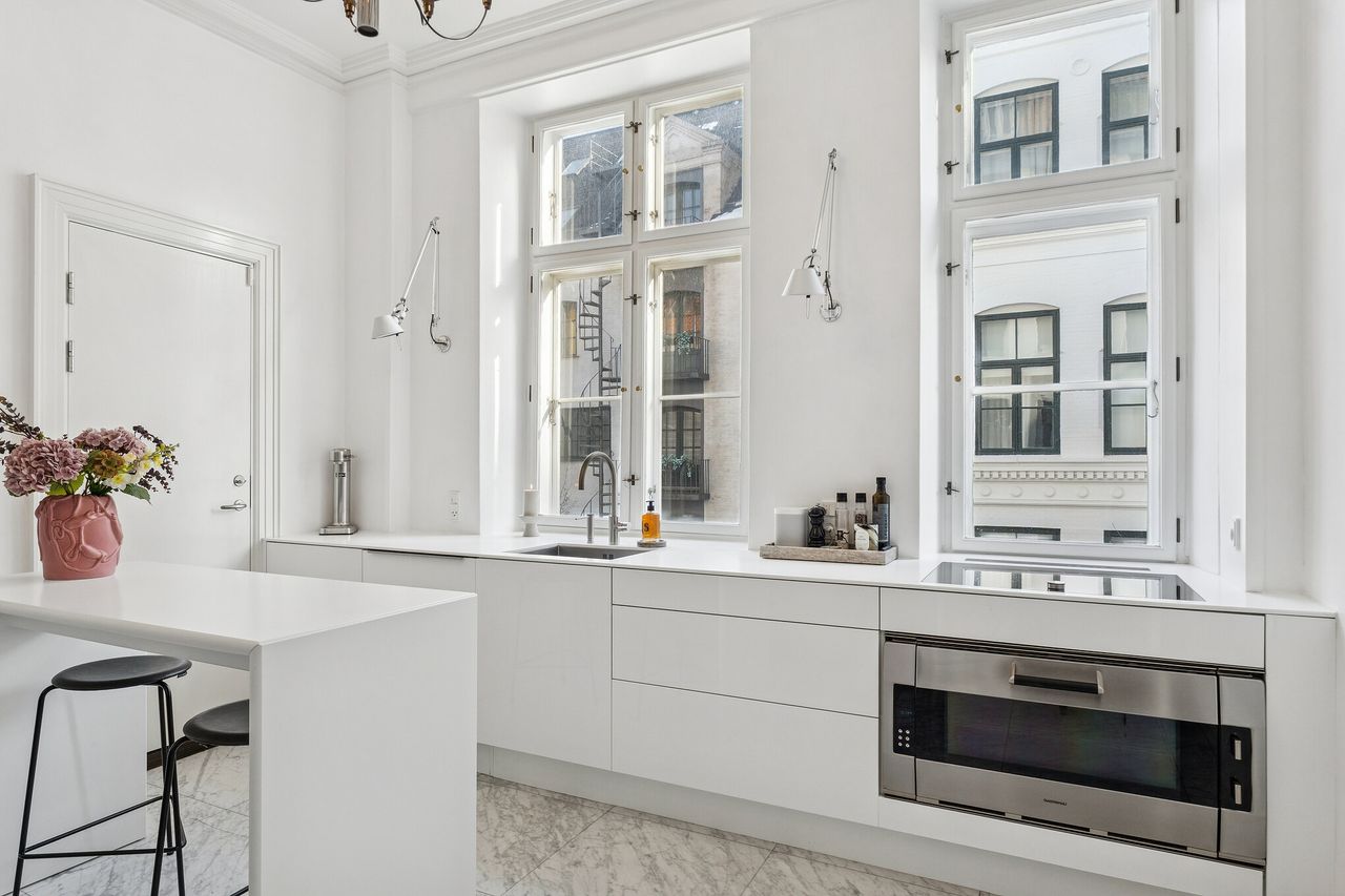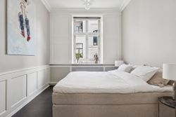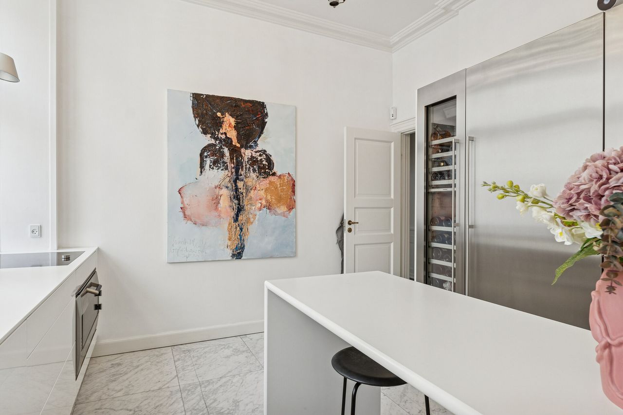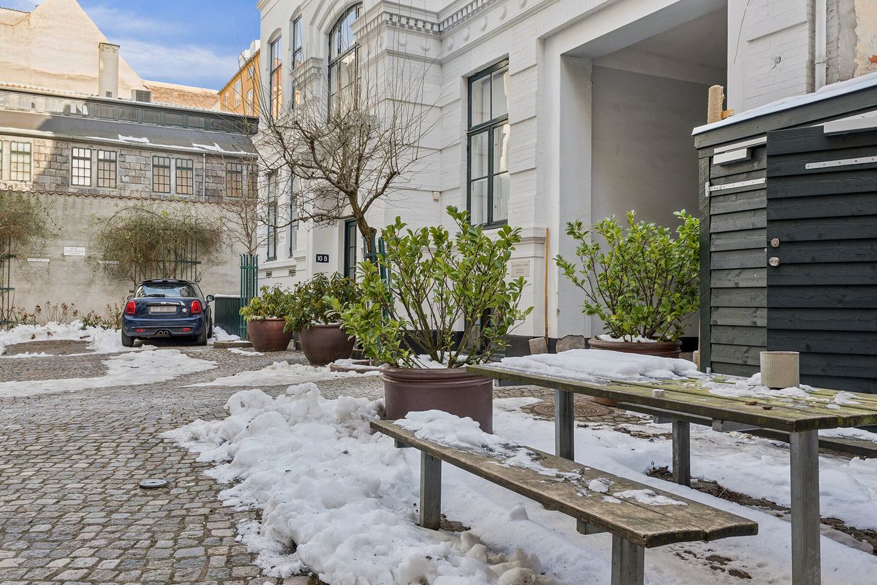 Ejendommen har stået siden 1862, og historiens vingesus mærkes i de kittede vinduer og de smukke bygningsdetaljer. Det er en herskabslejlighed, hvor fortidens elegance og nutidens komfort går hånd i hånd – og hvor kurtiseringen fortsat er i høj kurs.