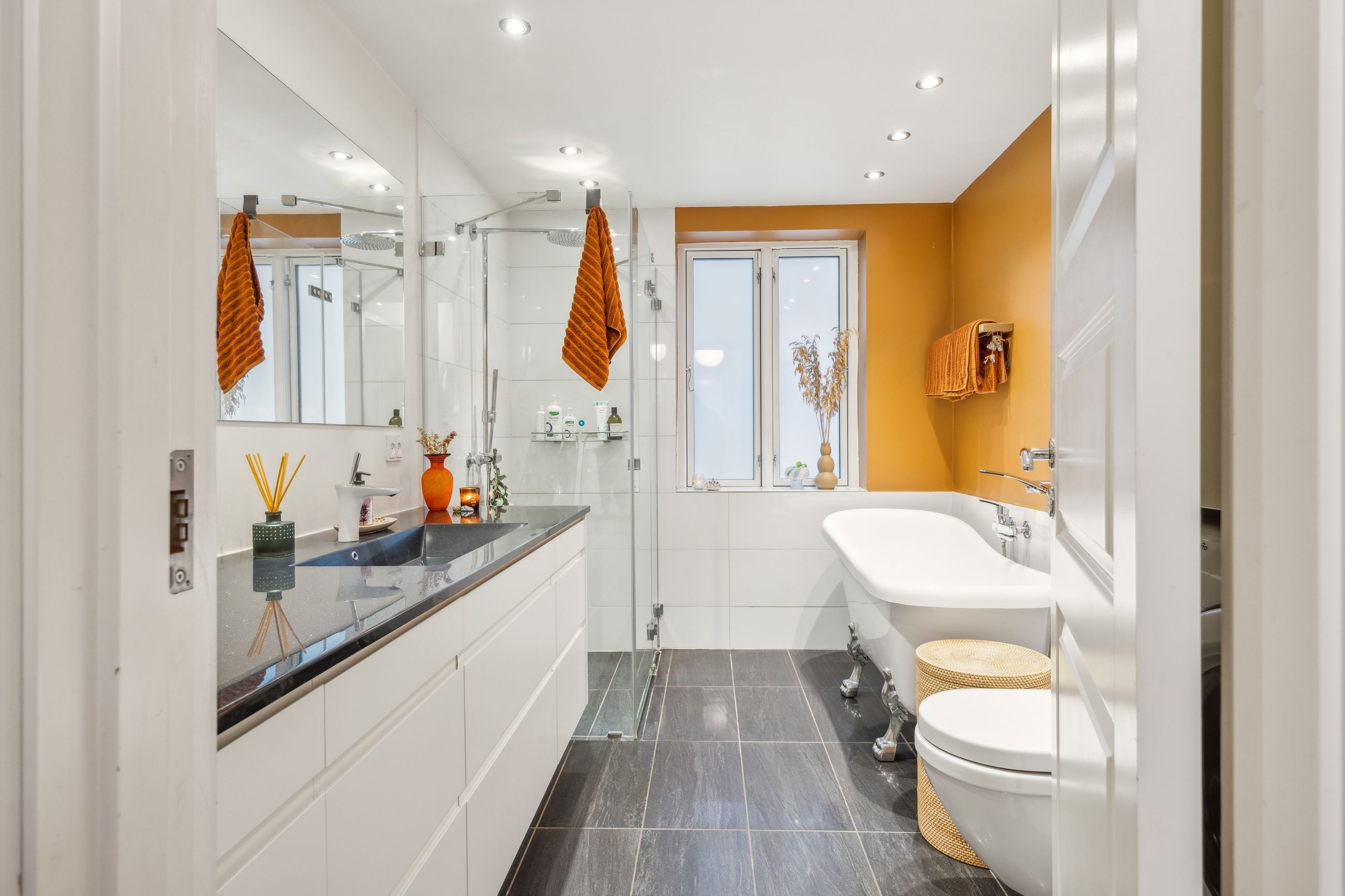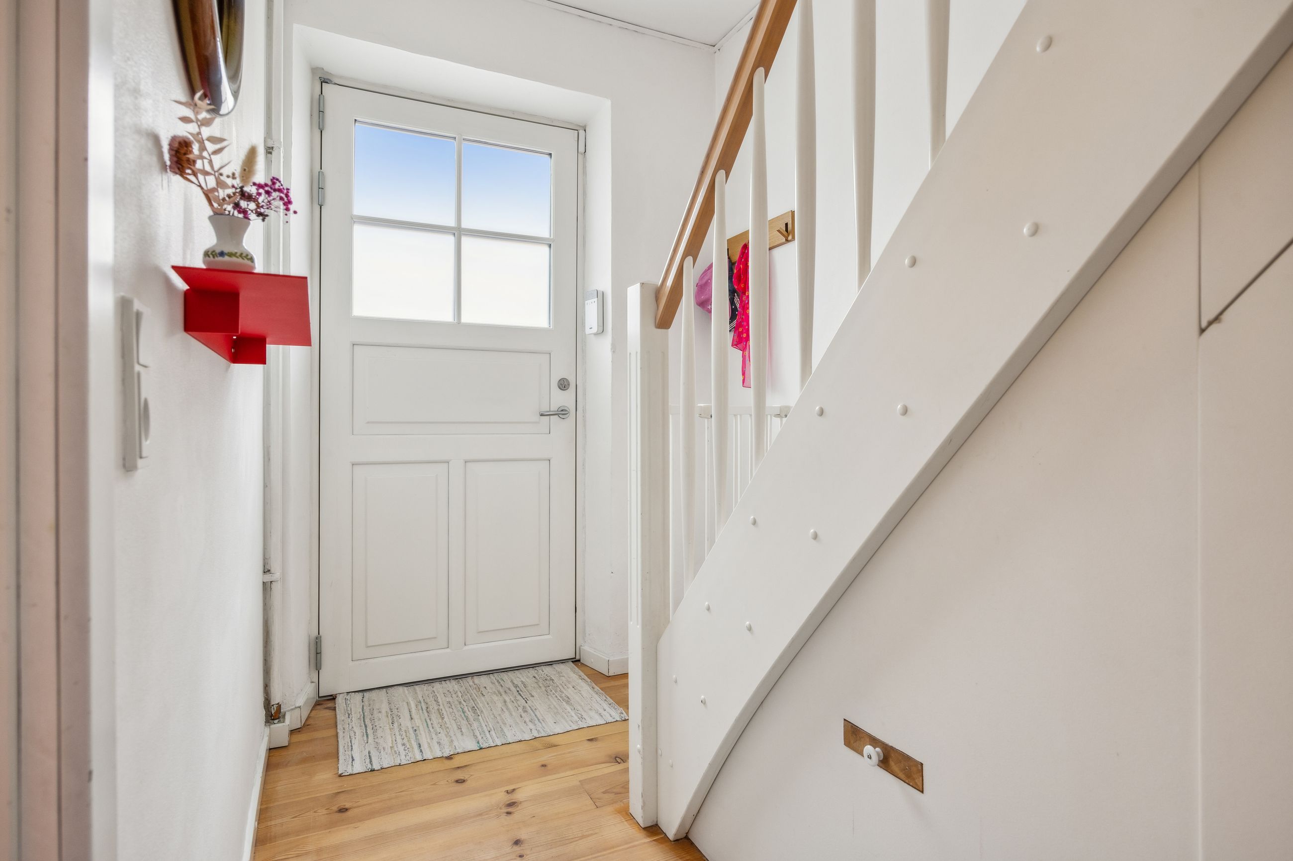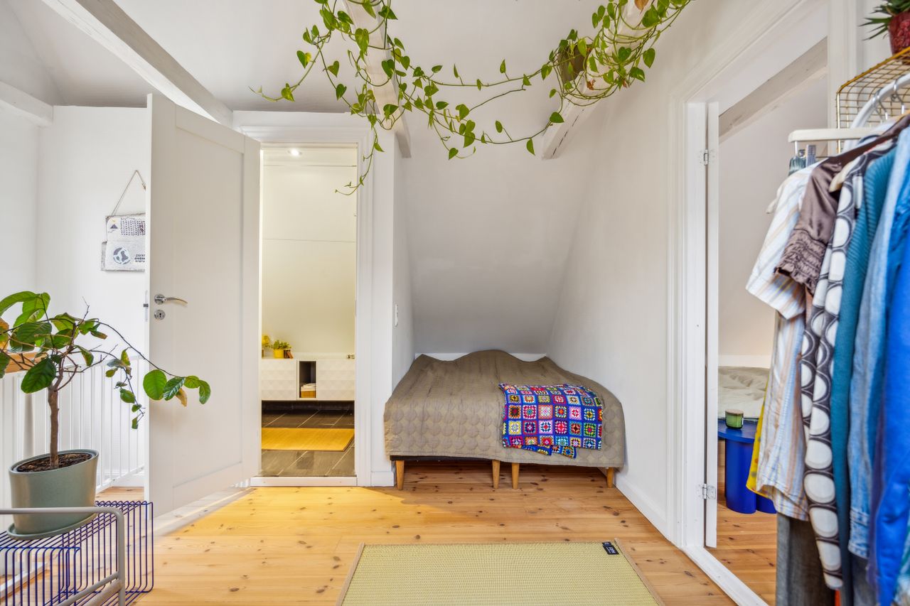 Bag husets charmerende ydre venter jer 142 m2 fordelt på to etager, og overalt bærer hjemmet tydeligt præg af de mange istandsættelser, der er foretaget de seneste år. De flotte plankegulve i fyrretræ går igen overalt, og de yngste er lagt i henholdsvis 2008 og 2016 - de nyeste er opgraderet med gulvvarme. I 2016 blev der også etableret en ny trappe til førstesalen samt lavet nye badeværelser - ét på hver etage. Det store bad i stueplan er indrettet med gulvvarme, et løvefodsbadekar, en Kuma-bordplade med Grohe-armatur, en Dansani-bruseniche med Grohe-rainshower samt lækre fliser fra Fliseuniverset, og sidstnævnte går igen på førstesalens badeværelse ligesom Grohe-armatur og gulvvarme.