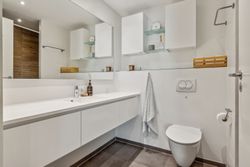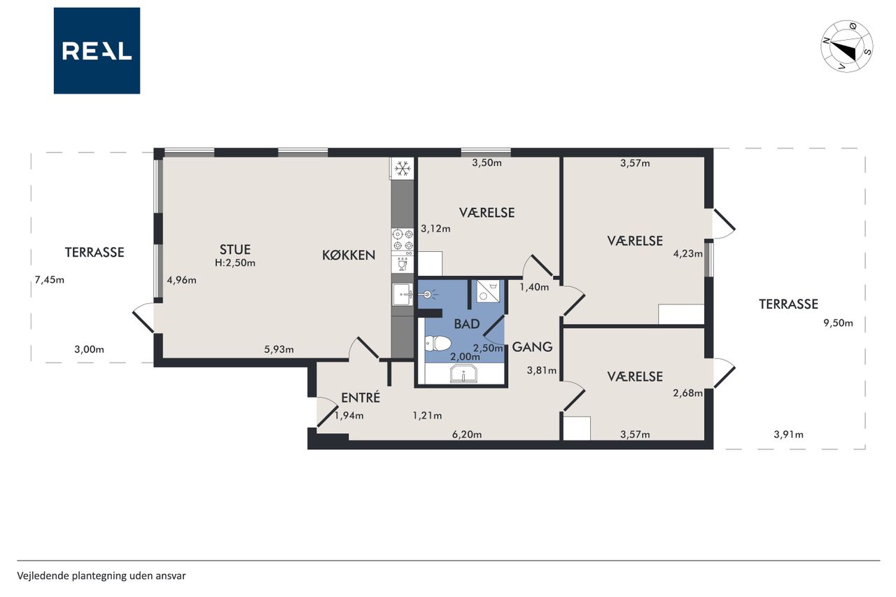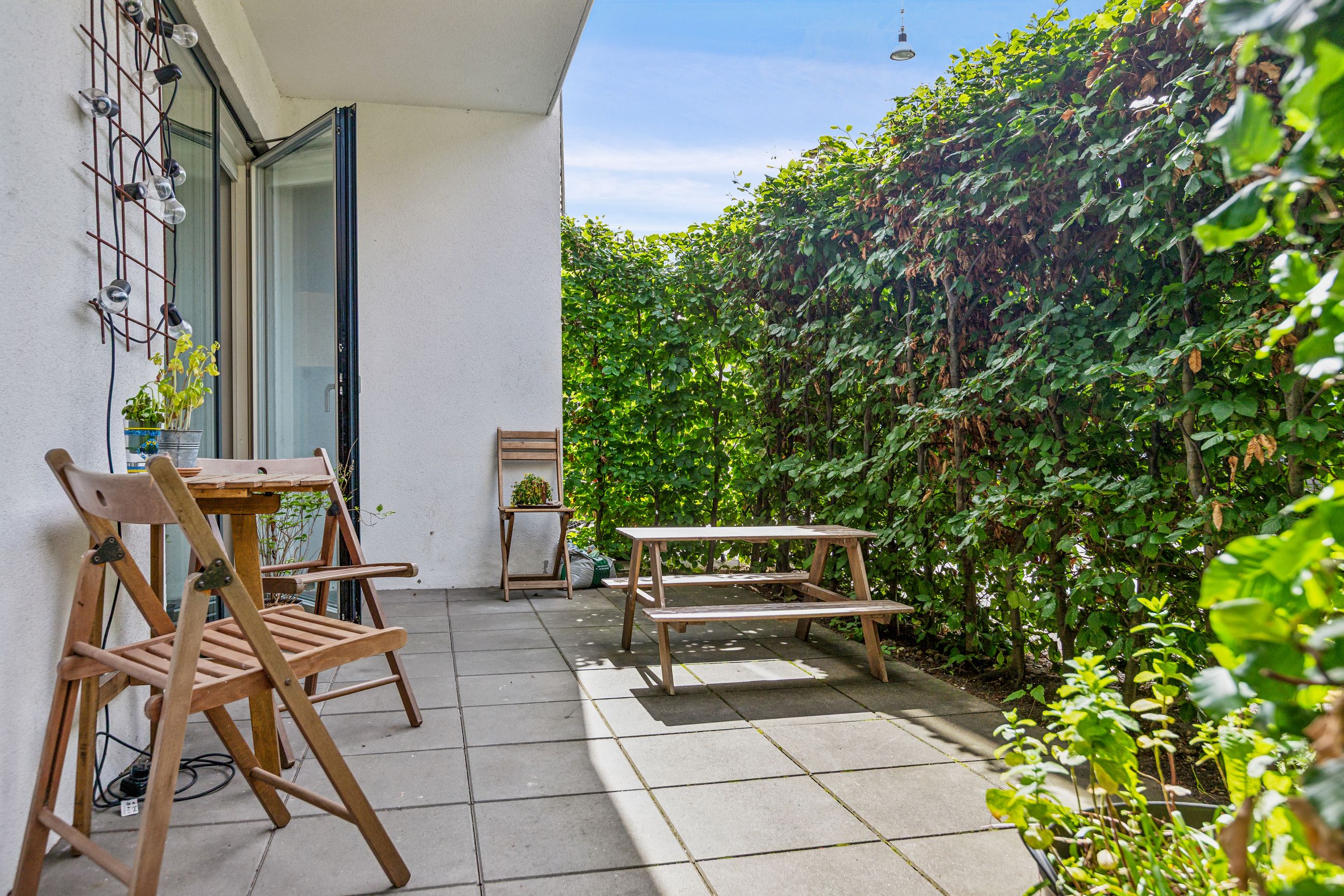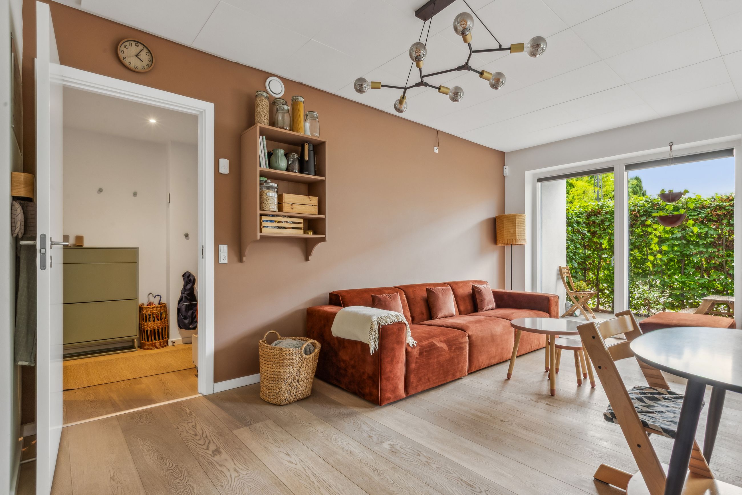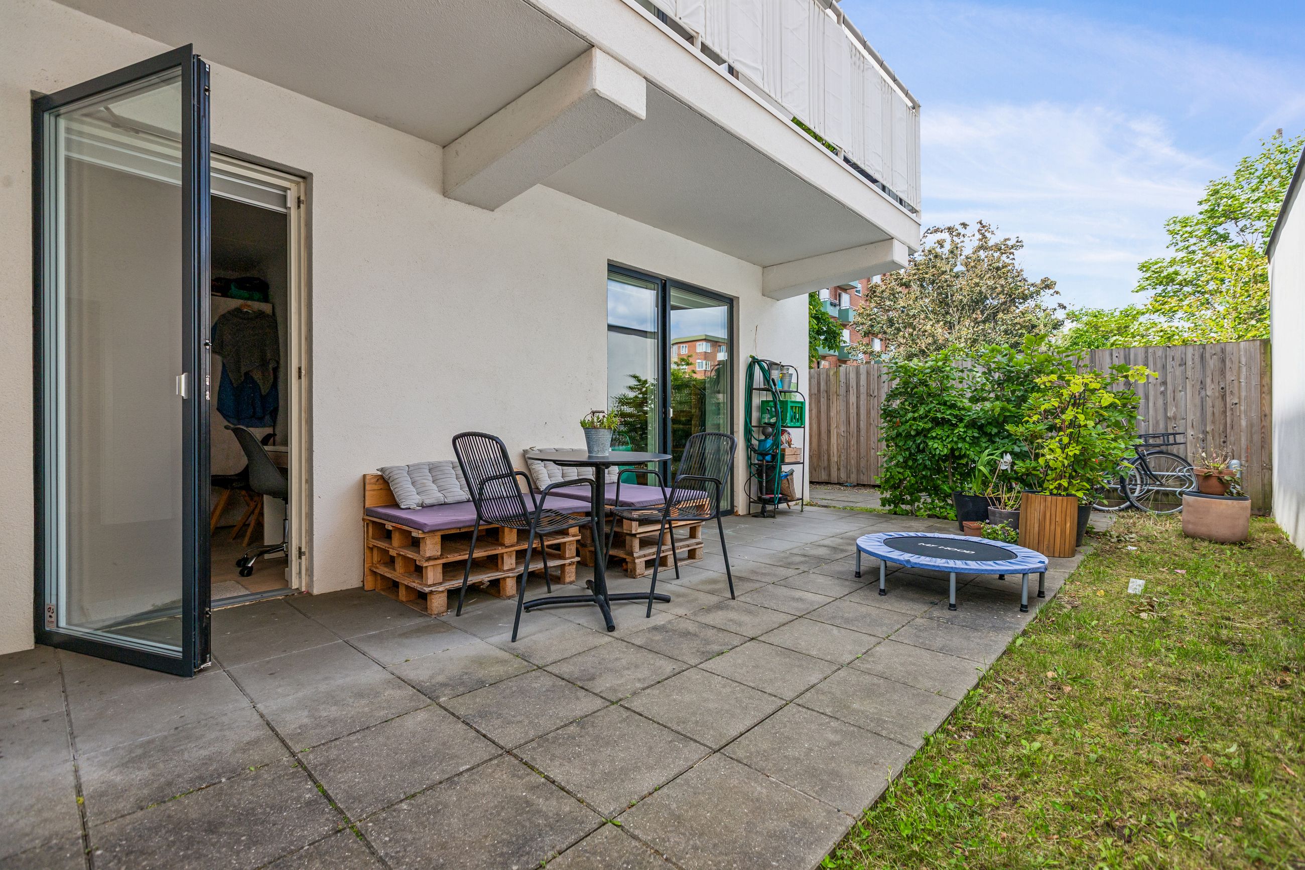 Lejligheden byder på en rummelig og indbydende entré, som leder dig videre ind i det store køkken-alrum, der er i åben forbindelse med opholdsstuen. Herfra er der direkte udgang til forhaven. Boligen rummer hele tre store soveværelser, hvilket gør den ideel til børnefamilien, par med behov for hjemmekontor eller dem, der bare ønsker ekstra plads. Herfra er der direkte udgang til en stor, sydvendt baghave – perfekt til udeliv og afslapning i solen. Dertil kommer et rummeligt badeværelse med moderne fliser og vaskesøjle. De brede plankegulve i eg skaber en varm og eksklusiv atmosfære, mens det stilrene Svane-køkken fra 2018 fuldender helhedsindtrykket af moderne kvalitet.