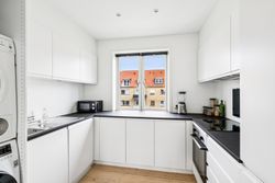 Ejerforeningen har hyggelige, grønne fællesarealer – perfekte til grill, afslapning eller et hvil i solen – og du har gode, gratis parkeringsmuligheder lige ved døren. Beliggenheden er svær at slå: Du bor fredeligt, men har Amager Strandpark kun få minutter væk og Amagerbrogade lige om hjørnet med masser af butikker, caféer og spisesteder. Offentlig transport og dagligvarebutikker findes også i gåafstand.