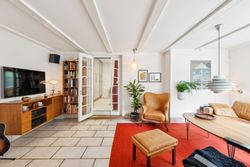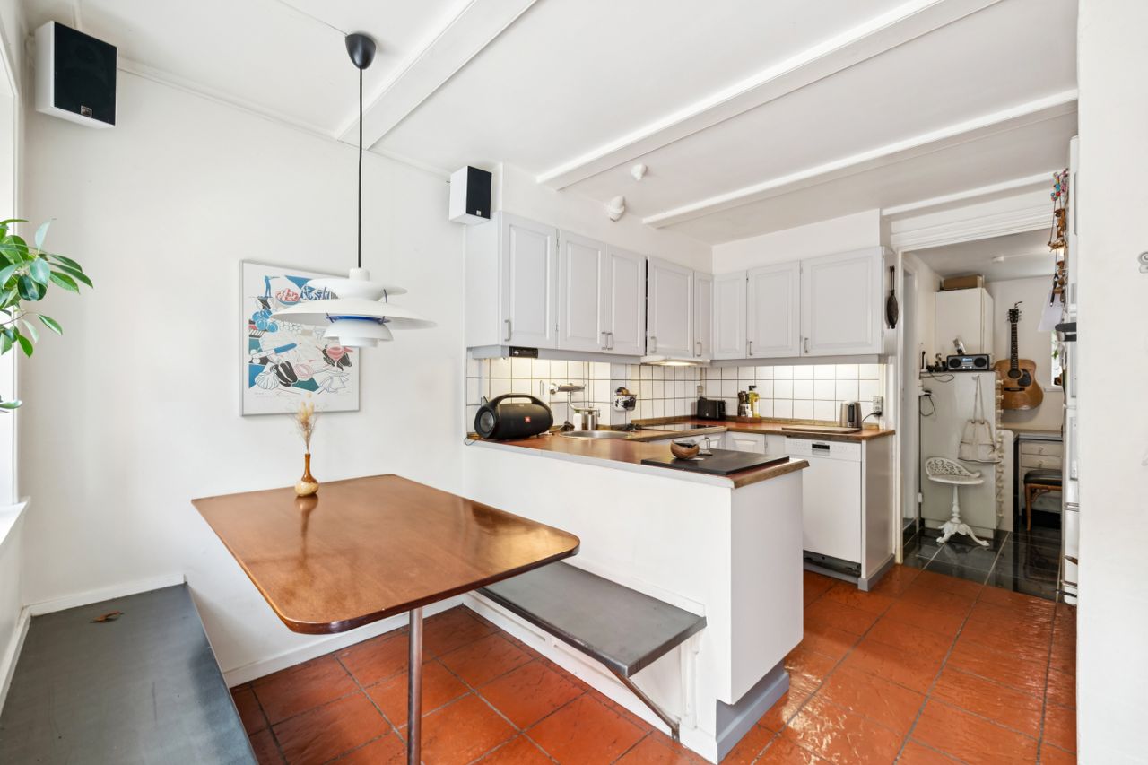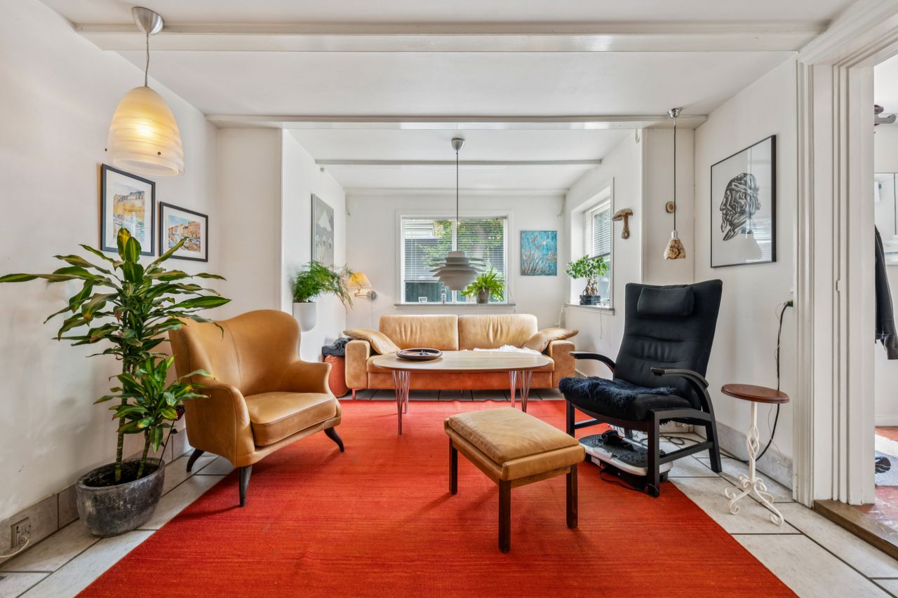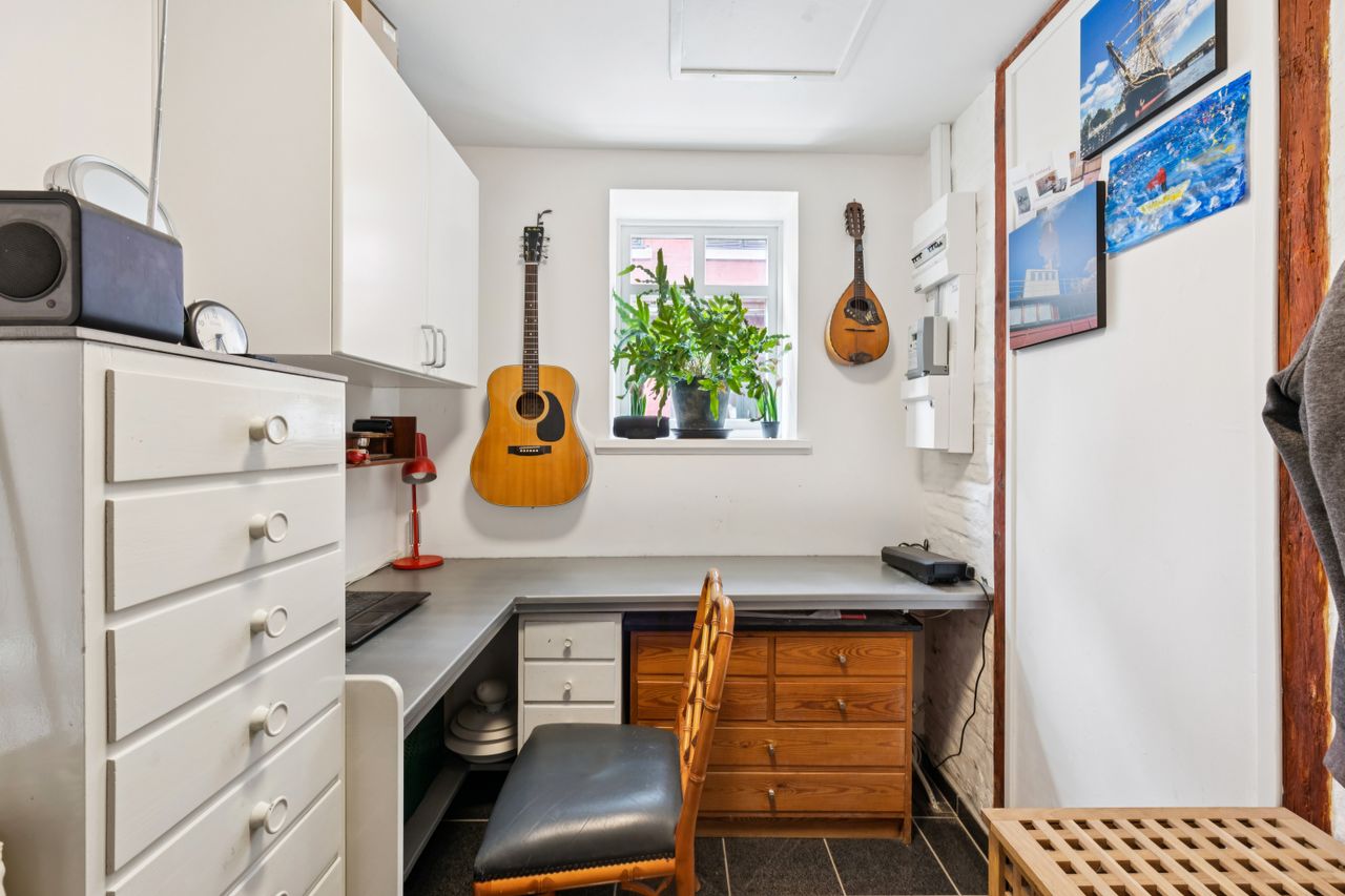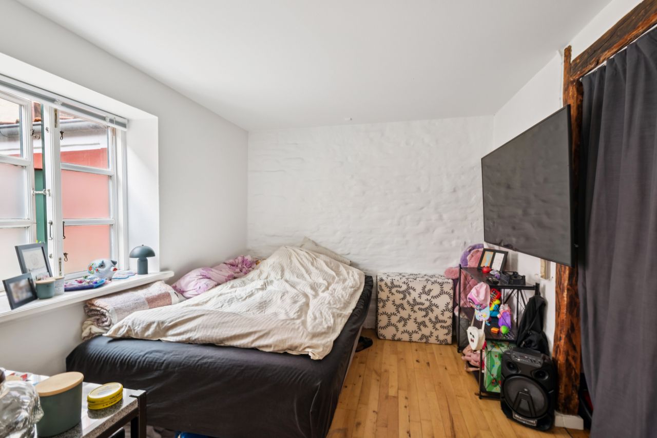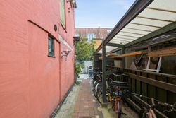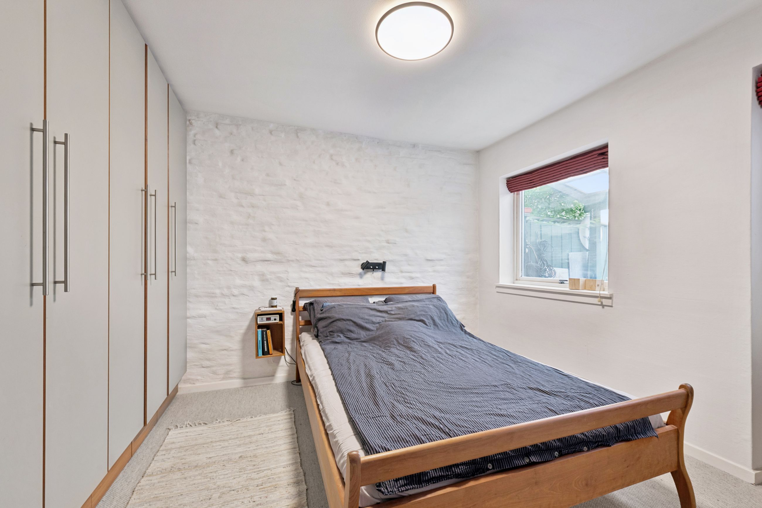 Lejligheden strækker sig over 86 kvadratmeter og er opdelt i to separate dele, hver med sin egen entré. Den første del byder på et rummeligt køkken med spiseplads, hvor man kan nyde måltiderne i lyse omgivelser. En stor stue inviterer til afslapning og hygge, mens det skønne soveværelse har direkte udgang til haven - et sandt fristed midt i byen. Derudover finder du et kontor samt et moderne badeværelse.