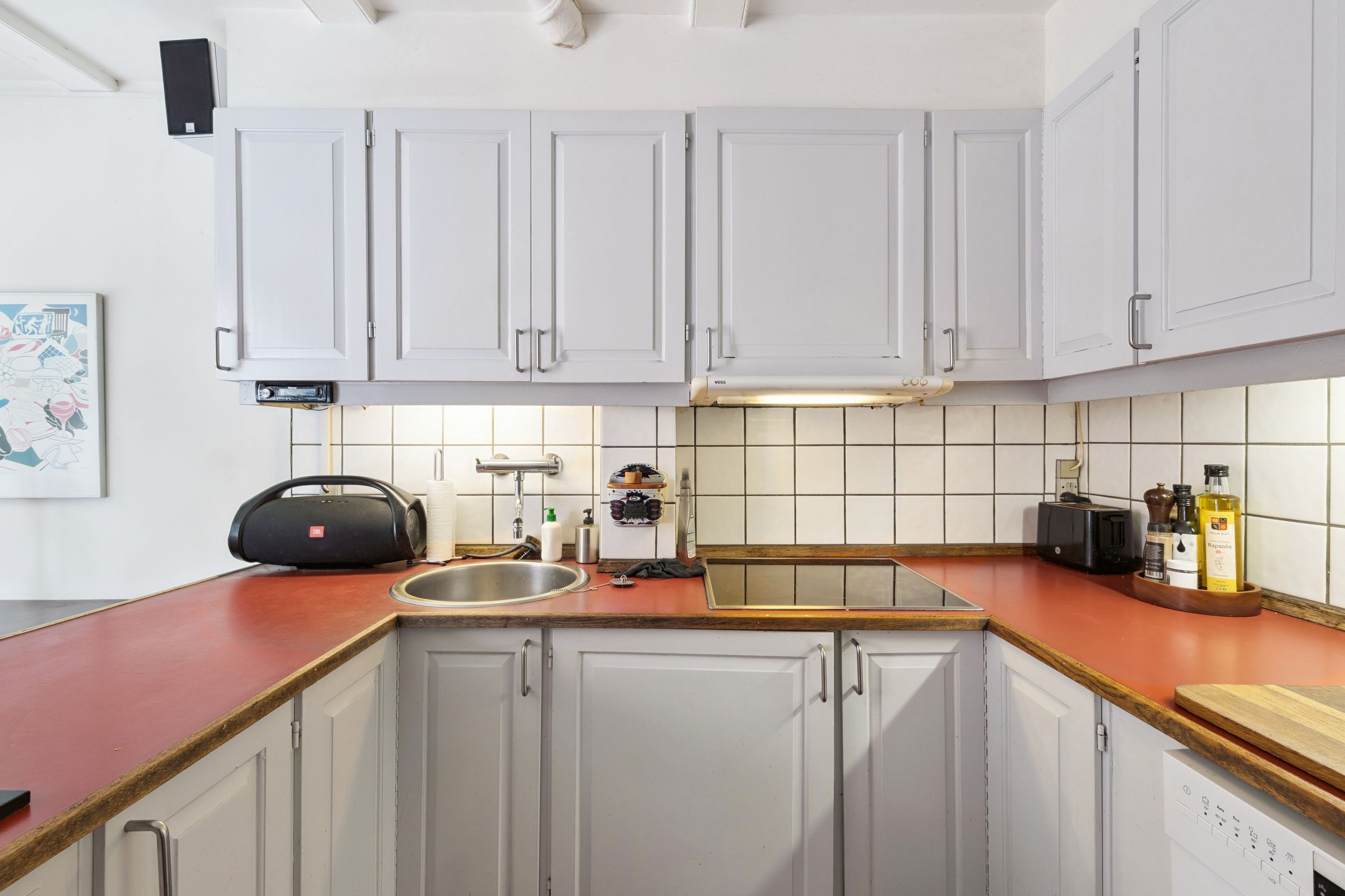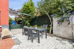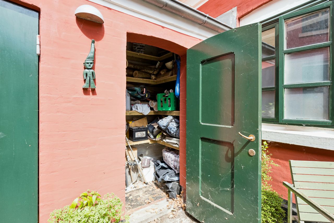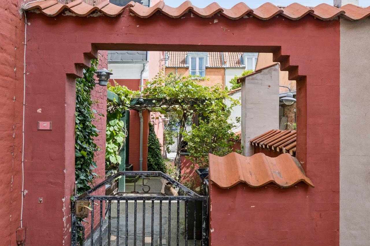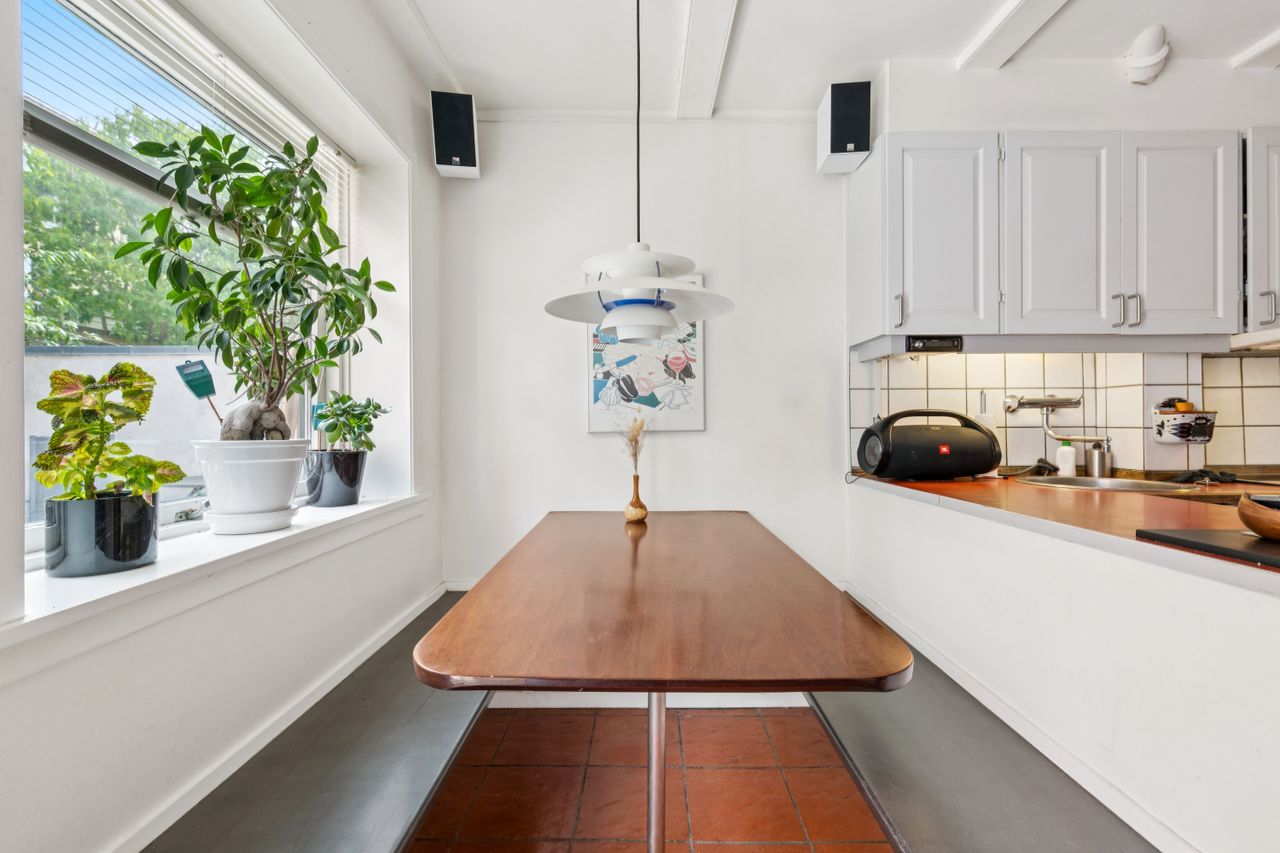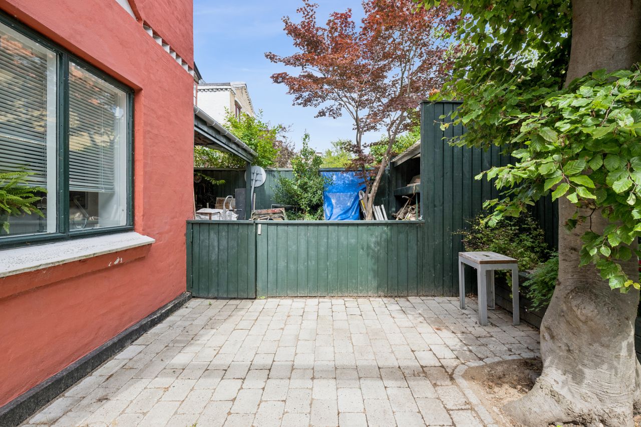Til lejligheden hører også et fantastisk lukket terrassemiljø omgivet af hyggelige træer, som gør området yderst privat. I forlængelse heraf ligger et lille haveafsnit dedikeret til lejlighedens beboere – perfekt til sommerens grillaftener eller stille morgenkaffe.