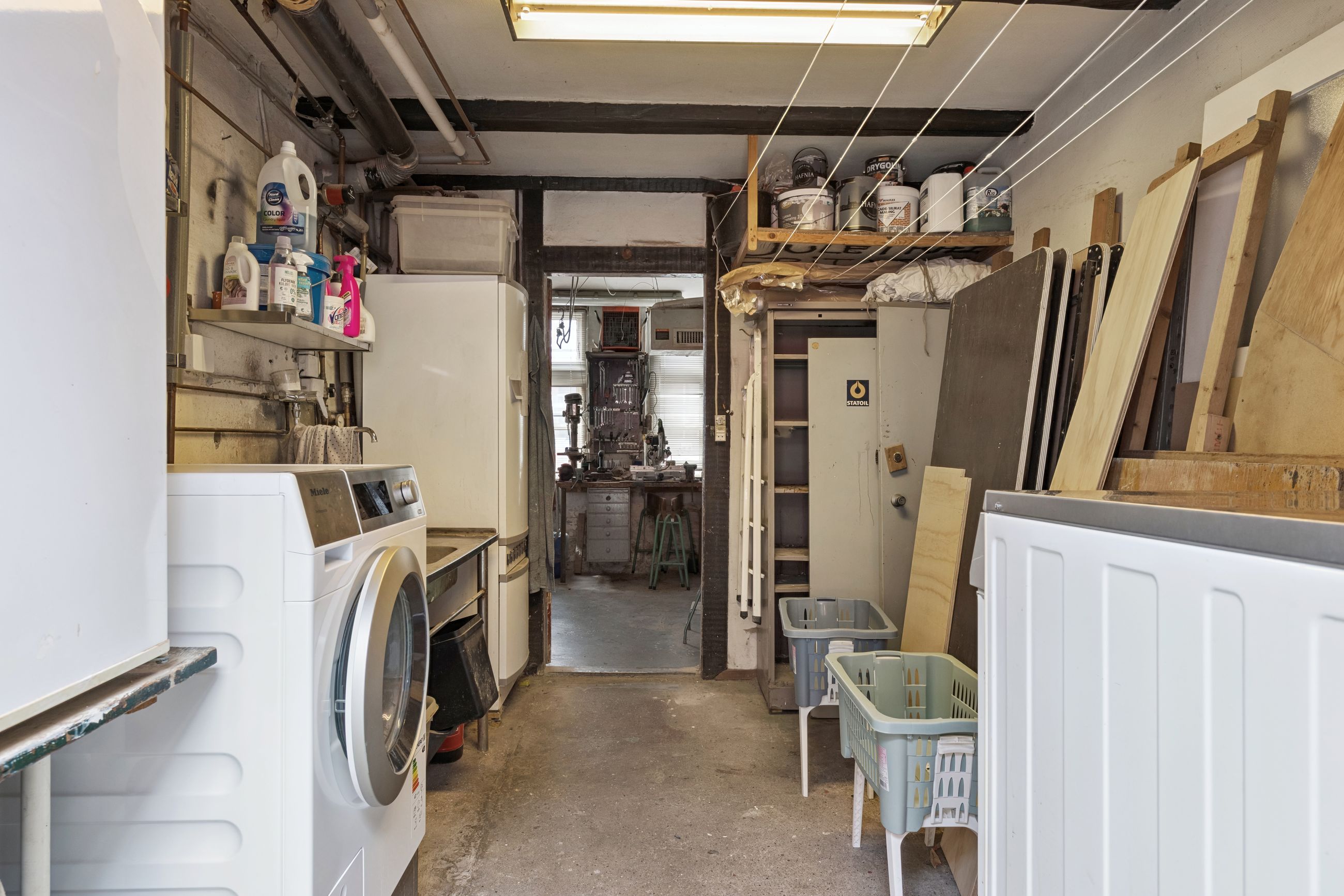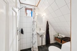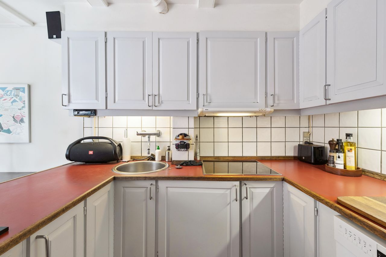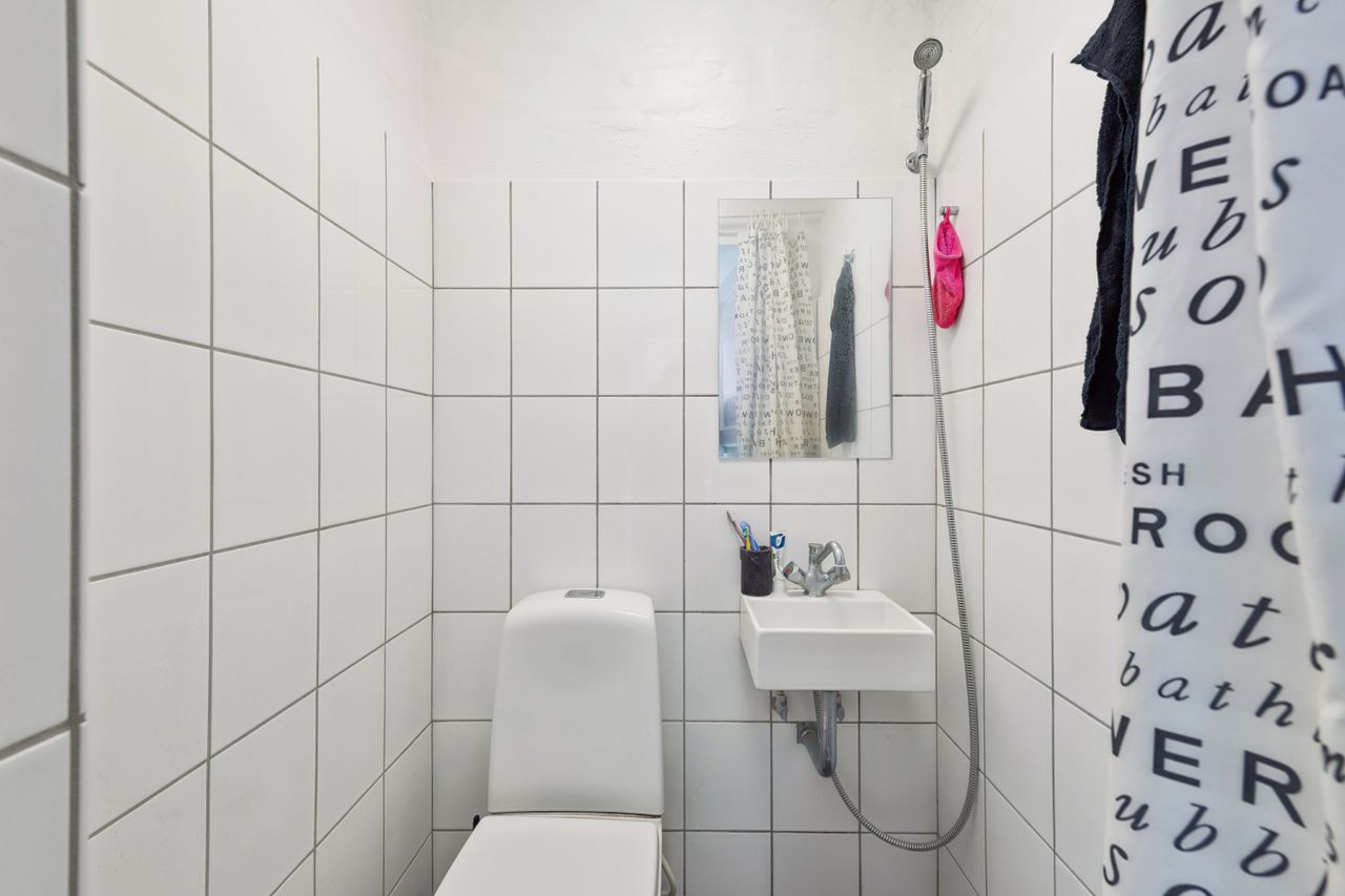 Den anden del af lejligheden har sin egen indgang på den modsatte side af bygningen og tilbyder endnu mere plads med et rummeligt soveværelse, tekøkken med spiseplads samt endnu et moderne badeværelse. Denne opdeling gør boligen ideel for dem, der ønsker fleksibilitet – måske til fremleje, gæsteafdeling eller teenageafsnit.