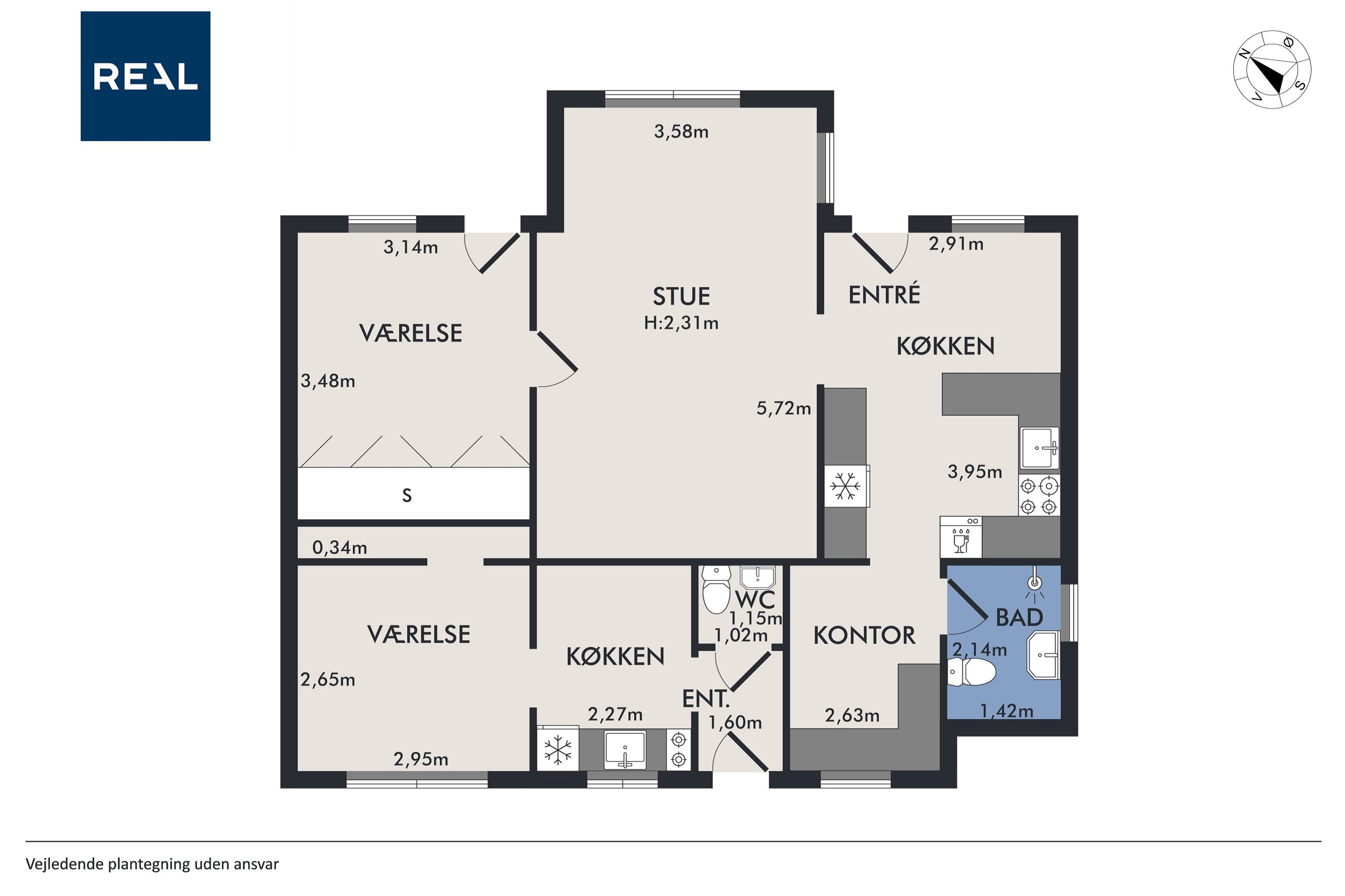 Skulle behovet opstå for at samle de to dele igen til én enhed, kan dette nemt gøres ved at fjerne den simple væg mellem dem. Dette vil skabe en sammenhængende bolig bestående af fire værelser, to køkkener og to badeværelser – mulighederne er mange!