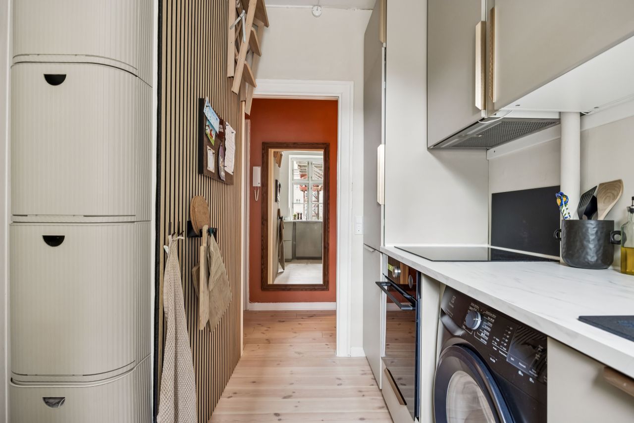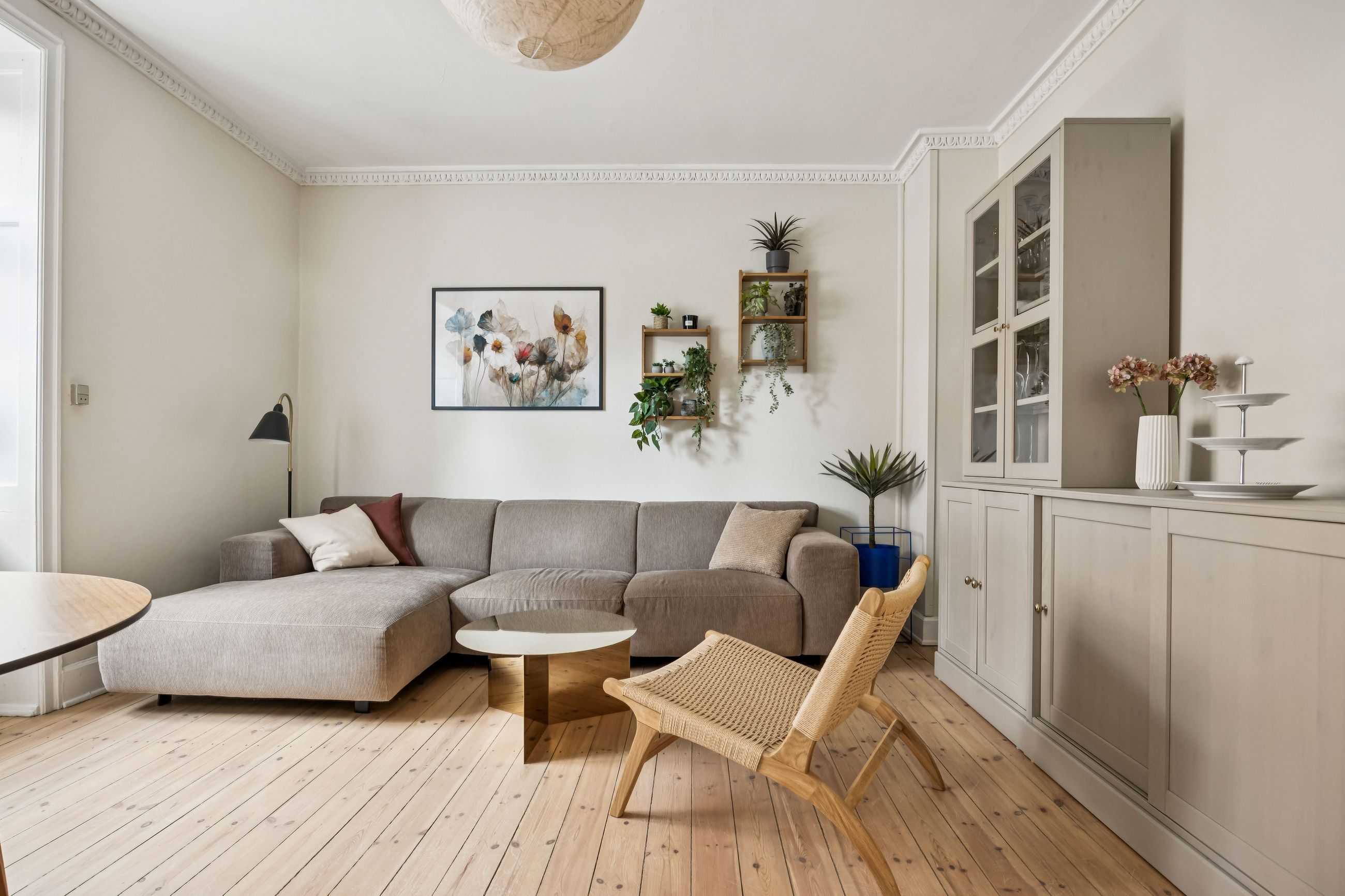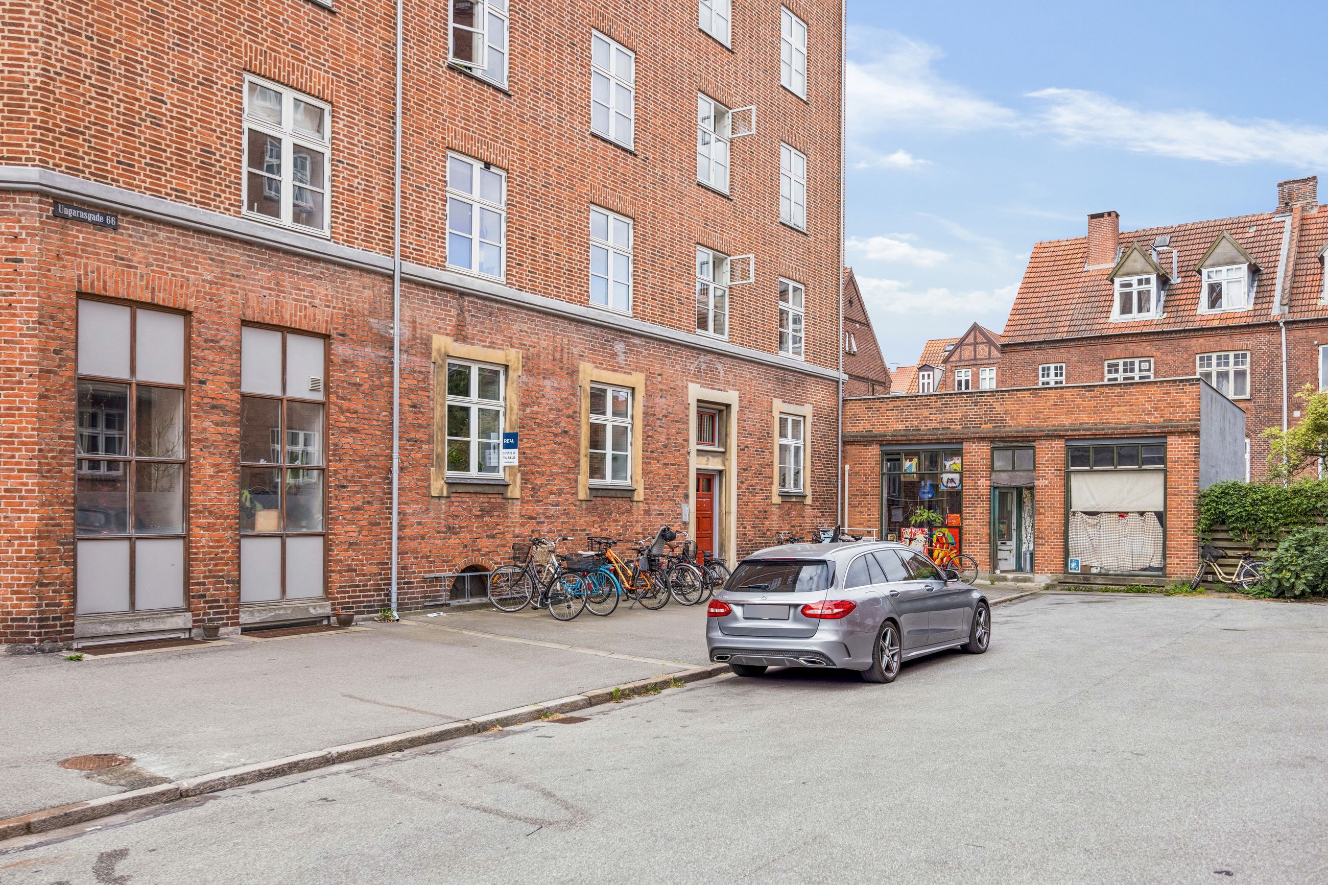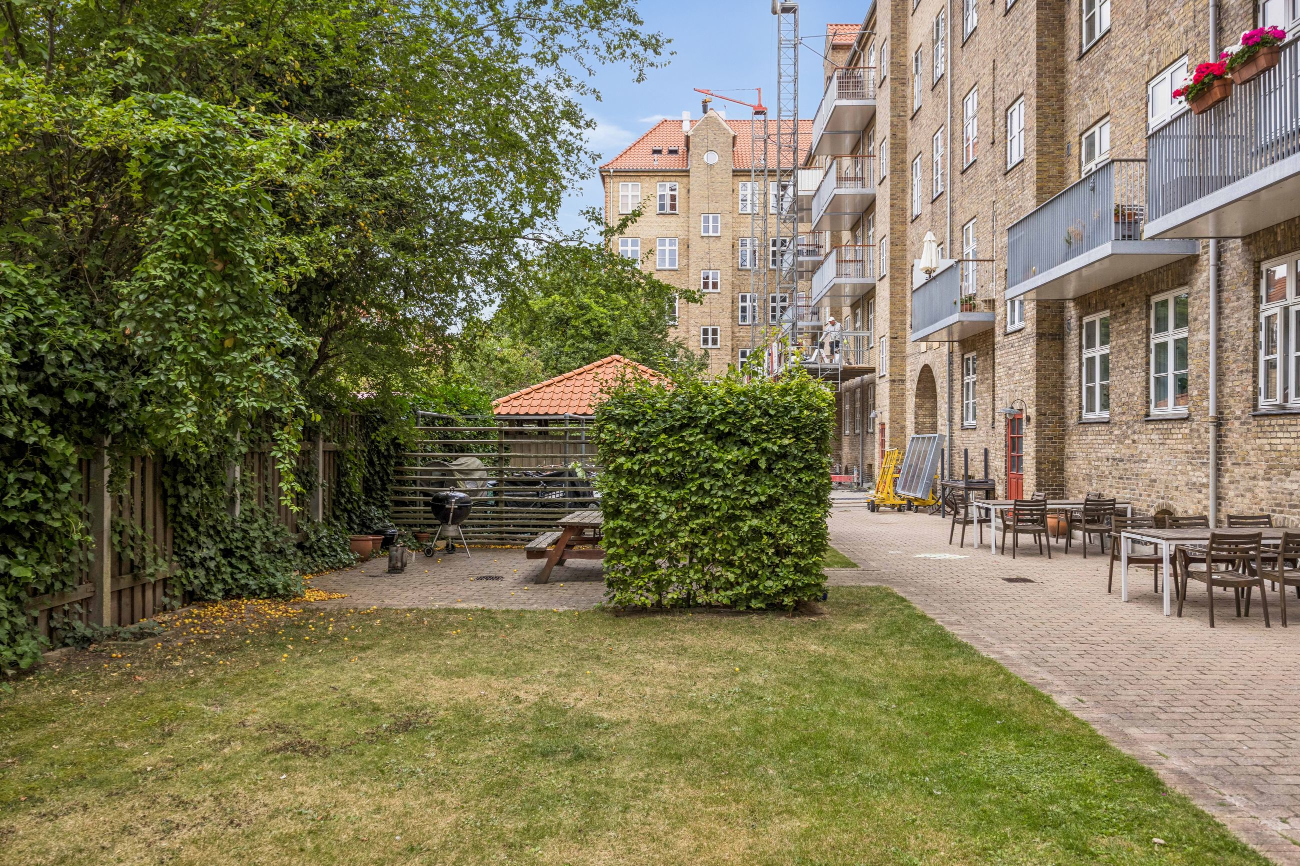 Lejligheden er ikke kun smukt istandsat indvendigt; bygningen selv står også i fantastisk stand efter omfattende renoveringer. Taget er blevet skiftet, facaden renoveret, og opgangen samt en hyggelig lys gård, de solrige dage kan nydes. gårdmiljøet har også gennemgået store forbedringer takket være den velfungerende ejerforening. Foreningen har gennemført flere store projekter de seneste år, hvilket sikrer at ejendommen fremstår i topform. Bygningen er udstyret med fjernvarme og dørtelefon for ekstra komfort.