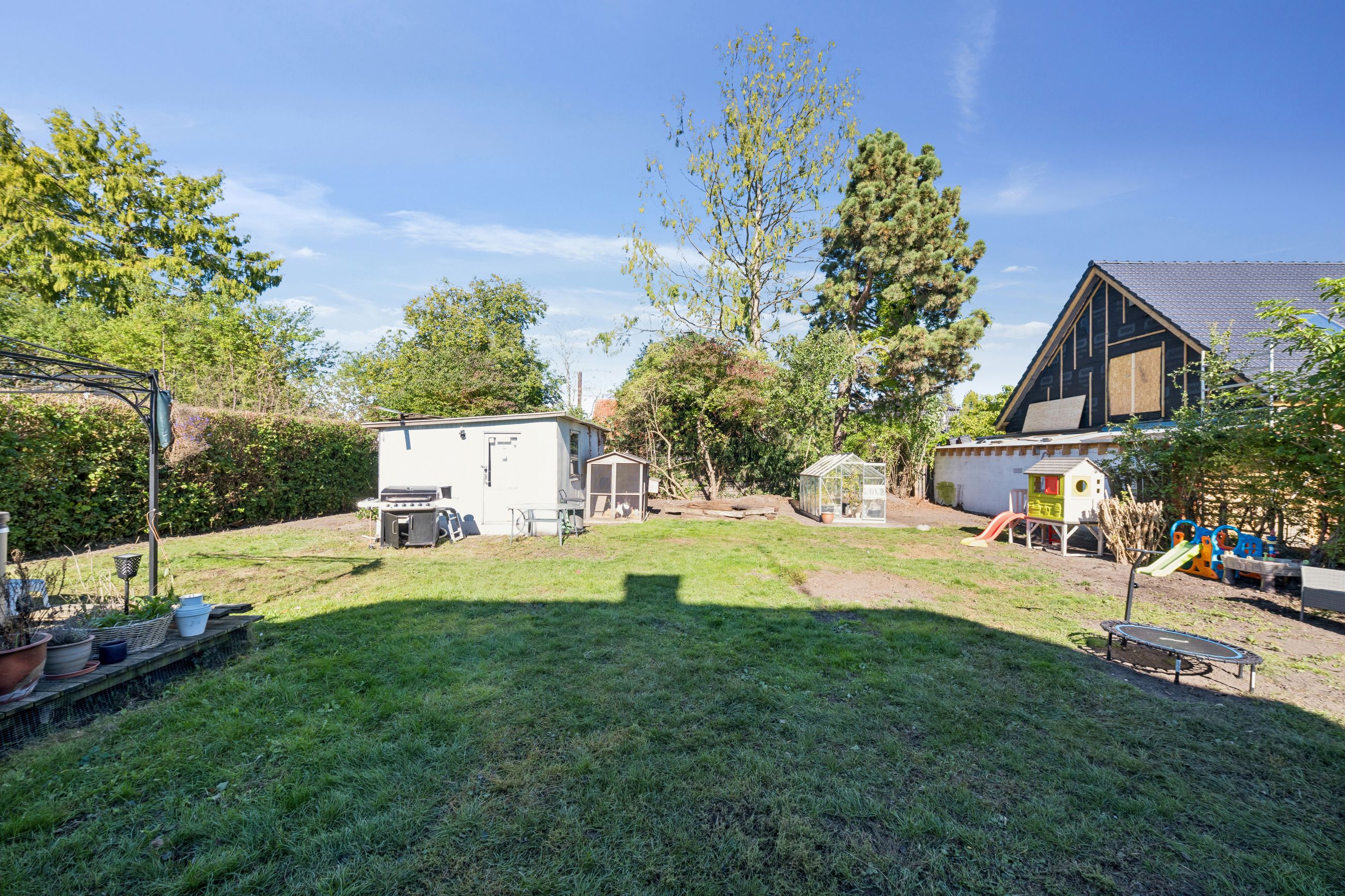 Grunden på 820 kvadratmeter er sydvendt, hvilket sikrer sol det meste af dagen – her er masser af plads til både haveprojekter, leg og afslapning. Haven er indrettet, så den er både nem at holde og samtidig indbyder til udendørs ophold og afslapning. De to lækre terrasser udgør skønne uderum, hvor man kan nyde grillmiddage, sommerfester eller roen efter en lang arbejdsdag.