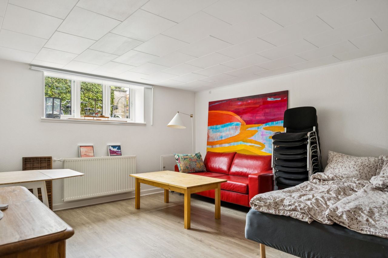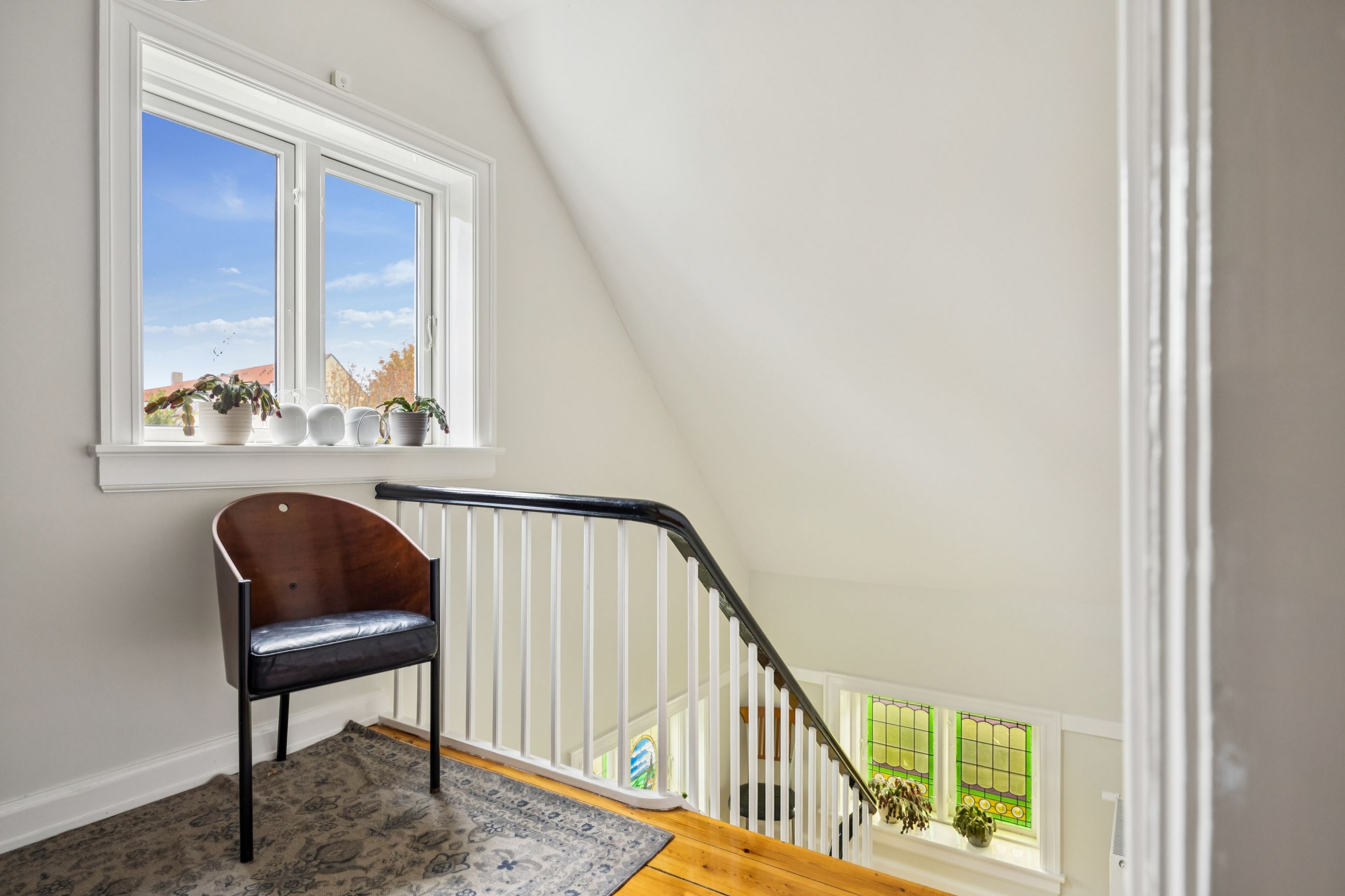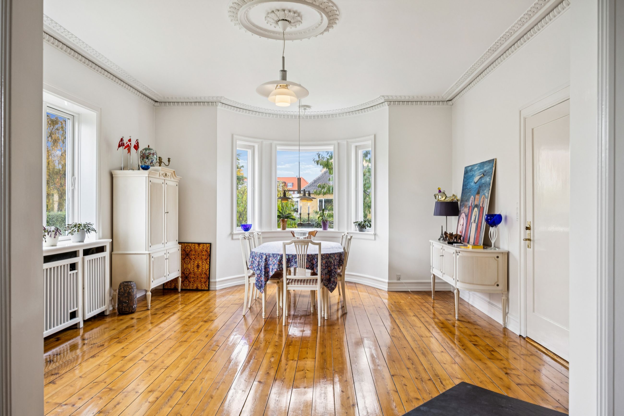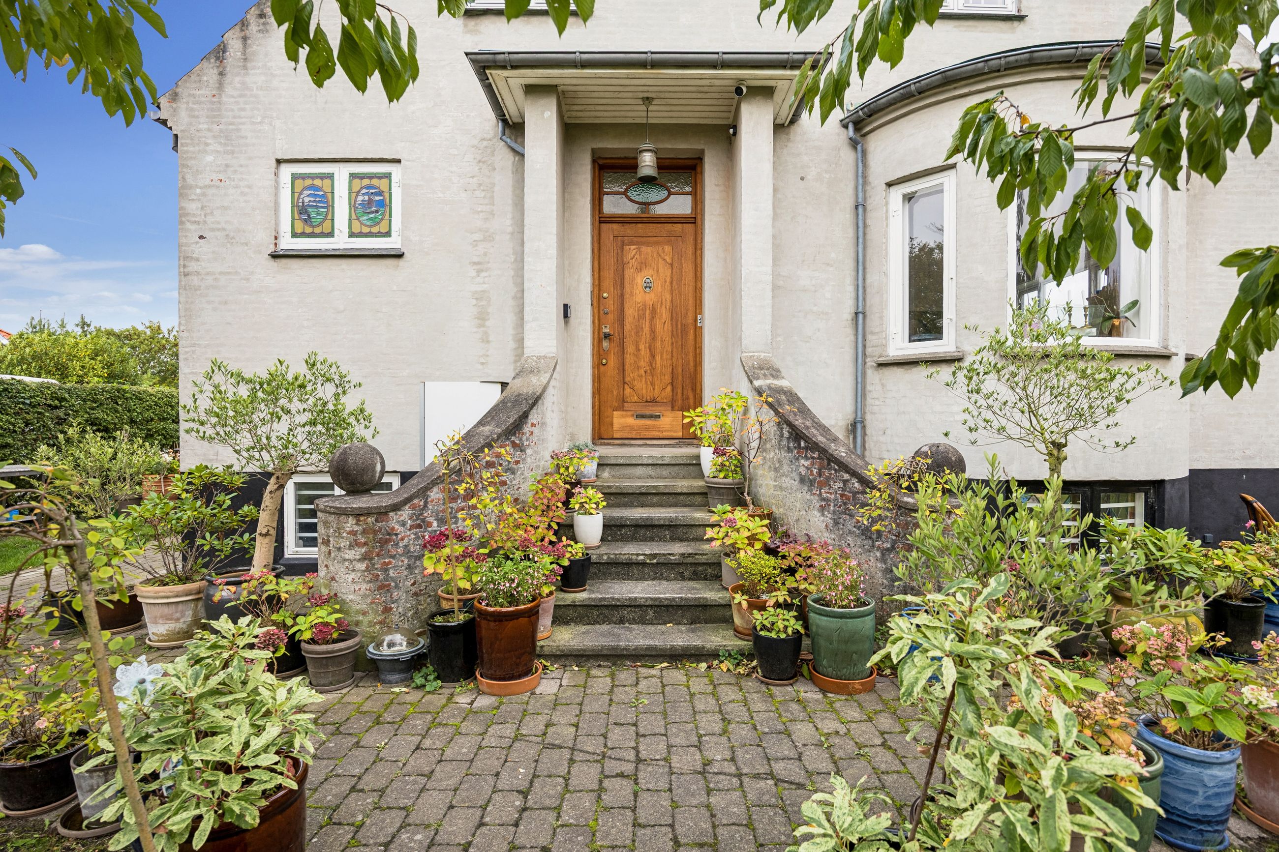 Når du træder indenfor vil det smukke trappeløb straks afsløre husets herskabelige sjæl. I stuerne breder de lakerede, massive trægulve sig under de høje lofter, der prydes af originale stuk og elegante rosetter. De store vinduespartier inviterer dagslyset ind og skaber en let og luftig stemning, der forstærker den fornemme karakter. Den sydvendte balkon forlænger opholdsrummene ud i det fri og tilbyder et roligt sted at nyde morgensolen eller eftermiddagens gyldne lys med udsigt over den grønne og velanlagte have.