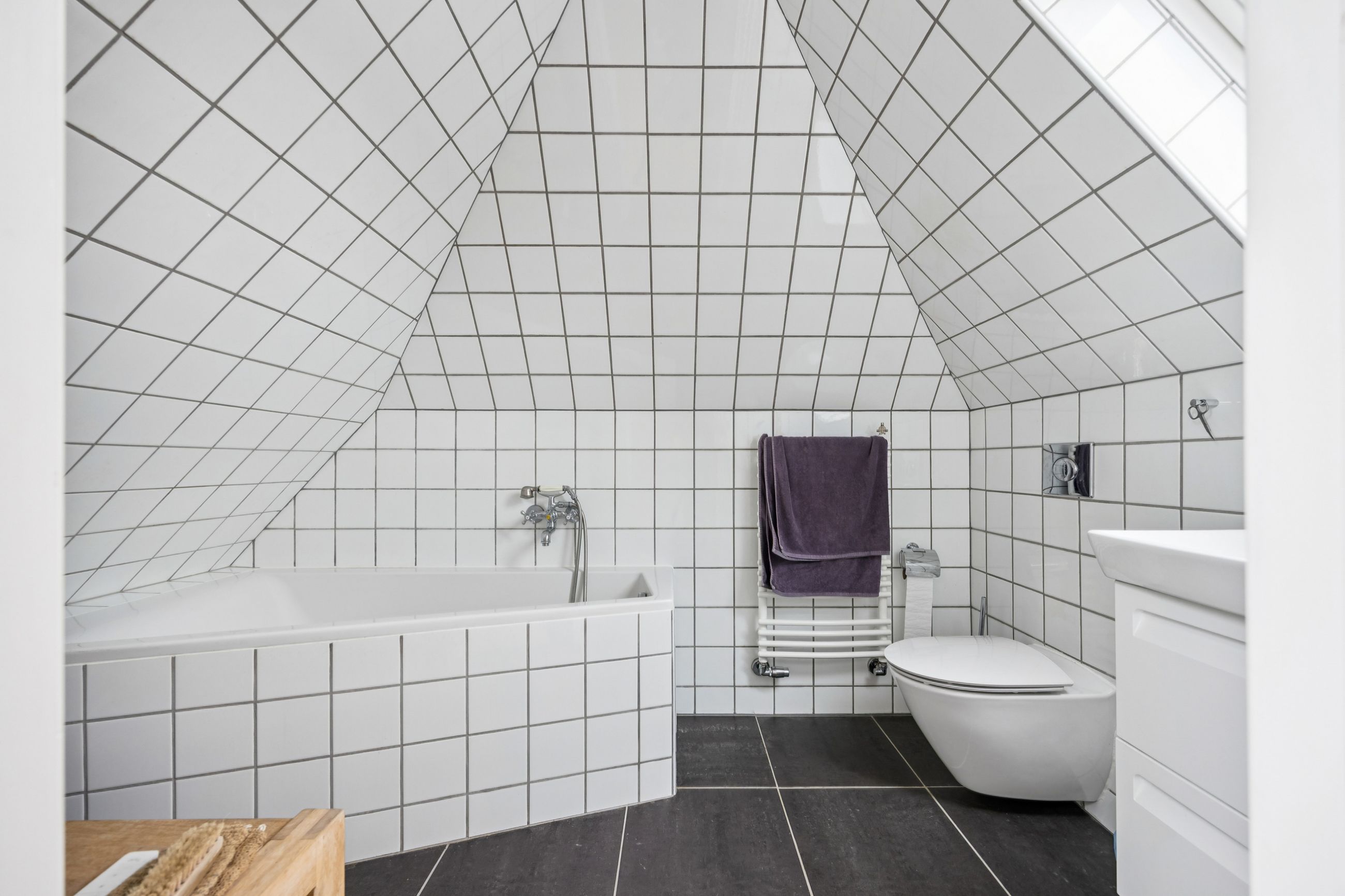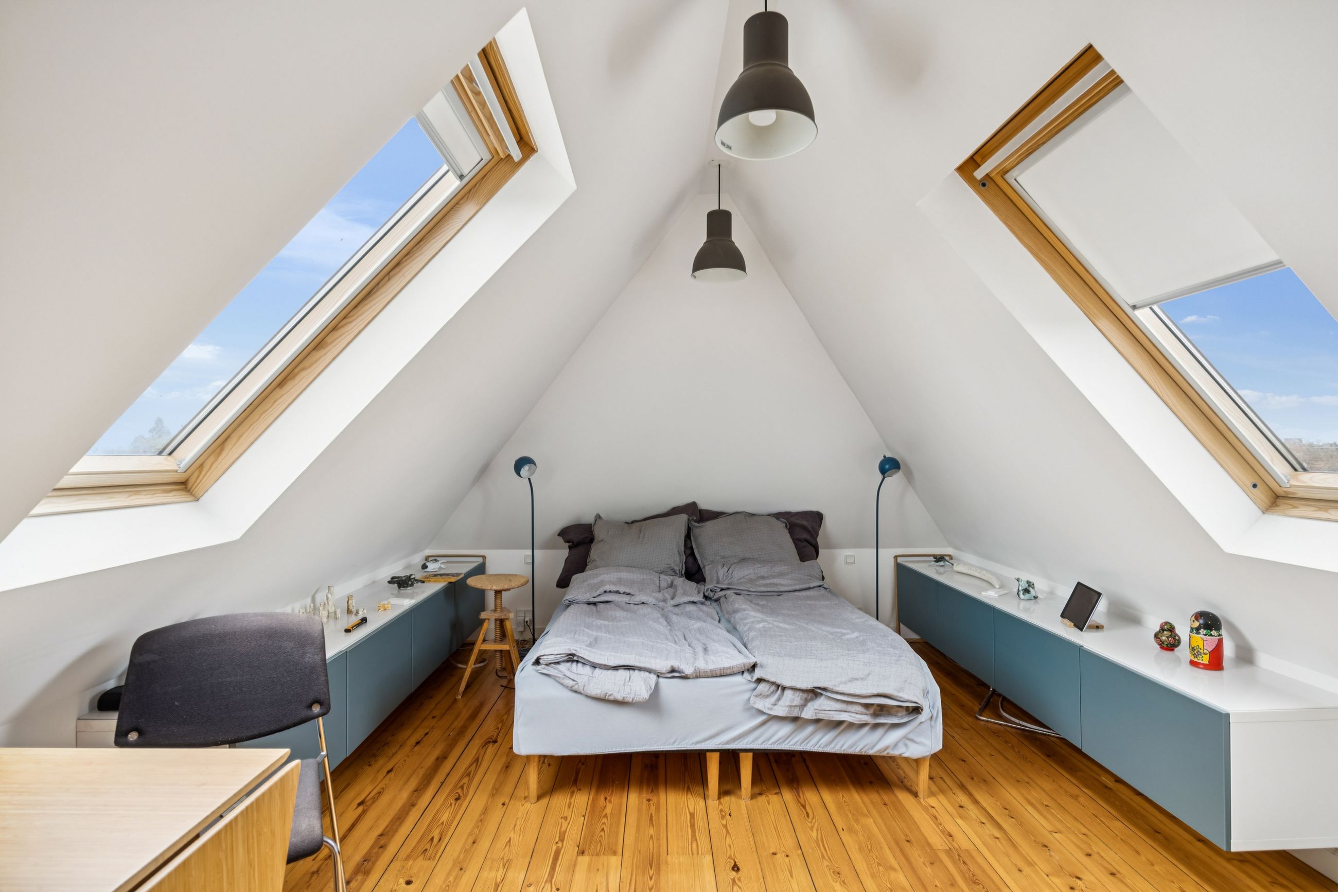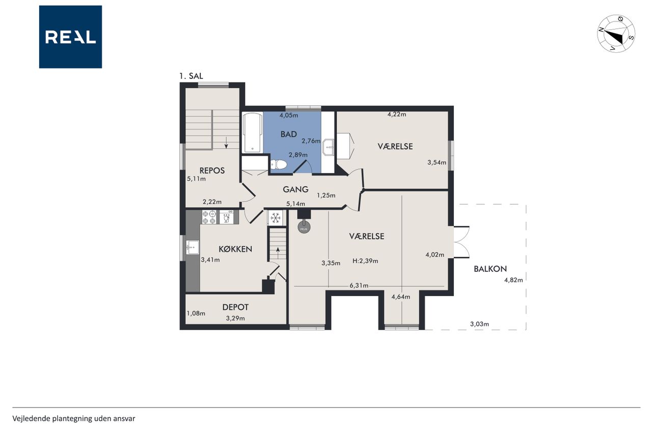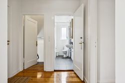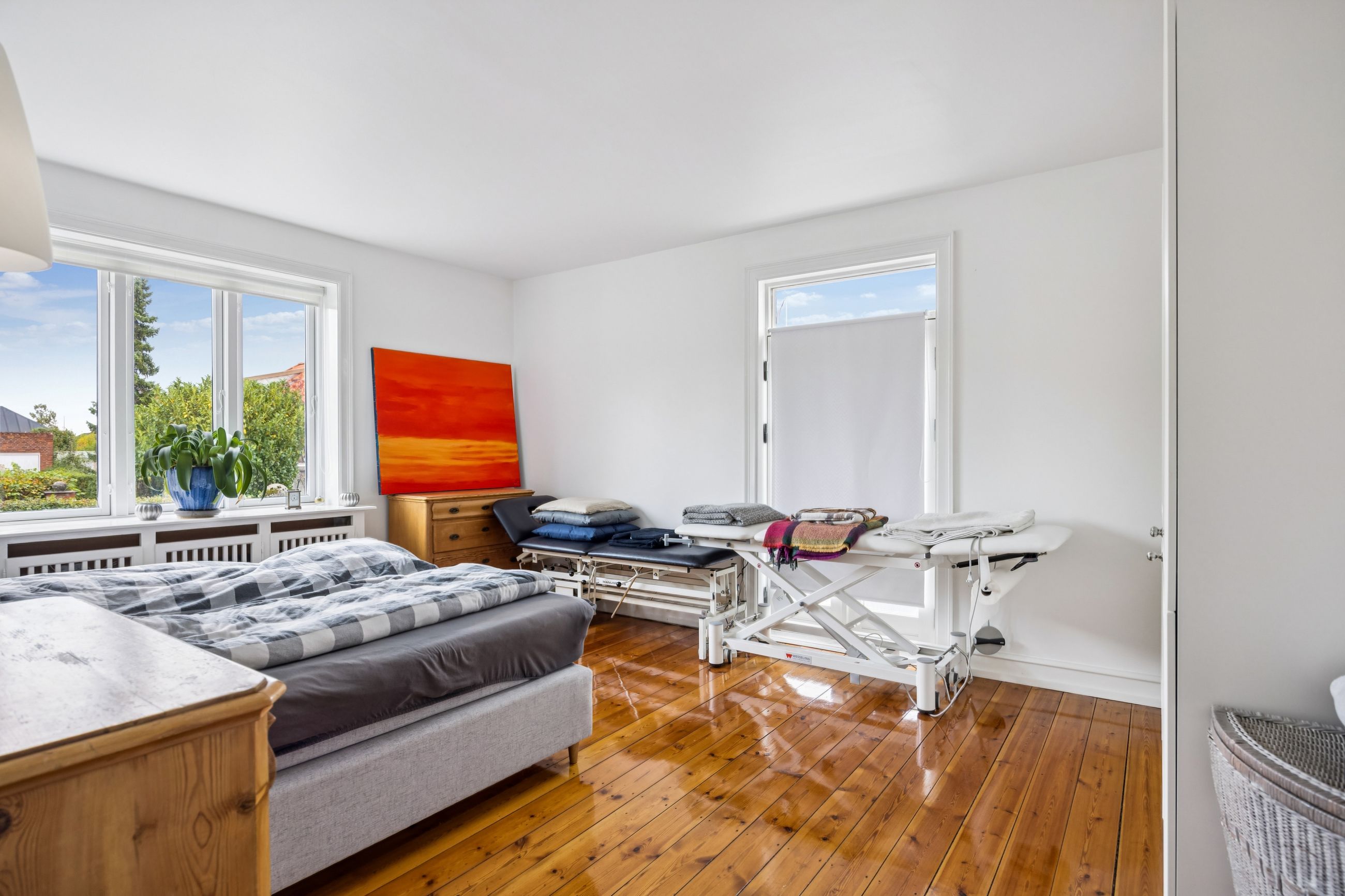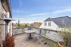 Når du træder indenfor vil det smukke trappeløb straks afsløre husets herskabelige sjæl. I stuerne breder de lakerede, massive trægulve sig under de høje lofter, der prydes af originale stuk og elegante rosetter. De store vinduespartier inviterer dagslyset ind og skaber en let og luftig stemning, der forstærker den fornemme karakter. Den sydvendte balkon forlænger opholdsrummene ud i det fri og tilbyder et roligt sted at nyde morgensolen eller eftermiddagens gyldne lys med udsigt over den grønne og velanlagte have.