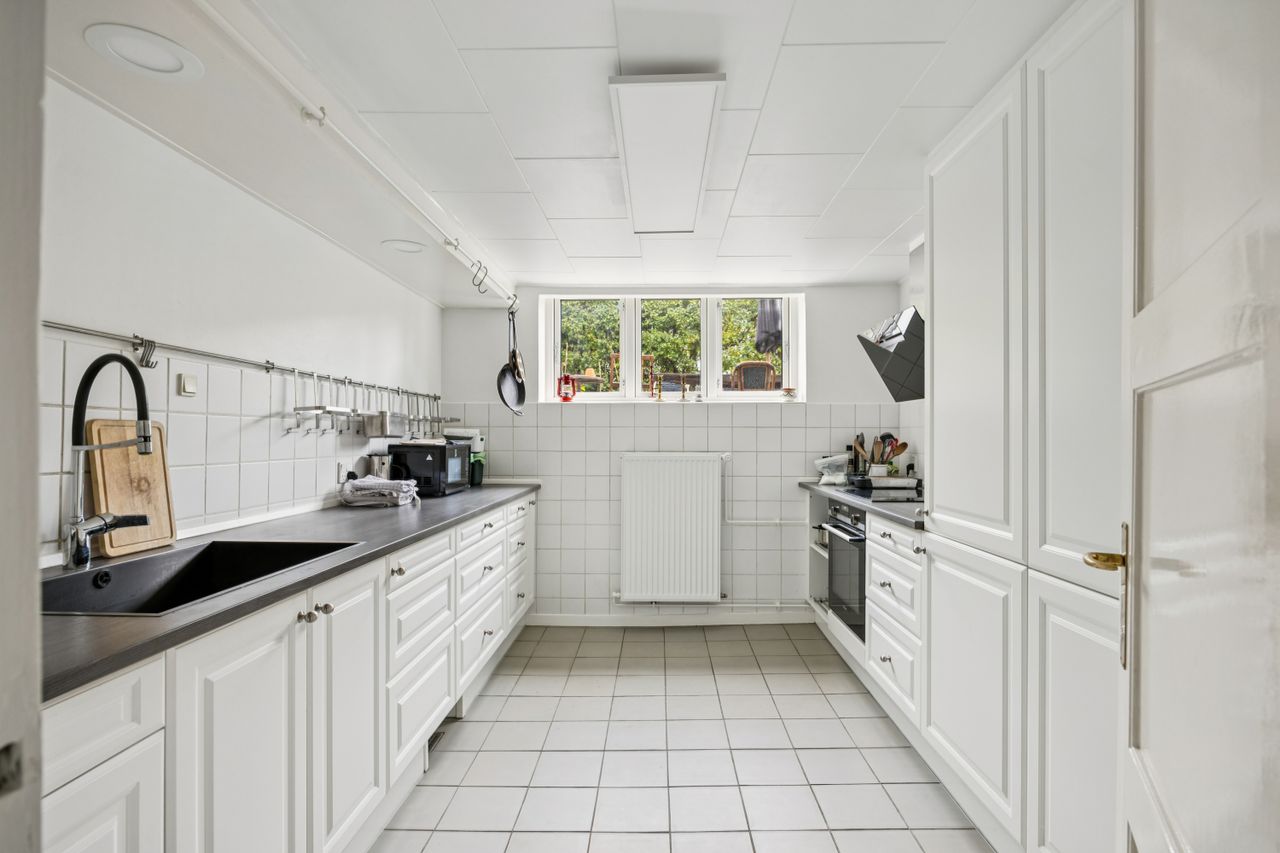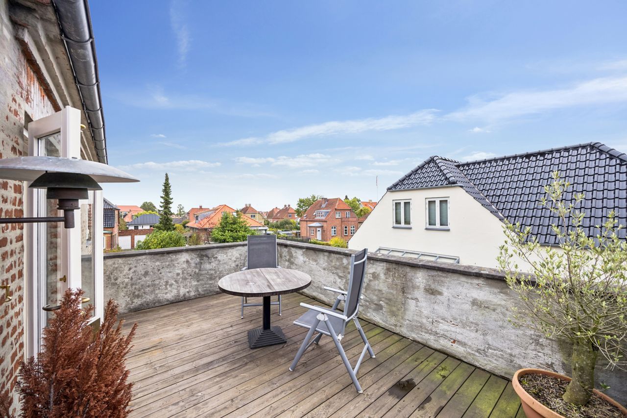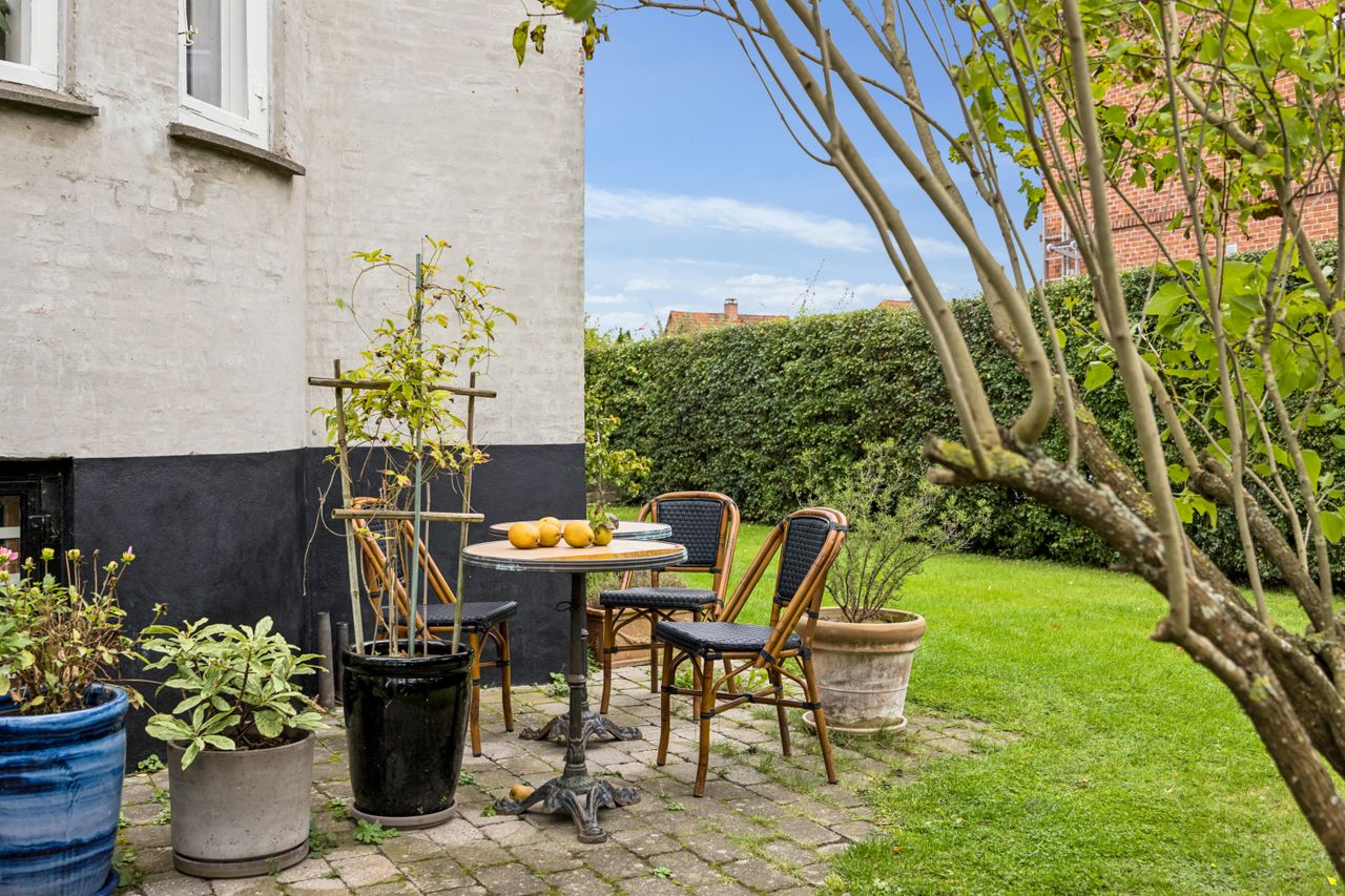 Ejendommen fremstår særdeles velholdt og er løbende nænsomt vedligeholdt, så den oprindelige atmosfære er bevaret med respekt for husets historie. Den omkringliggende have er et kapitel for sig – en frodig og indbydende oase med gamle frugttræer, duftende blomsterbede og en solrig terrasse, der indbyder til sommermiddage og selskabelige stunder under åben himmel. Tilmed også en usædvanligt stor garage, der gør hverdagen lidt nemmere og opmagasineringen lidt nemmere.
