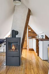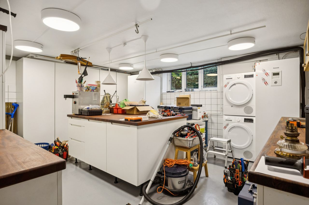 Villaen rummer tre køkkener og fire badeværelser – en sjælden fleksibilitet, som giver mulighed for både flerfamiliebolig, rummelig familievilla eller kombination af bolig og erhverv. De fem værelser og fire disponible rum giver rige indretningsmuligheder, hvad enten behovet er atelier, gæsteafdeling eller hjemmekontor. Tre smukke brændeovne fordelt i huset tilfører varme og stemning på kølige aftener og understreger hjemmets klassiske charme.