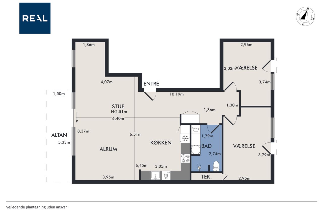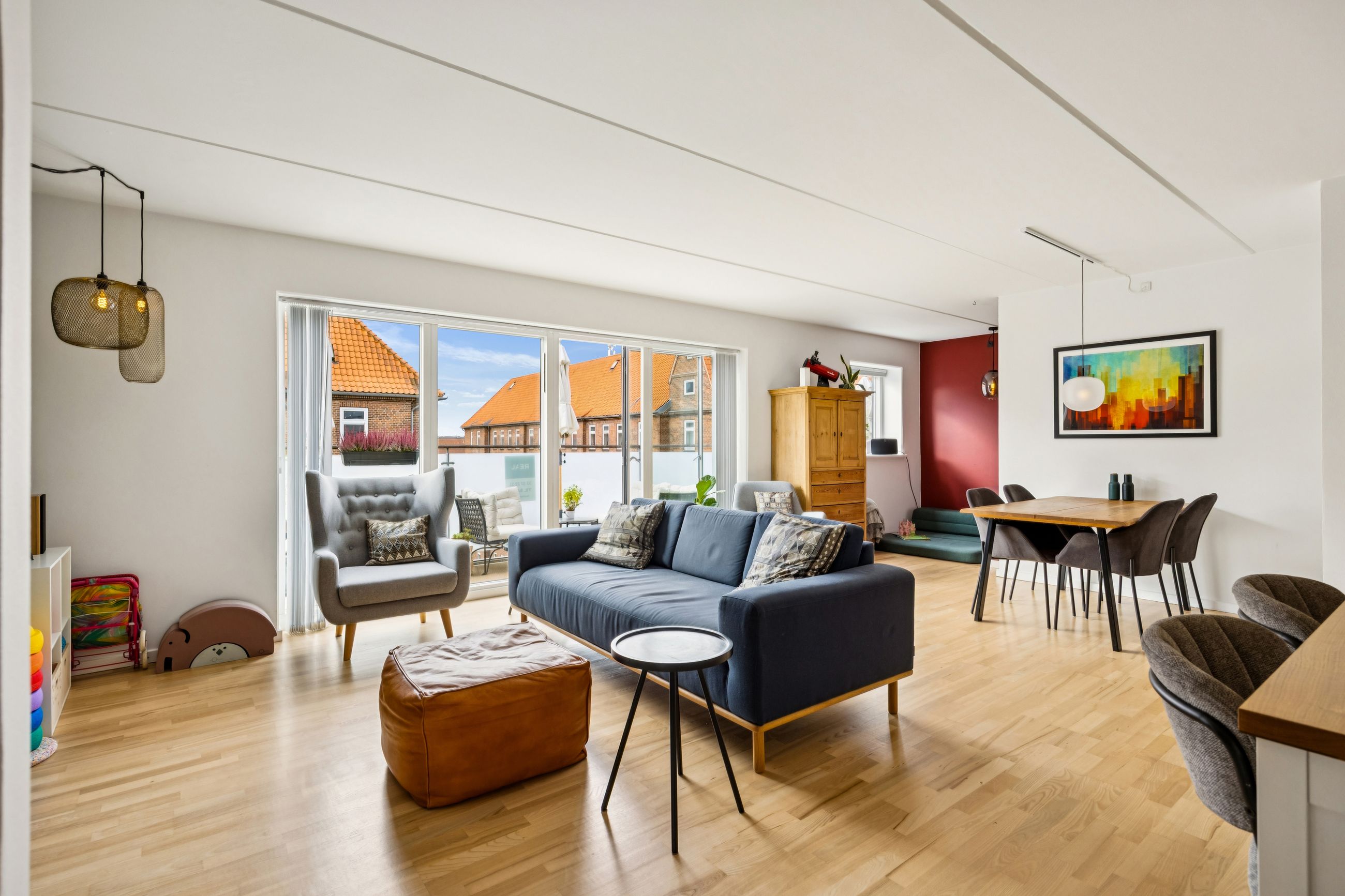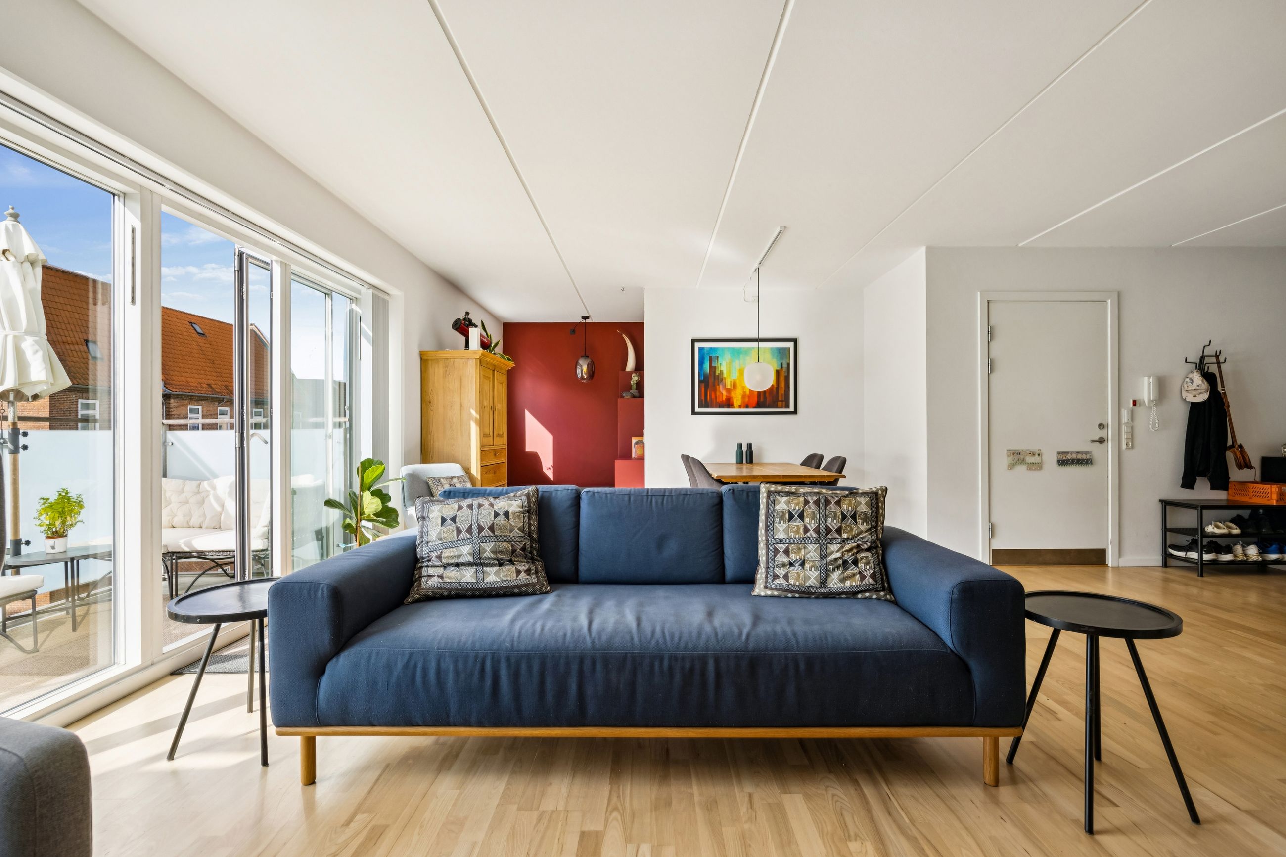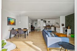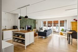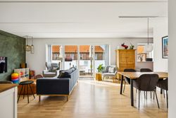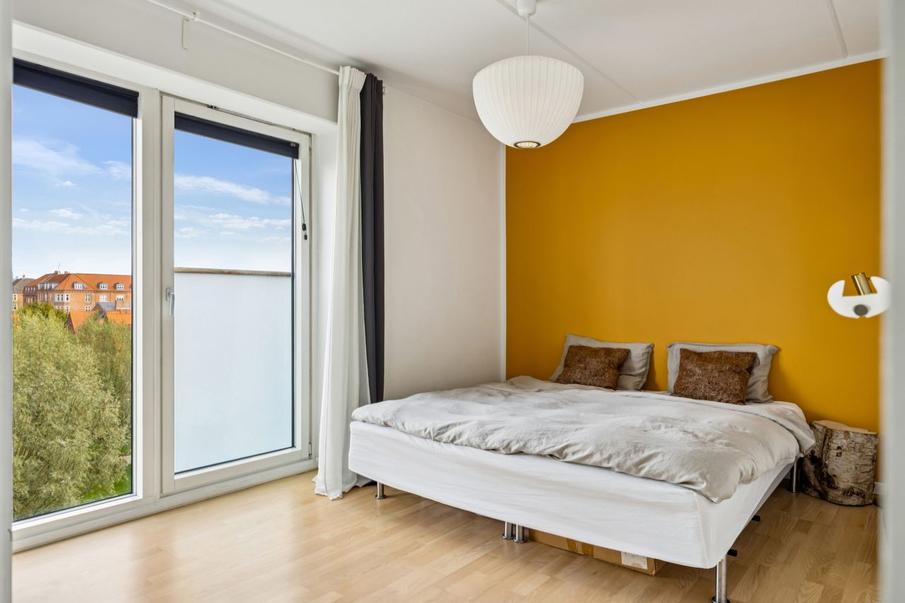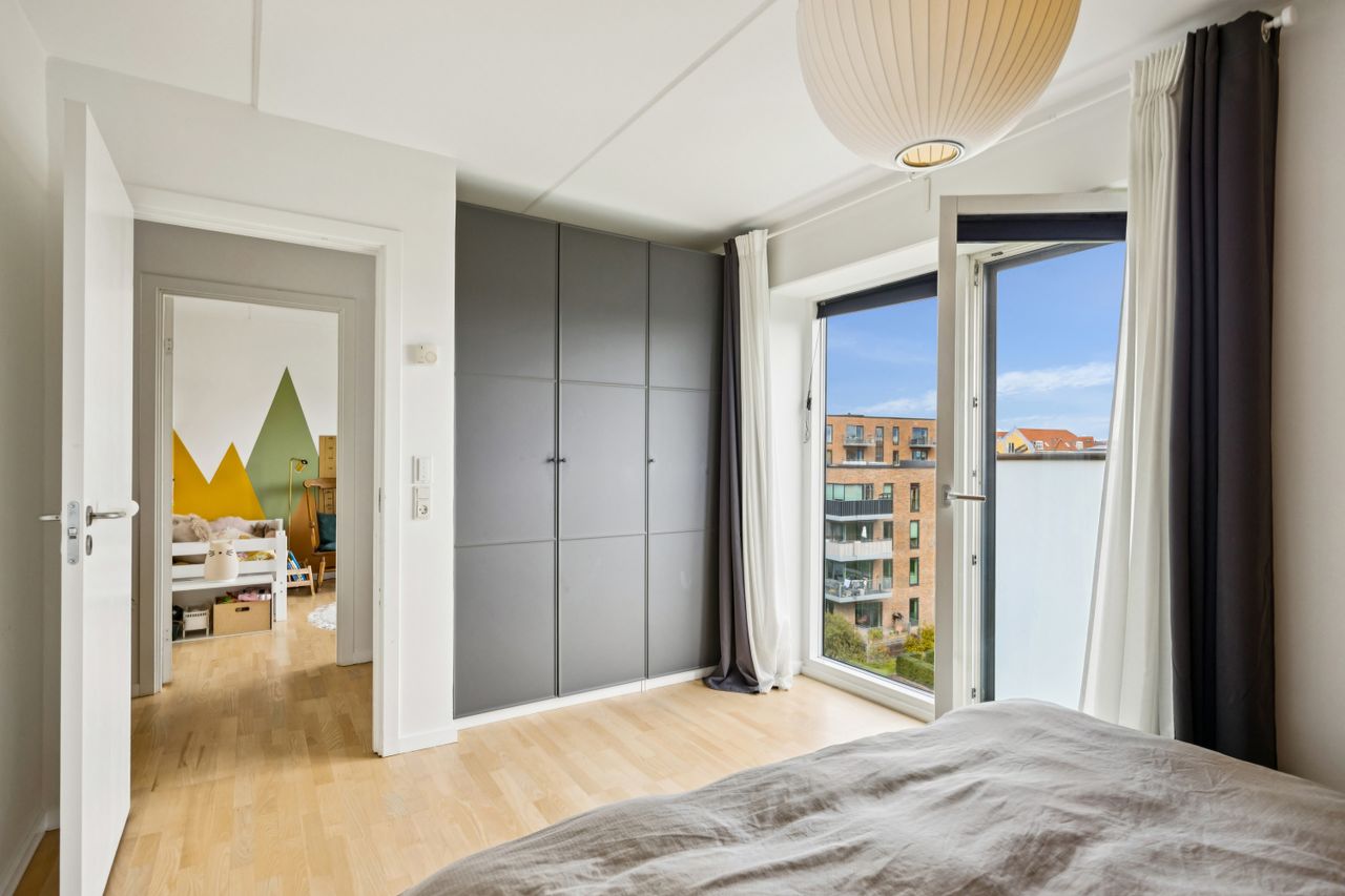 Boligen rummer hele 105 m2 fordelt over to store soveværelser, rummeligt badeværelse med henholdsvis vaskemaskine og tørretumbler samt en lys stue og et moderne, åbent køkkenalrum med udgang til stor vestvendt altan. Her får man masser af dagslys, optimal planløsning uden spildplads, god loftshøjde og generelt en indflytningsklar lejlighed - OG for at toppe dette er der gulvvarme i hele lejligheden.