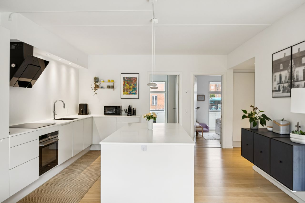 Et elegant Invita-køkken fungerer som et praktisk element for hverdagens madlavning altimens de rene linjer og det lyse farvevalg pryder lejlighedens indretning. Der er også gjort ekstra for at hæve køkkenets funktioner med en række ekstra valg af bl.a. alt i hårde hvidevarer fra Siemens, Quooker, massiv 20 mm bordplade, samt den store, praktiske køkkenø. Badeværelset fortsætter stilen i grå og hvide nuancer og med armaturer fra Grohe og en praktisk vaske/tørremaskine fra Siemens. Soveværelse, kontor, børneværelse eller gæsteværelse. De to regulære værelser kan benyttes til lidt af hvert og byder bl.a. på usædvanligt støjreducerende vinduer med 4 lag inkl. en lyddæmpende rude - her er dejligt lydtæt, så du kan drømme i ro og mag. Den velkonstruerede ejendom fra 2018 byder desuden på et rigtig hyggeligt gårdmiljø med cykelparkering og grønne planter. Foreningens medlemmer er engagerede i driften af ejendommen, og det har båret frugt - her har man nemlig transformeret udemiljøet til en rekreativ oase for både børn og voksne med siddepladser, krydderurtebede og en kreativ legeplads. Til beboerne hører også et ekstraordinært stort værksted i kælderplan med masser af fælles værktøj og inventar, der kan benyttes frit. Desuden finder du under jorden p-kælderen. Her kan tilkøbes en p-plads for kr. 300.000. Amager Boulevard er en fantastisk adresse på kanten mellem byliv og natur. Voldene folder sig ud få hundrede meter fra adressen, mens Fælledens fredede skønhed blot ligger en cykeltur væk. Samtidig bor man altså i et dynamisk område fuldt af indkøbsmuligheder, buslinjer og Metrostop, så man på få minutter kan nå København K, Amager Strand og Islands Brygge Havnebad. Denne del af byen er i rivende udvikling og præsenterer sig hele tiden med nye koncepter, mens man stadig har den velrenommerede Amager Fælled Skole 500 m. fra hoveddøren. Velkommen i Central House. Går du i salgstanker, er du meget velkommen til at kontakte os for en aftale om en uforpligtende salgsvurdering.
