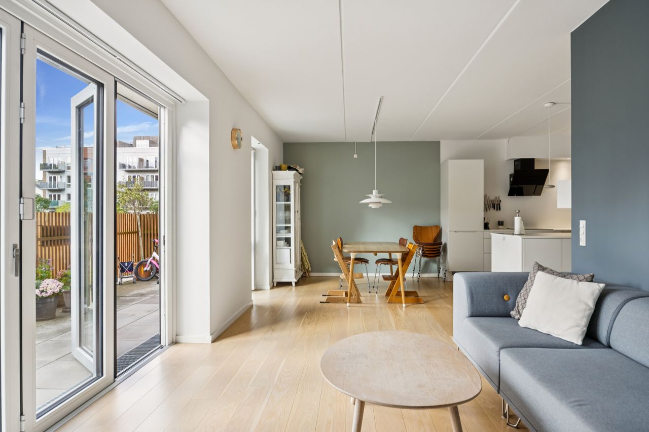 Velkommen til en bolig i absolut topklasse. I den velkendte ejendom Central House, der placerer sig i knudepunktet mellem Islands Brygge, Christianshavn og Amagerbro, får kvaliteten lov til at skinne igennem, mens en stor, intim og sydvestvendt have venter jer. Træd ganske få trin op eller tag blot bagdøren, som fører dig direkte til denne lejlighed. Her venter en bolig, som rummer i alt 96 m2, der kombinerer nordisk minimalisme med New Yorker-grandiositet. Dobbelte, støjreducerende vinduespartier fra gulv til loft er med til at sikre et ugeneret lydbillede og et kompromisløst lysindfald. I hele lejligheden er der lækre egetræsplankegulve med gulvvarme. Lejlighedens planløsning henvender sig især til mindre familietyper, par og egoister i alle aldre. Lejligheden indeholder entré, køkken og stue, der hænger naturligt sammen i et åbent miljø, som samler hverdagens aktiviteter og forlænges af den sydvendte have med foldedøre, to værelser og et stilrent badeværelse. Lejligheden ligger perfekt placeret i midten af bygningen med direkte udgang fra haven til det udsøgte foreningsmiljø.