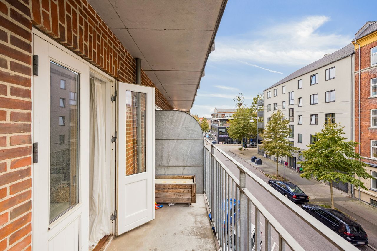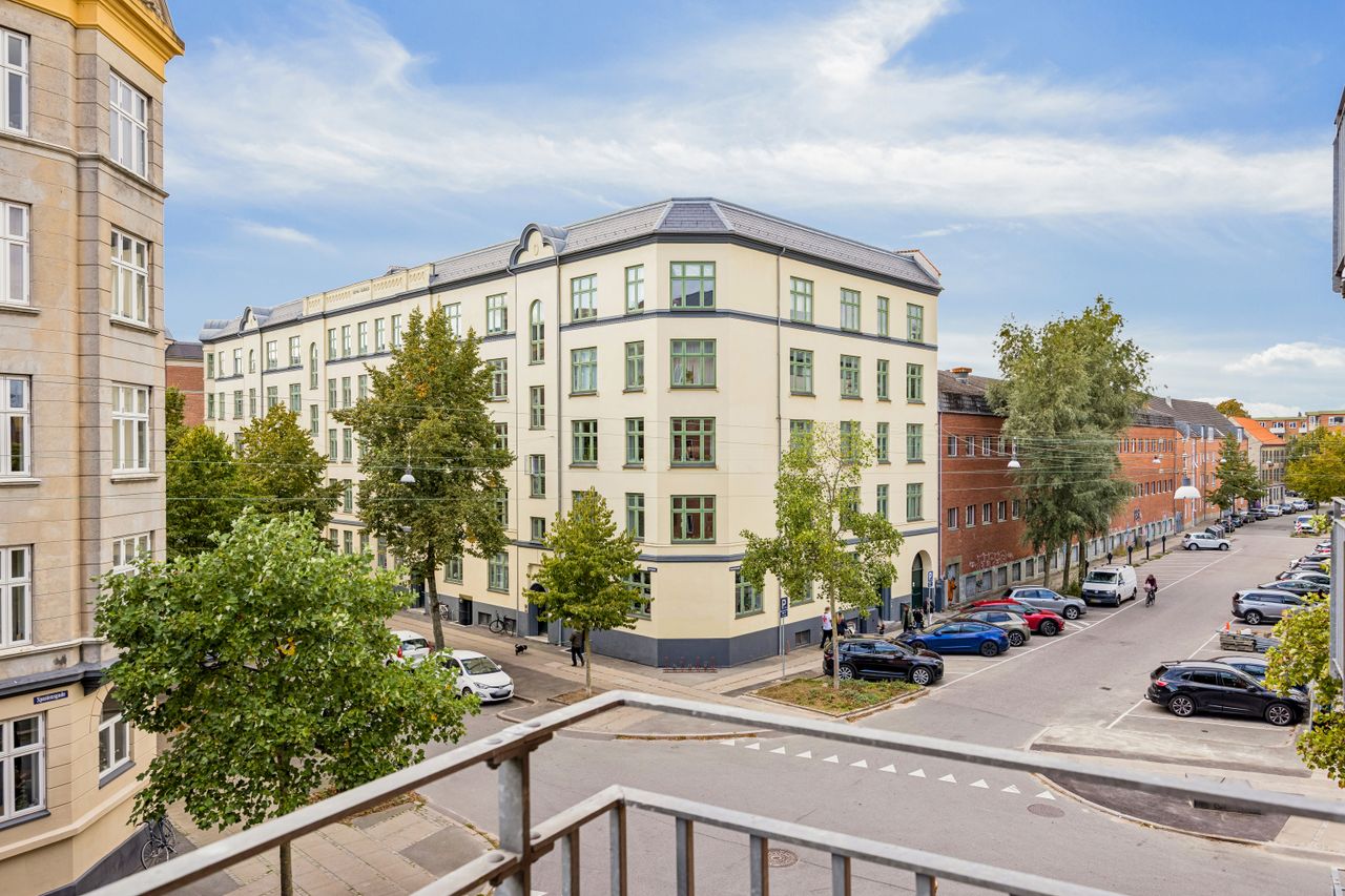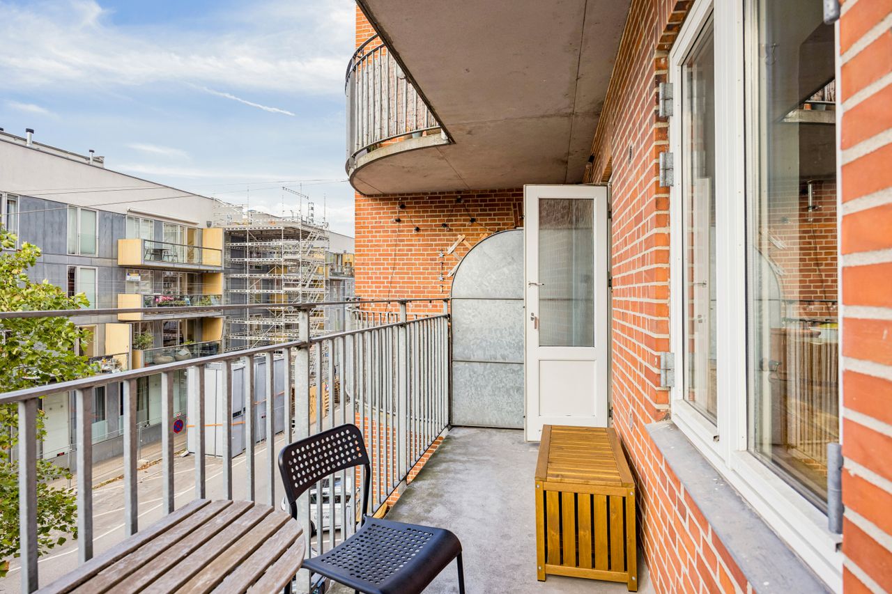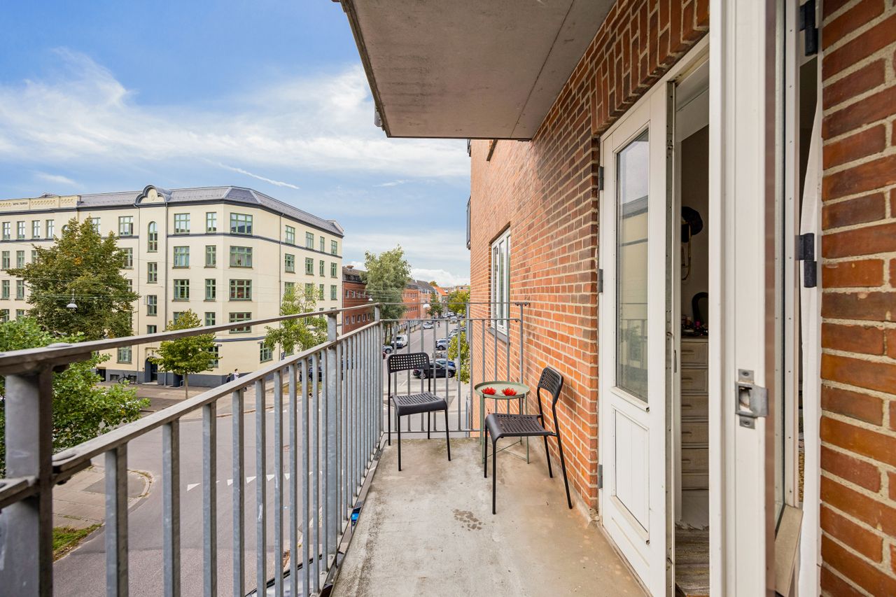 Velkommen til Lyongade 24, 2. th. – en sjældent udbudt 2-værelses lejlighed på 46 m2 i hjertet af Amager, midt i byen på en stille sidegade. Her får du en bolig med hele to altaner – én vestvendt og én anden mod sydvest, så du kan nyde solen hele dagen frem til aftenbrise med udsigt over nabolagets liv.