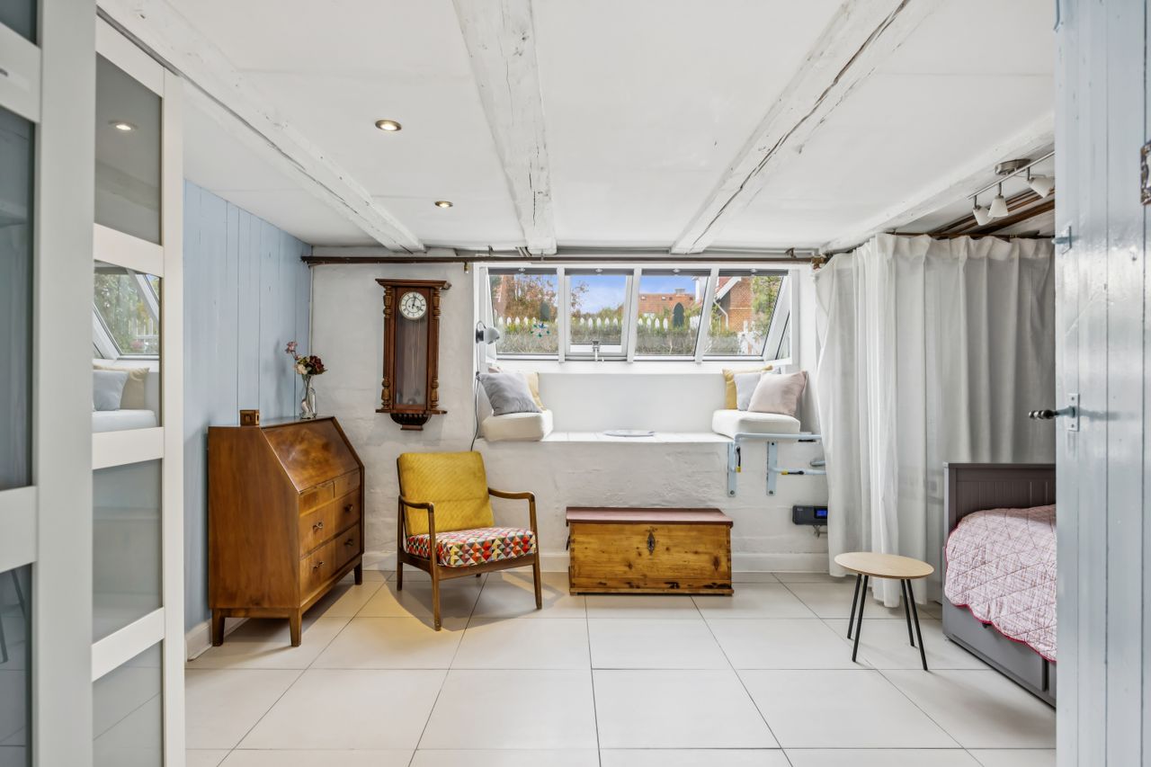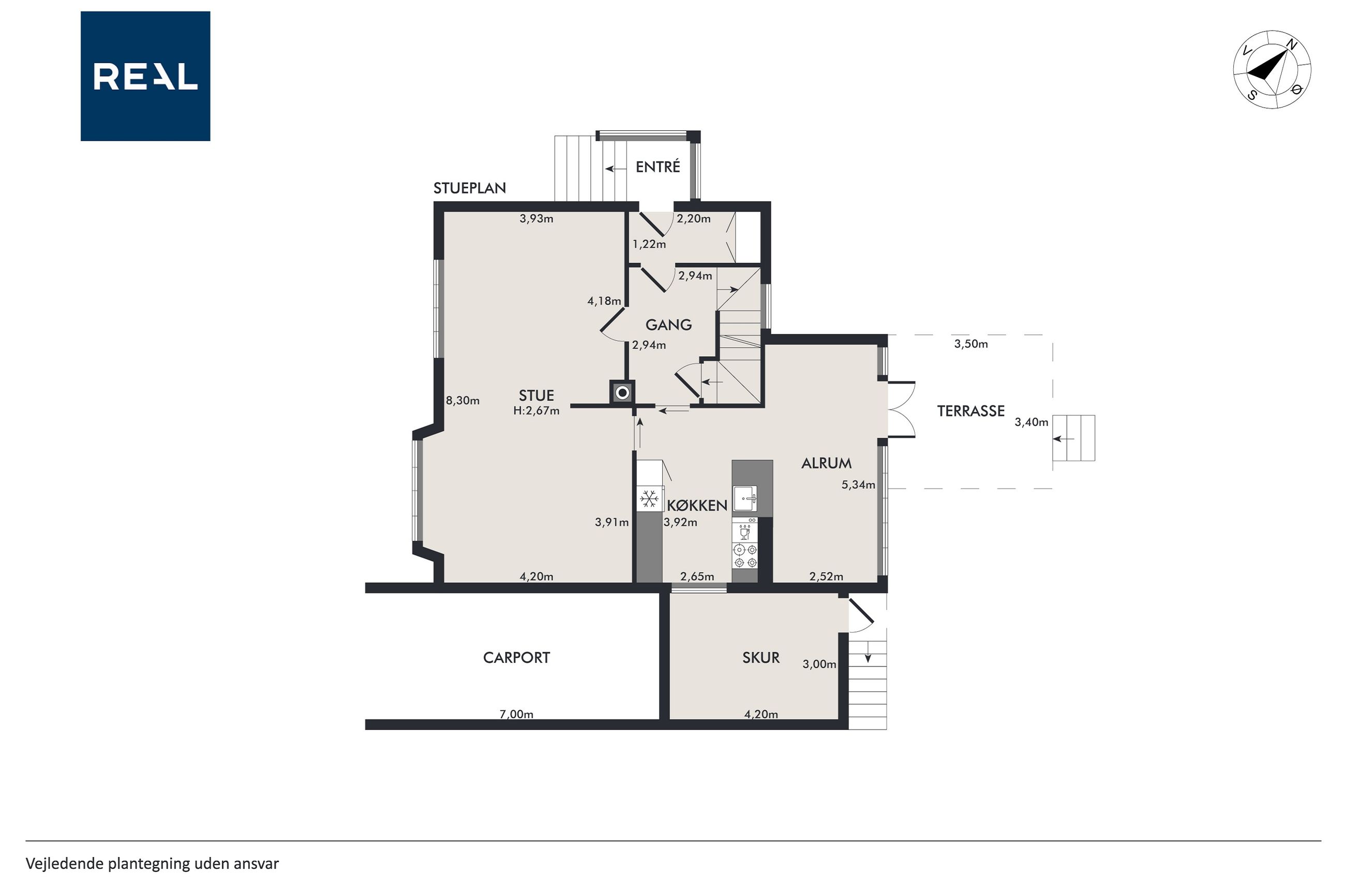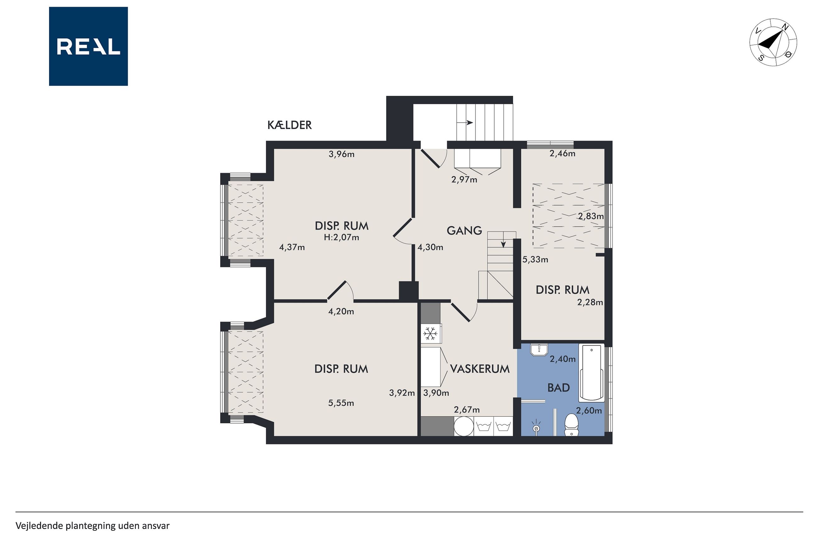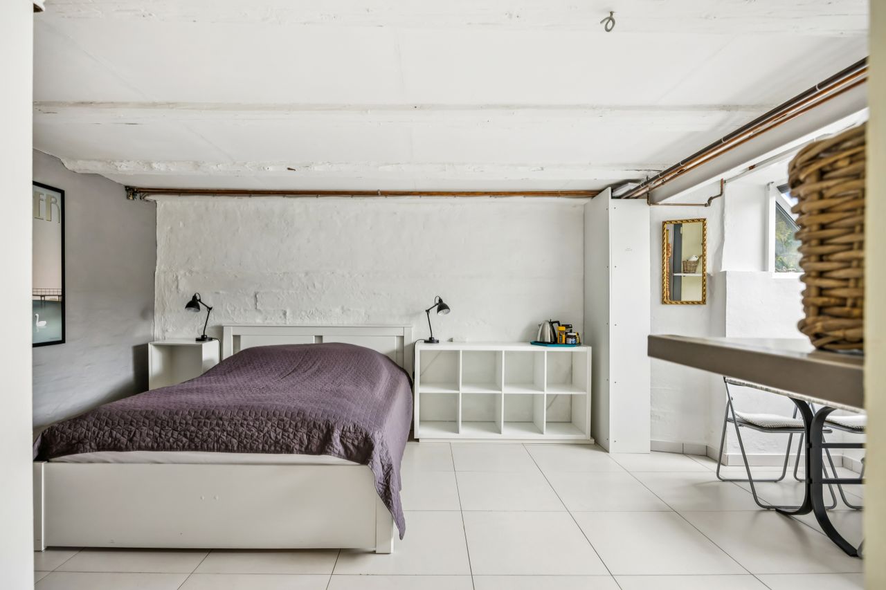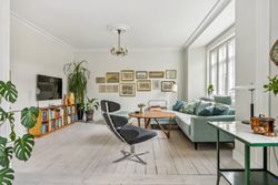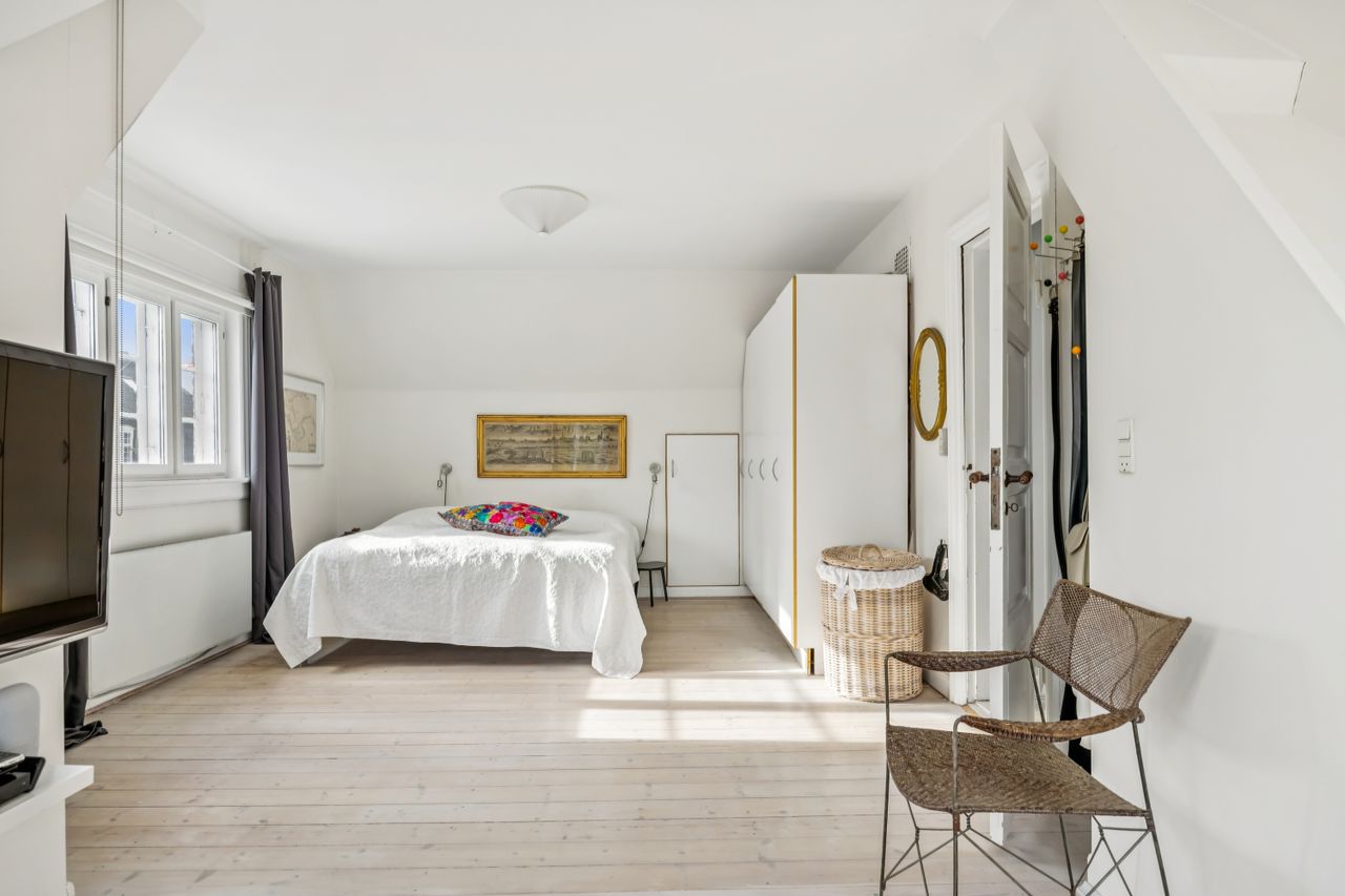 Når du træder ind i stuen, vil du straks blive betaget af de herskabelige stuklofter og elegante rosetter, som sammen med de store vinduespartier skaber et lyst og luftigt rum. De massive trægulve bidrager til stuens varme atmosfære. Den højloftede kælder blev renoveret i 2012 med nyt gulv og gulvvarme, hvilket giver ekstra anvendelsesmuligheder for familien.