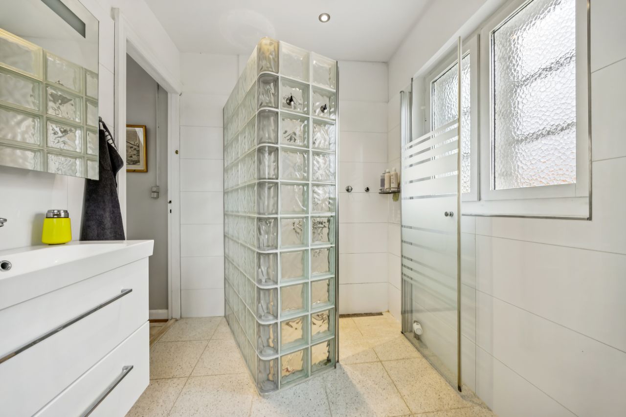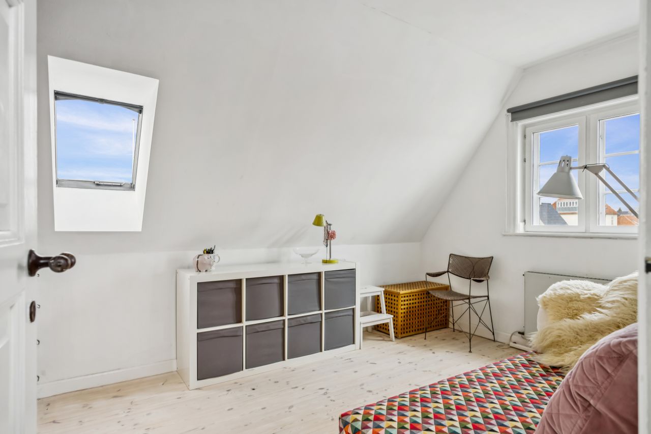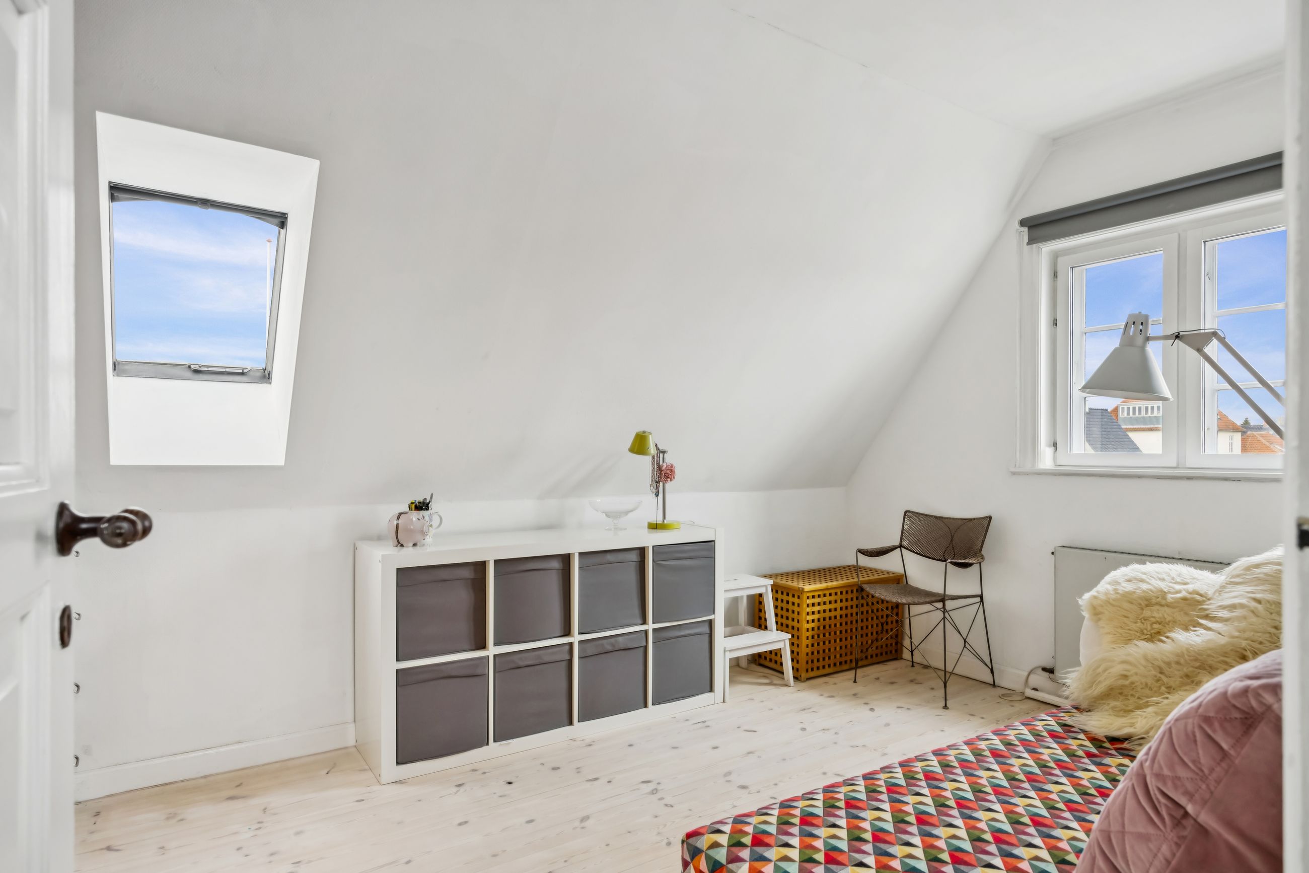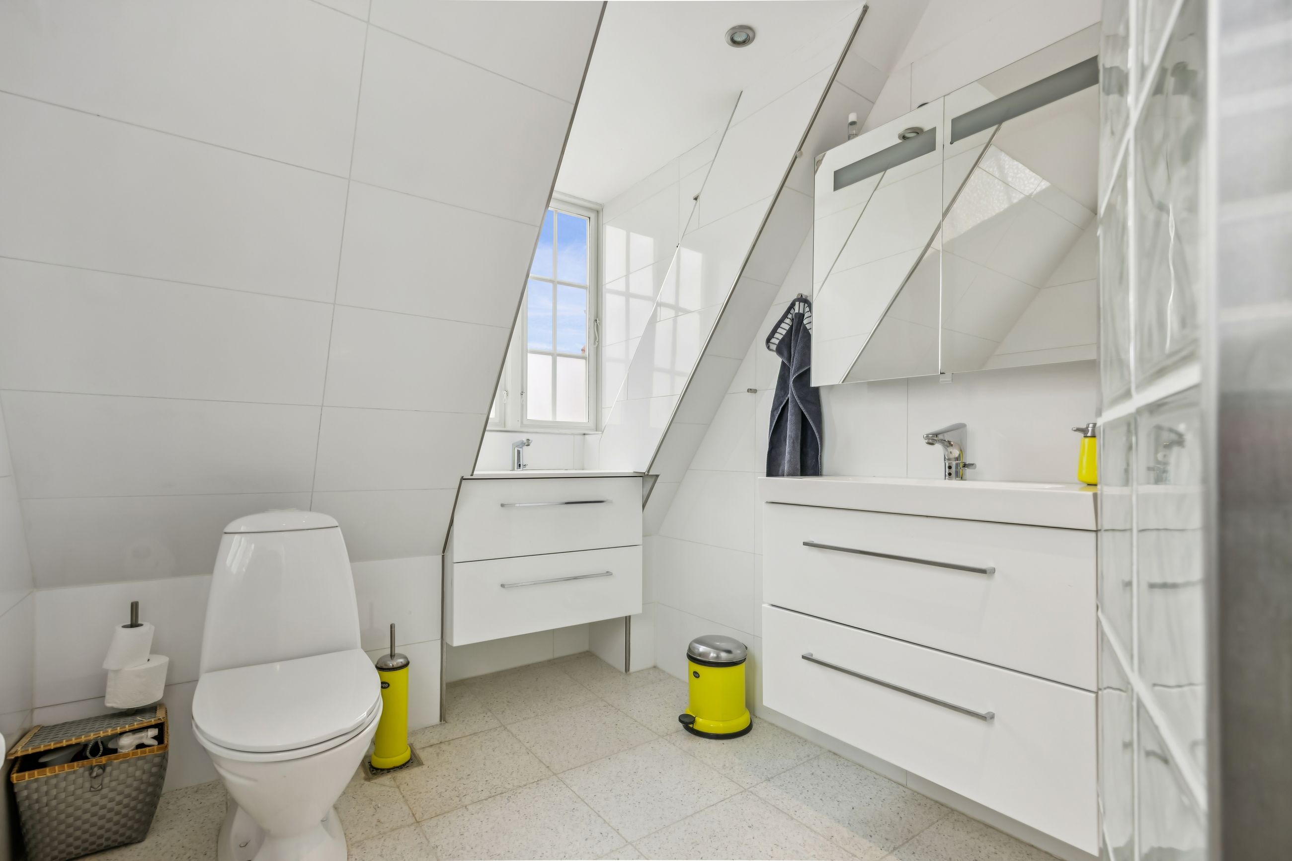 På første sal finder du to rummelige værelser samt et master bedroom med et imponerende stort vinduesparti - dette rum kan let opdeles i to separate værelser efter behov(se alternativ plantegning). Badeværelset på denne etage blev også opdateret i 2012 sammen med udskiftningen af taget, hvilket sikrer en vedligeholdelsesfri boligoplevelse mange år frem.