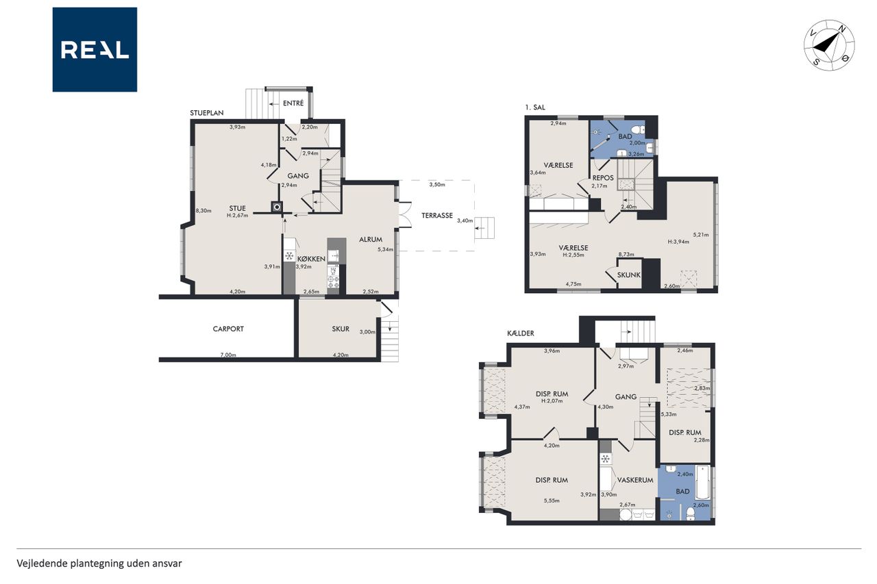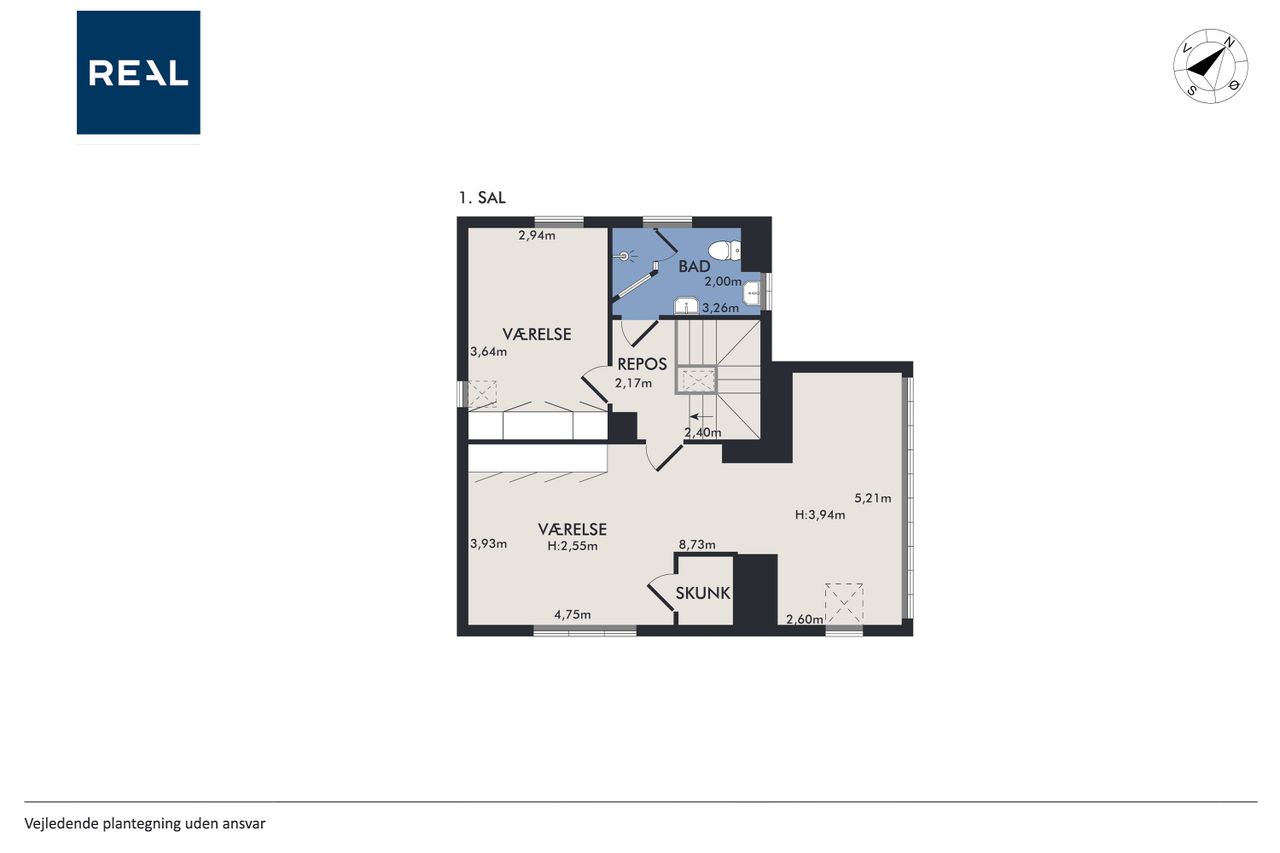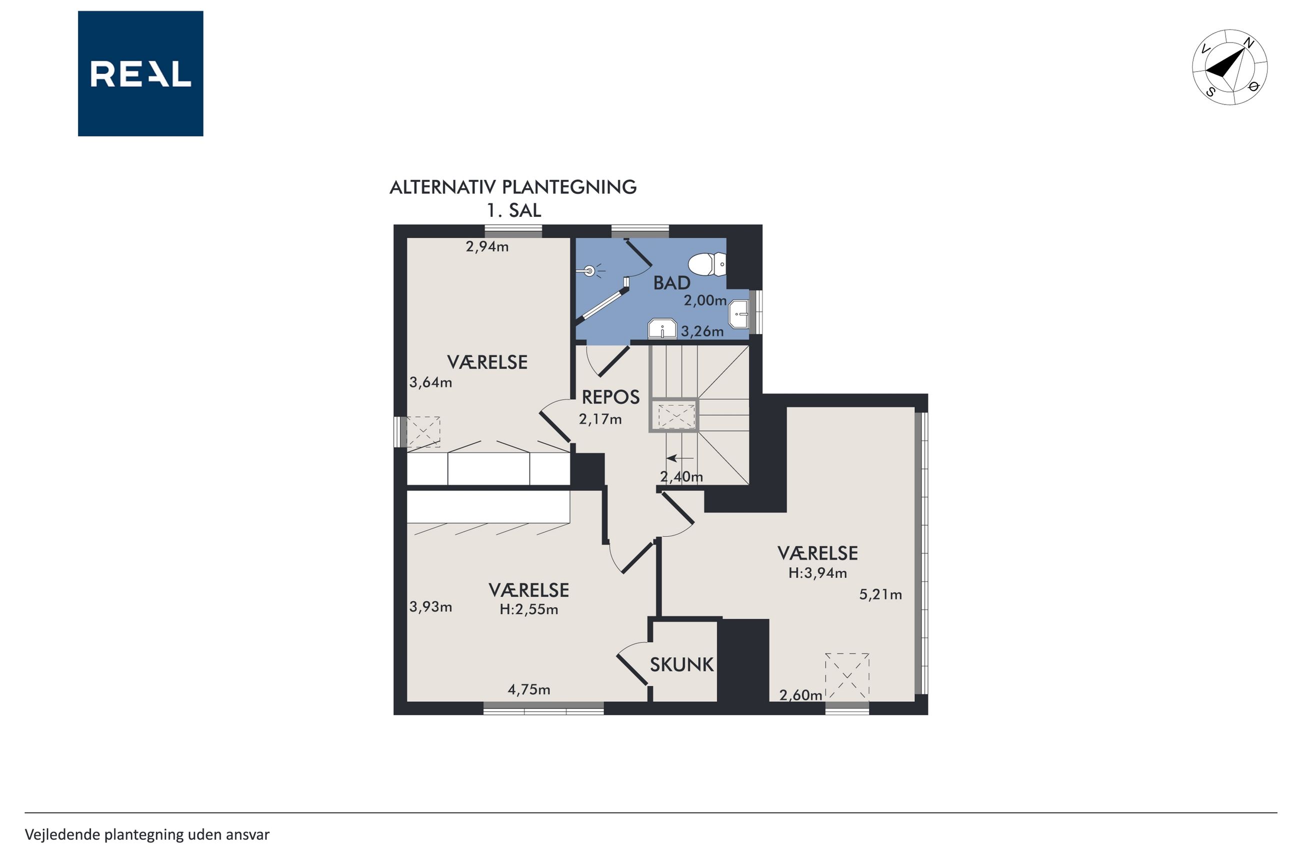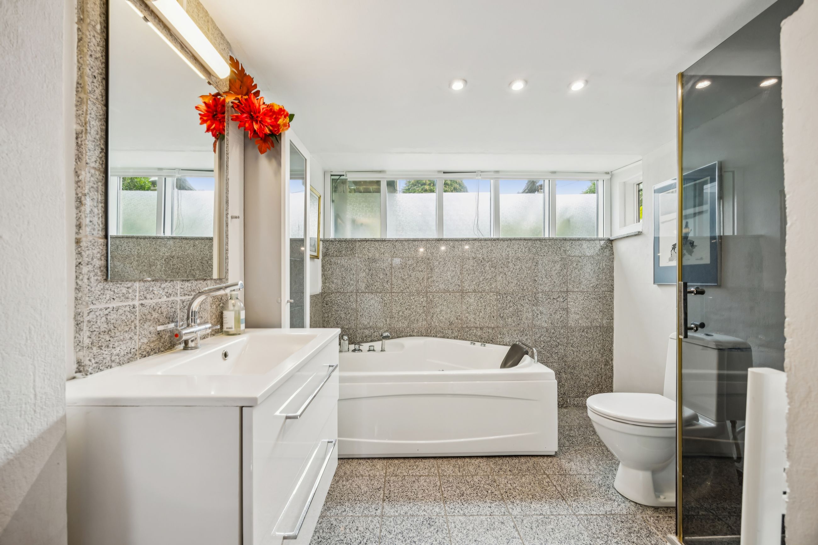 På første sal finder du to rummelige værelser samt et master bedroom med et imponerende stort vinduesparti - dette rum kan let opdeles i to separate værelser efter behov(se alternativ plantegning). Badeværelset på denne etage blev også opdateret i 2012 sammen med udskiftningen af taget, hvilket sikrer en vedligeholdelsesfri boligoplevelse mange år frem.