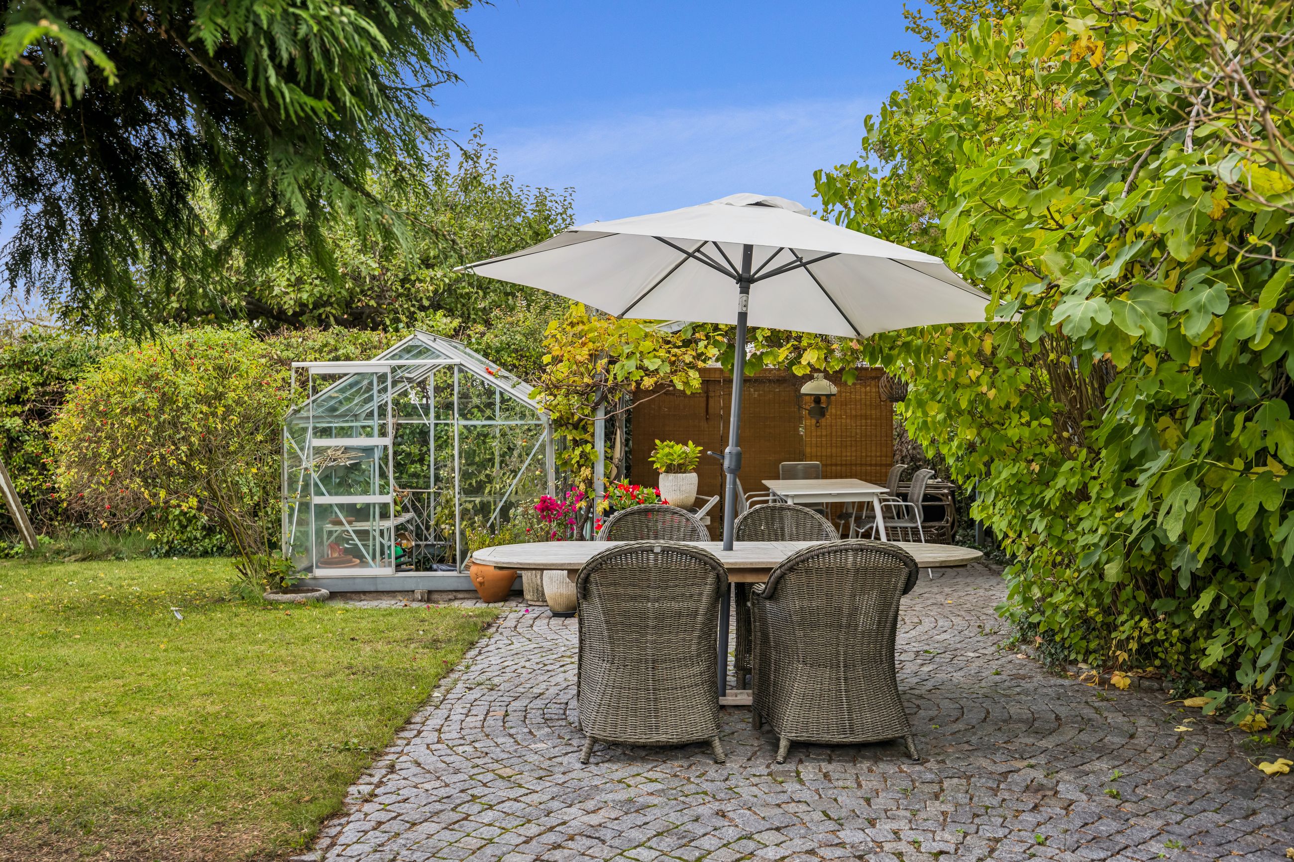 Haven er en sand oase anlagt af en professionel anlægsgartner. Den er designet til at være nem at vedligeholde og optimeret til brug af robotplæneklipper. Her finder du hyggelige kroge perfekt til afslapning samt en chaussestensterrasse bagerst i haven – ideel til sommerens grillfester. Fra køkken-alrummet har du direkte adgang til en stor træterrasse, der fungerer som husets naturlige forlængelse.