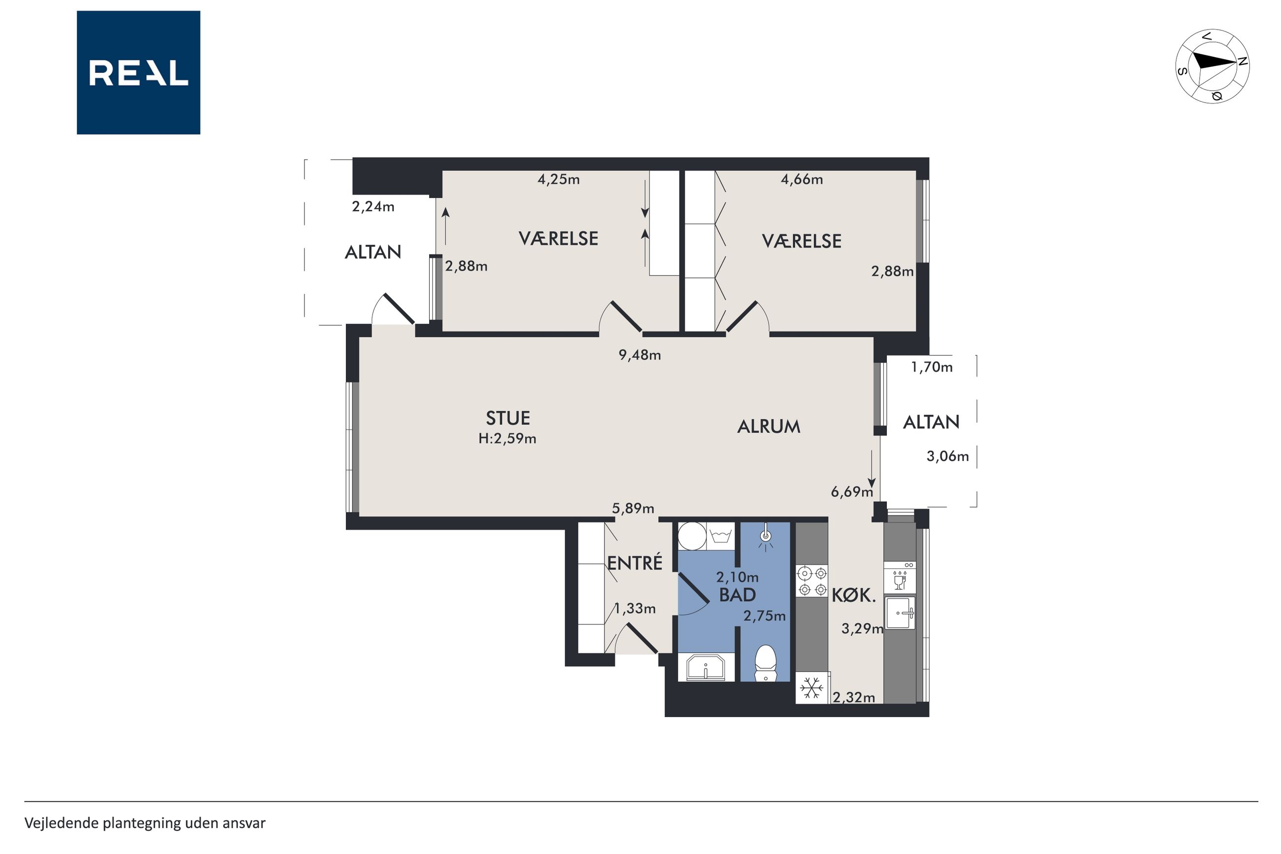 Boligen byder på hele to altaner, hvor du kan nyde morgenkaffen med udsigt til de frodige fællesarealer eller hyggelige aftener med venner og familie i de rolige omgivelser. Begge altaner fungerer som et ekstra opholdsrum gennem sommerperioden, og deres placering giver både lys og privatliv.