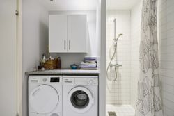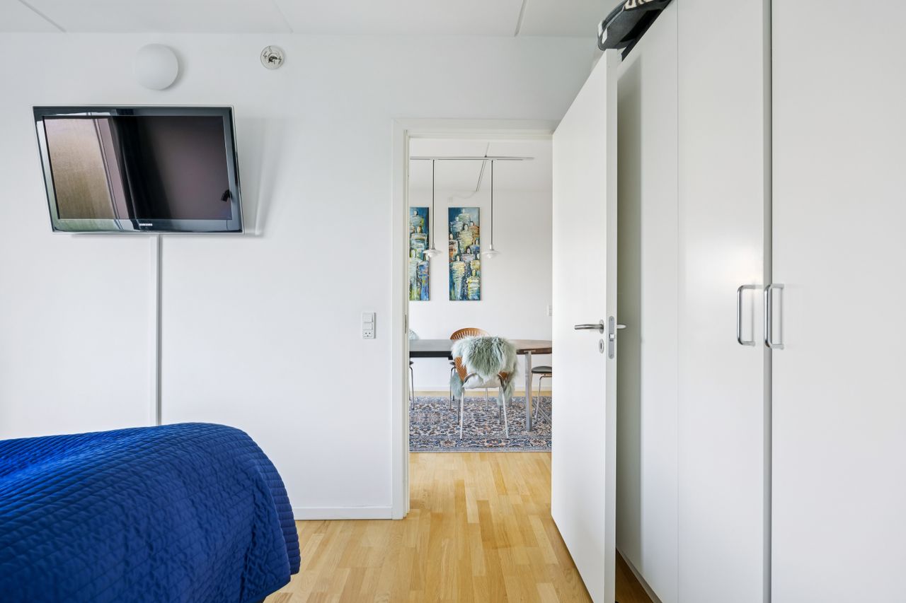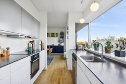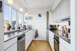 Lejligheden fremstår lys og indbydende med vinduespartier fra gulv til loft i flere rum. Køkkenet er moderne og åbent med god skabsplads, og badeværelset har alle de bekvemmeligheder, man forventer fra en nyere ejendom. God rumudnyttelse og håndværksmæssig kvalitet er kendetegnende for lejlighederne på Edvard Thomsens Vej 21. Her får du en bolig, hvor livet leves nemmere – med alle tænkelige faciliteter og fordele samlet på ét sted.