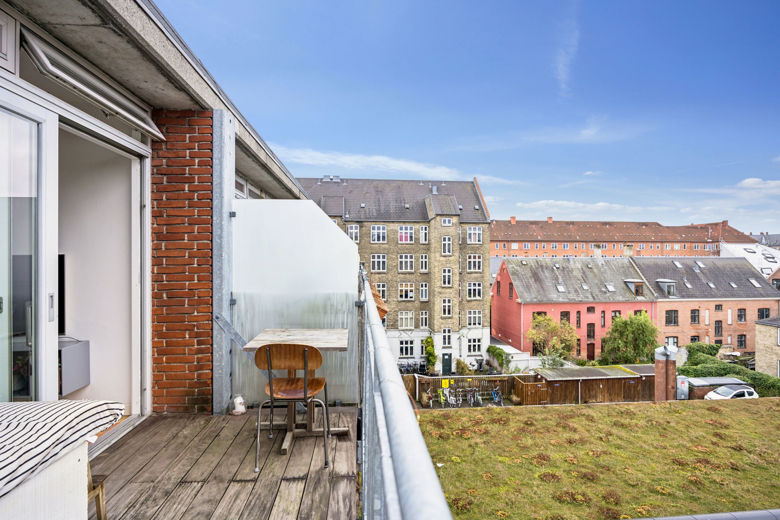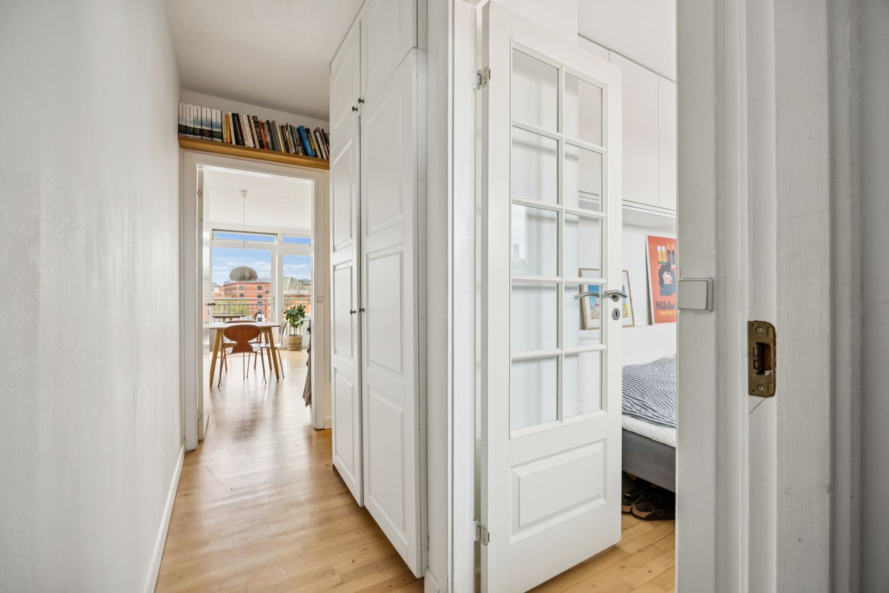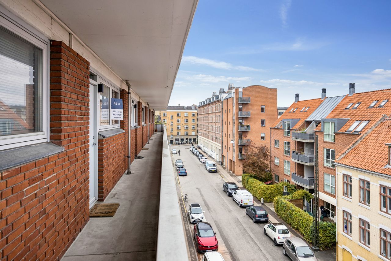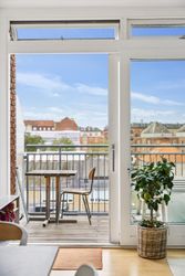 Et af de mest bemærkelsesværdige træk ved denne bolig er det store vinduesparti, der sikrer et fantastisk lysindfald dagen lang. Herfra har du adgang til en skøn altan gennem en skydedør. Altanen tilbyder rigelig plads til både grill og sofaarrangementer, hvor du kan nyde solen hele dagen med et helt frit og privat kig – noget ganske unikt for en så central beliggenhed på Amagerbro.