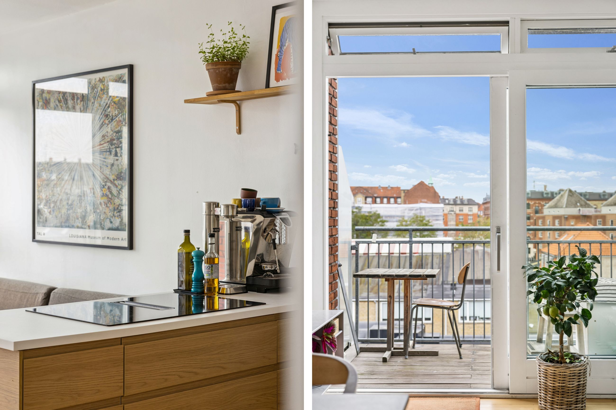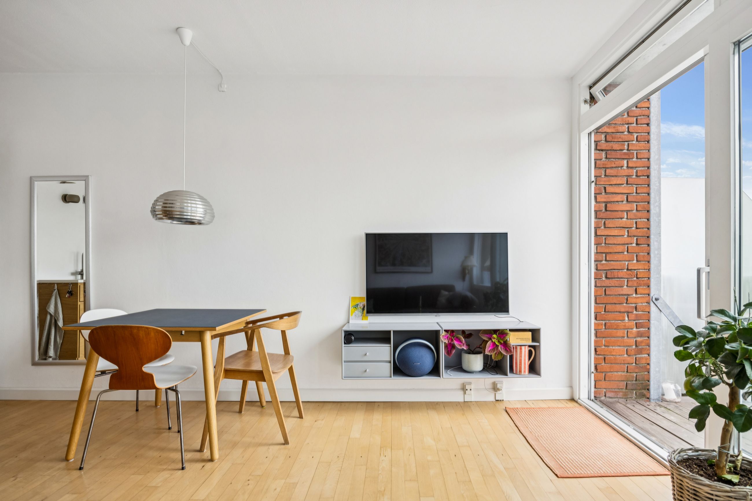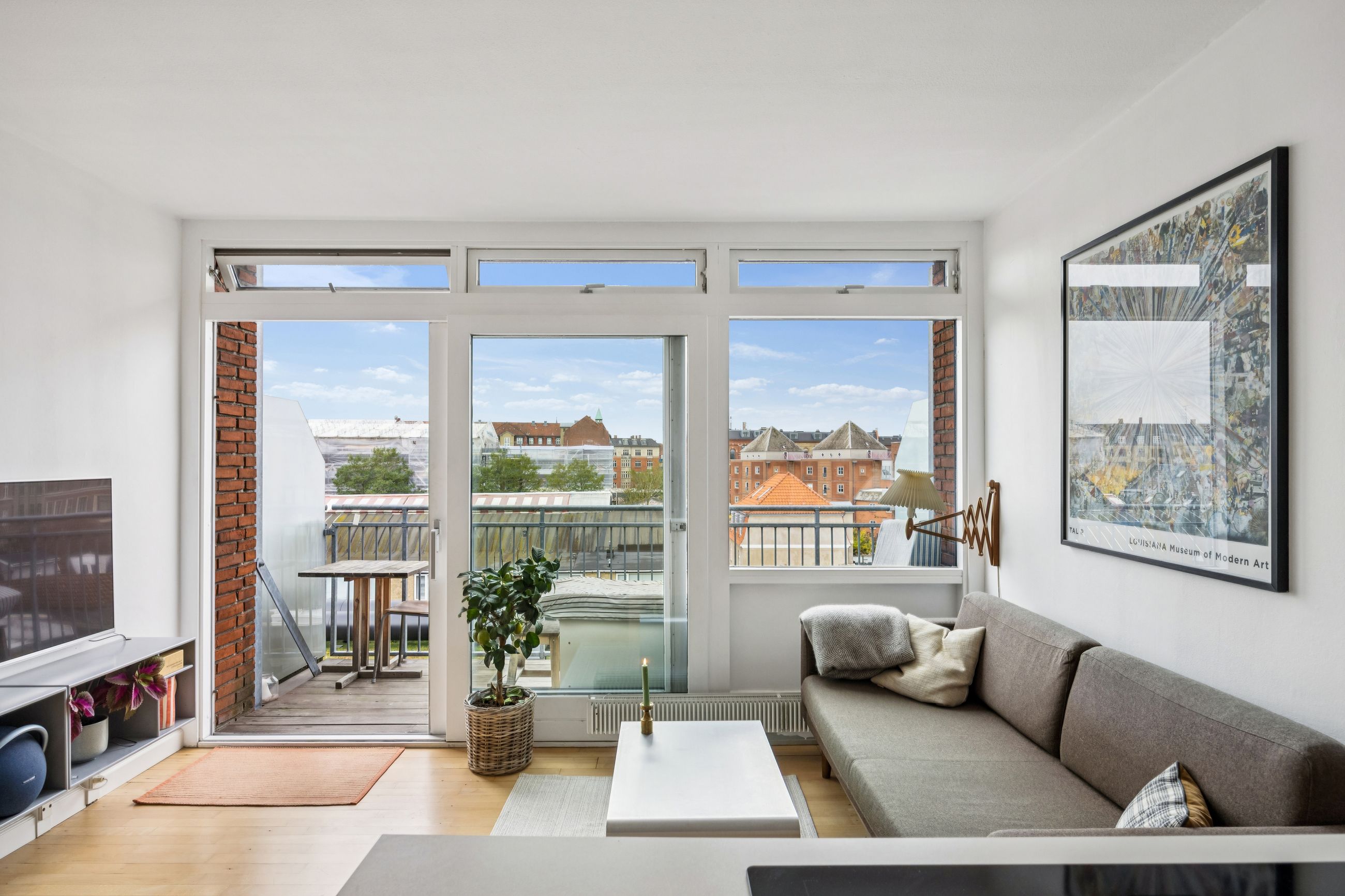 Et af de mest bemærkelsesværdige træk ved denne bolig er det store vinduesparti, der sikrer et fantastisk lysindfald dagen lang. Herfra har du adgang til en skøn altan gennem en skydedør. Altanen tilbyder rigelig plads til både grill og sofaarrangementer, hvor du kan nyde solen hele dagen med et helt frit og privat kig – noget ganske unikt for en så central beliggenhed på Amagerbro.