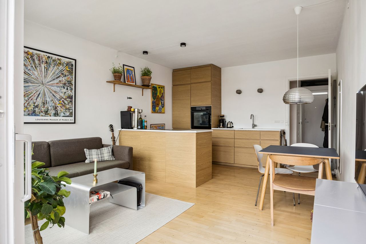 Velkommen til denne fantastiske 2-værelses ejerlejlighed, der ligger centralt placeret på det charmerende Amagerbro. Med et boligareal på 47 kvadratmeter er denne lejlighed den perfekte kombination af funktionalitet og stil. Når du træder ind i lejligheden, vil du blandt andet blive mødt af et elegant åbent køkken, der glider harmonisk over i stuen. Køkkenet er nyere og imponerer med sit moderne design samt praktiske løsninger som en indbygget opvaskemaskine og emhætte.