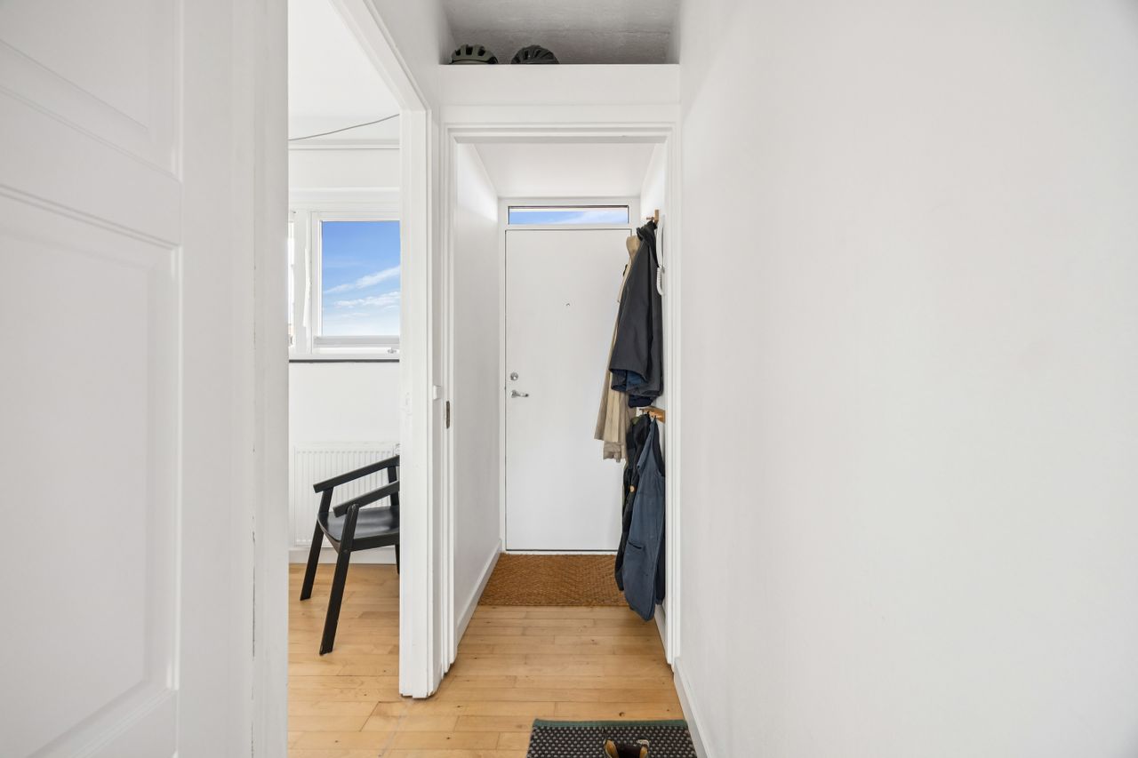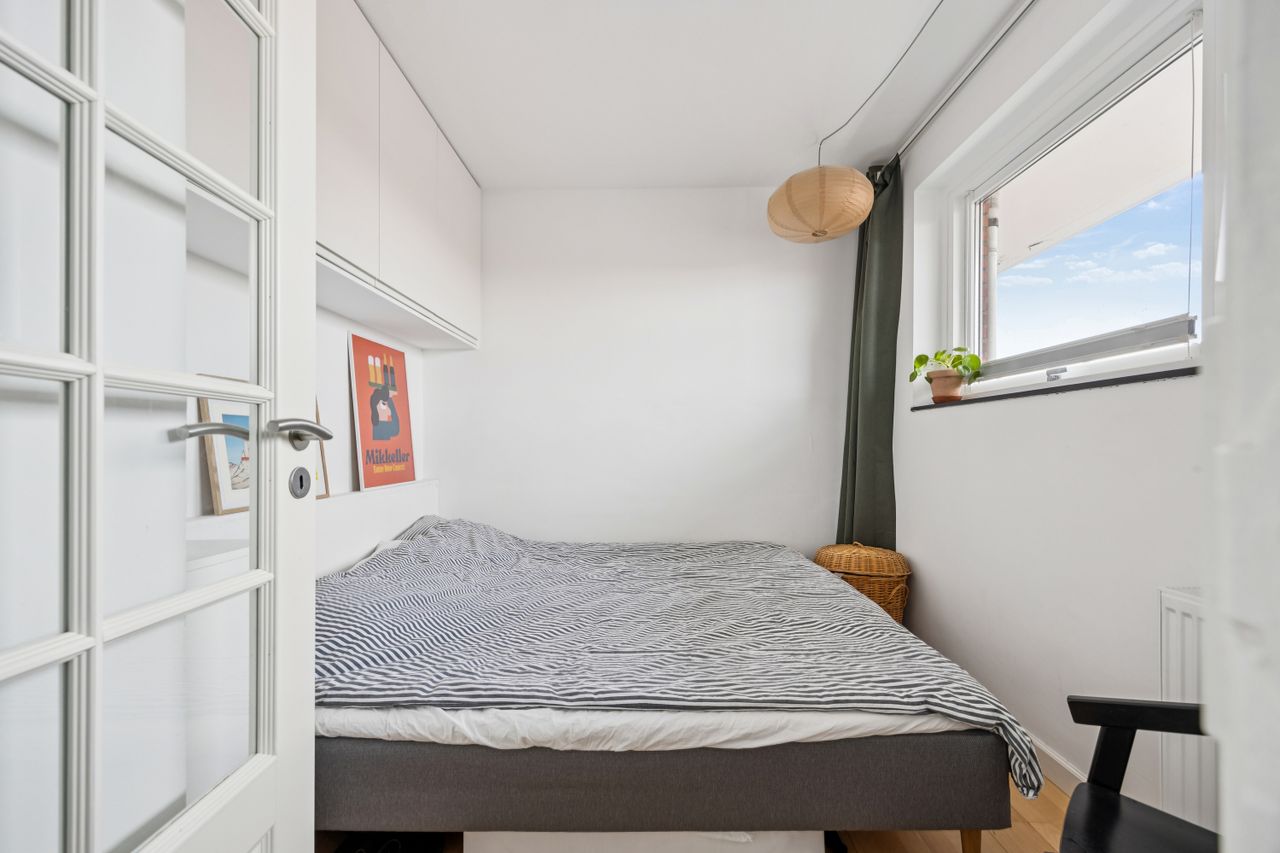 Lejligheden byder også på et vidunderligt badeværelse med separat bruseniche og god plads til opbevaring. Det rummelige soveværelse giver dig mulighed for at skabe din egen personlige oase, mens entréen med indbyggede skabe sørger for masser af opbevaringsplads til overtøj og endda en vaskemaskine.