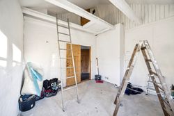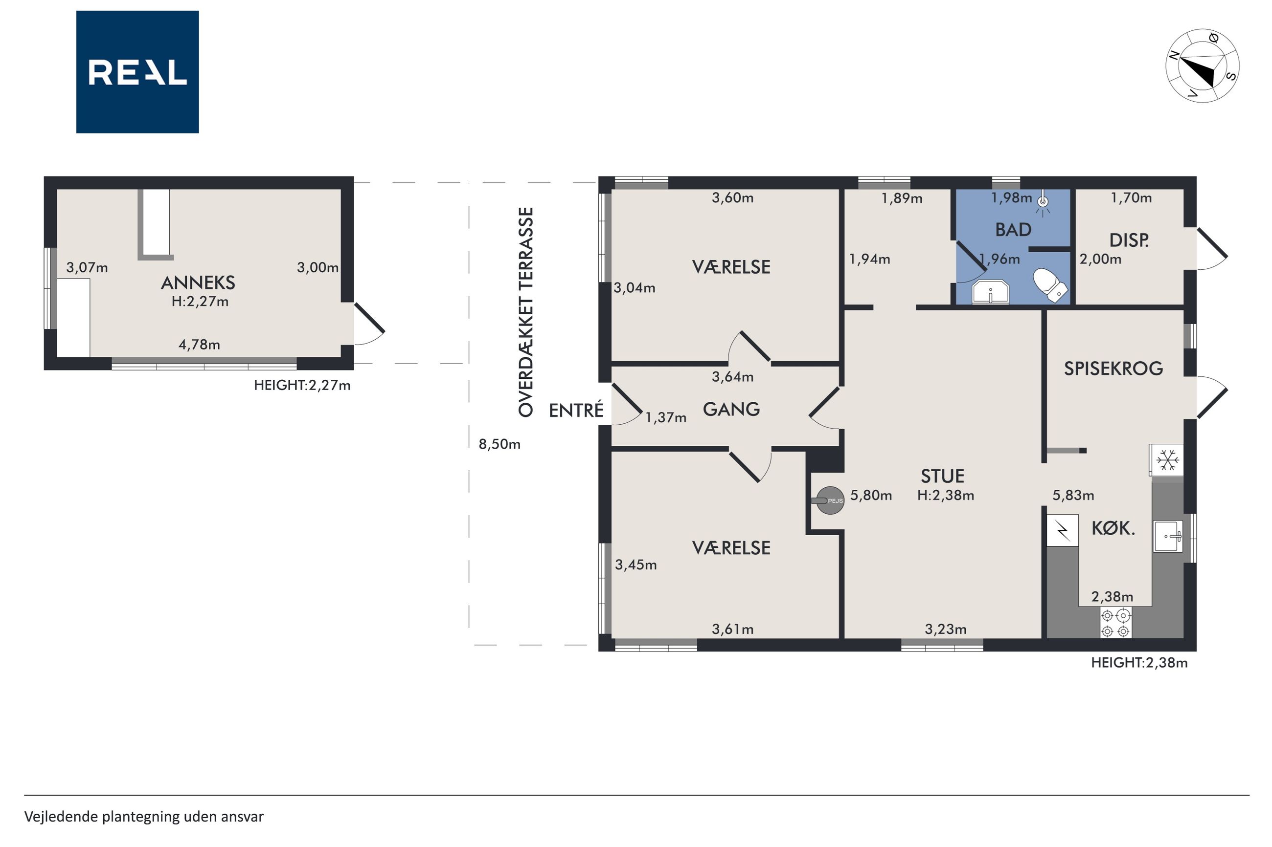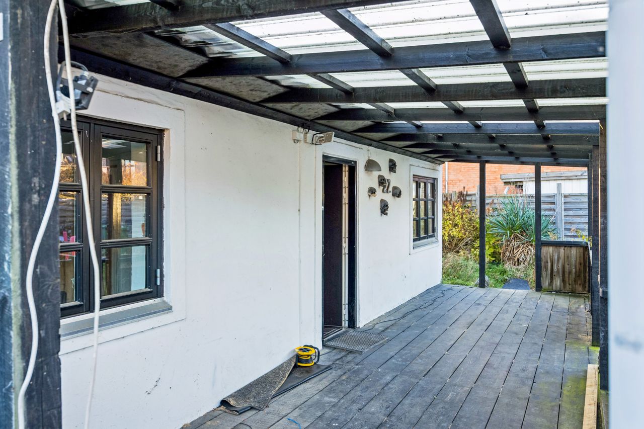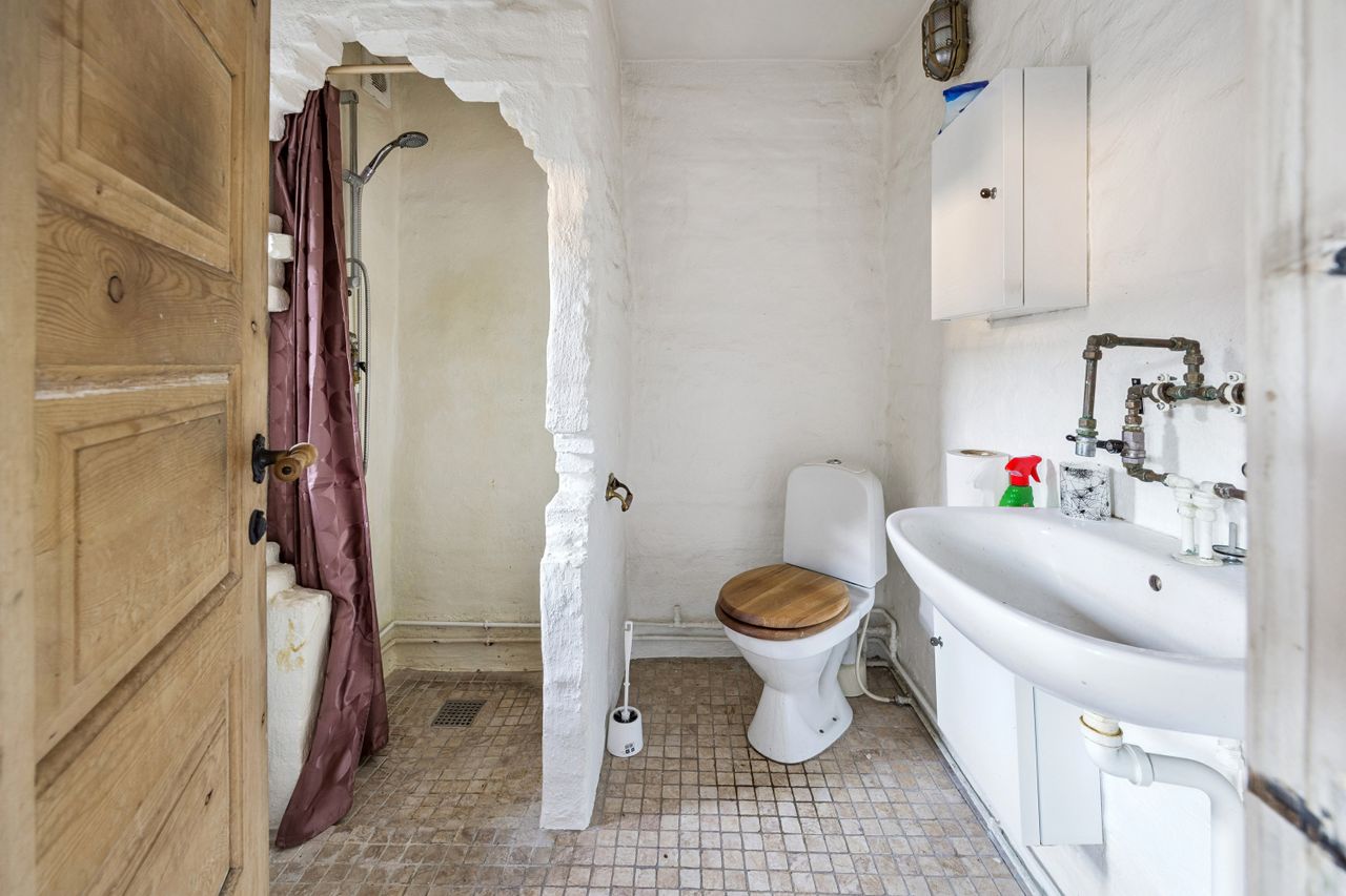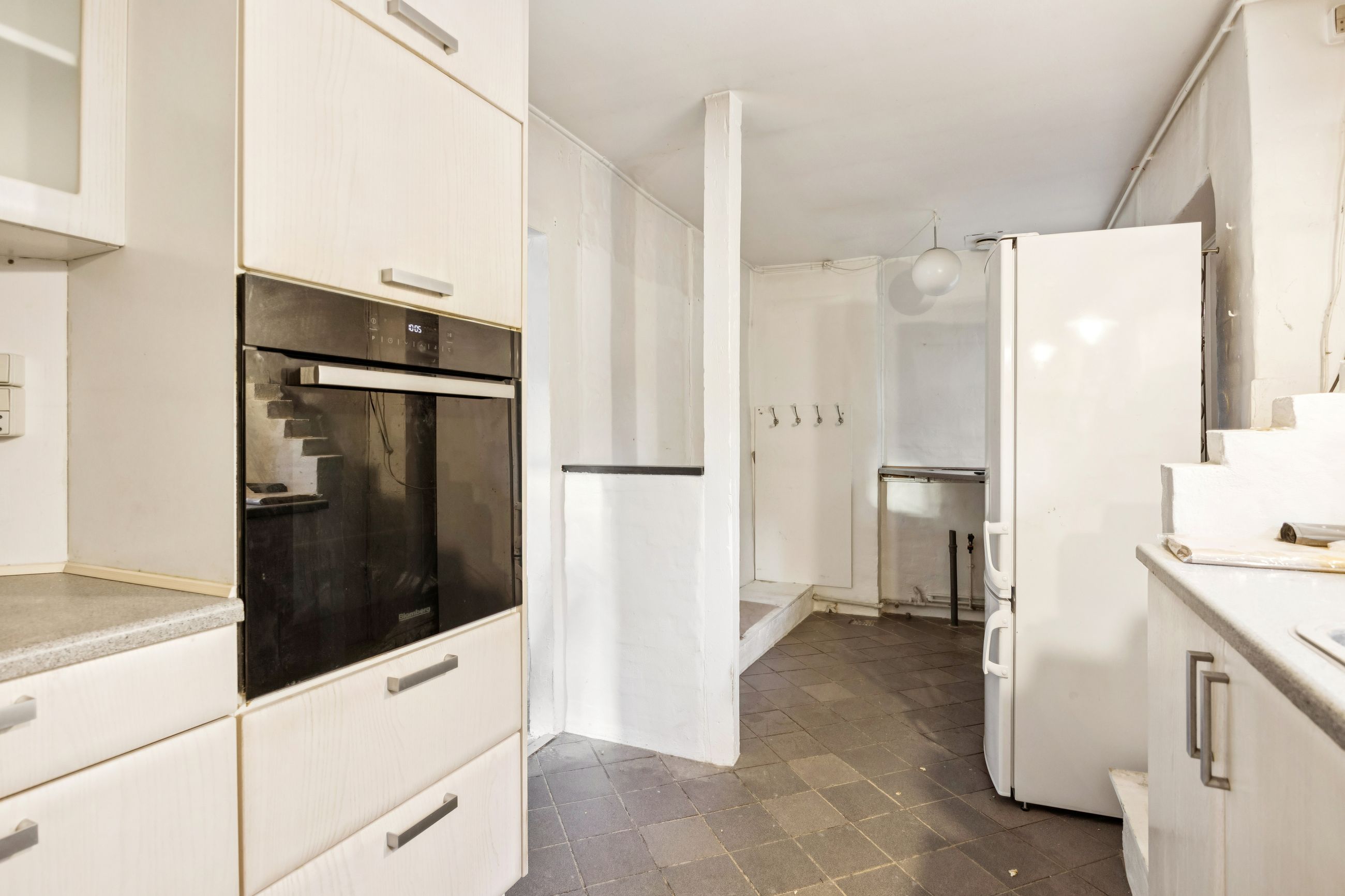 Indenfor finder du to gode soveværelser og en stor stue, der giver rigelig plads til både afslapning og underholdning. Køkkenet er indrettet med hvide elementer. Selvom huset står i delvist rå stand indvendigt, rummer det et enormt potentiale for den kreative køber, der ønsker at sætte sit eget præg på boligen.