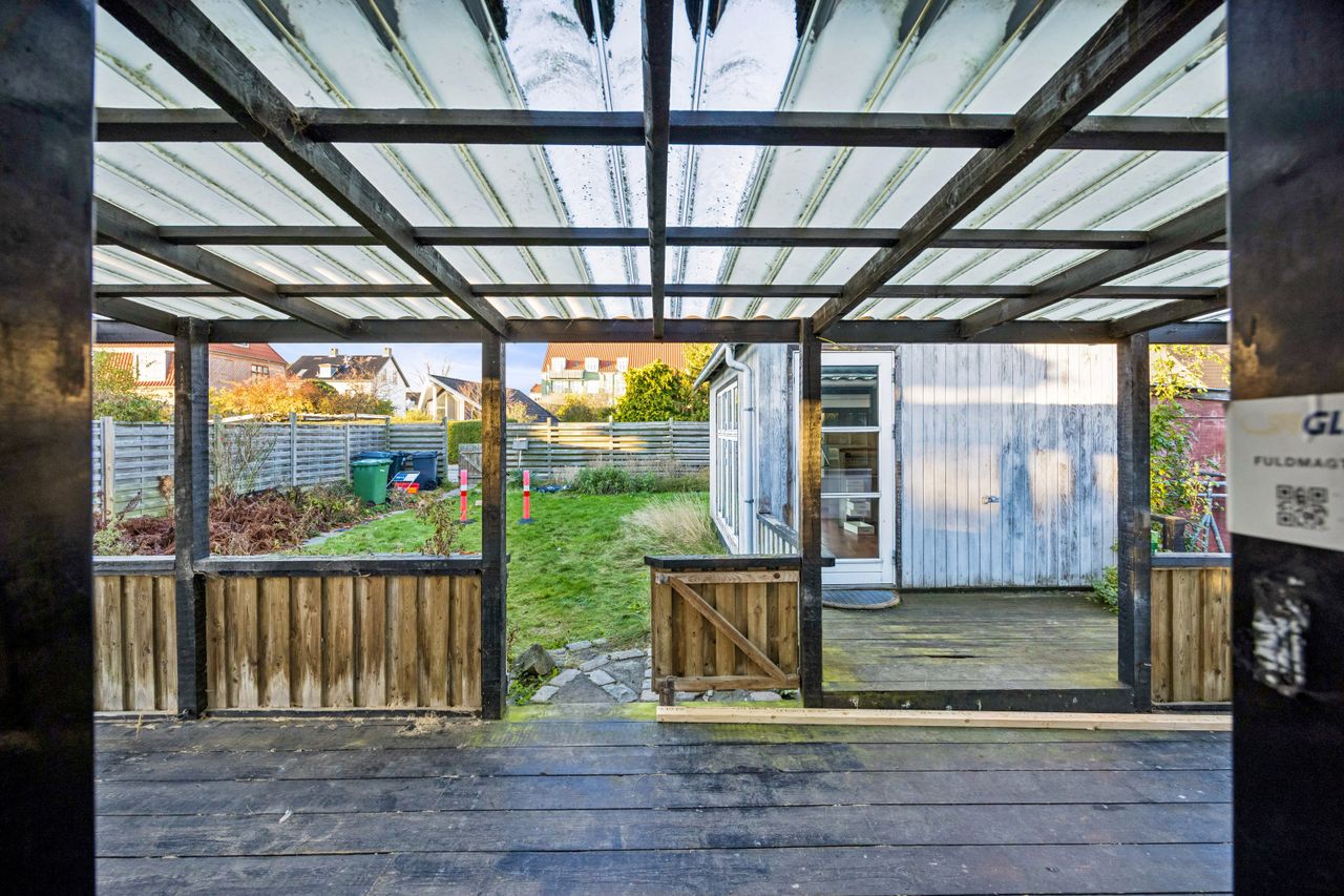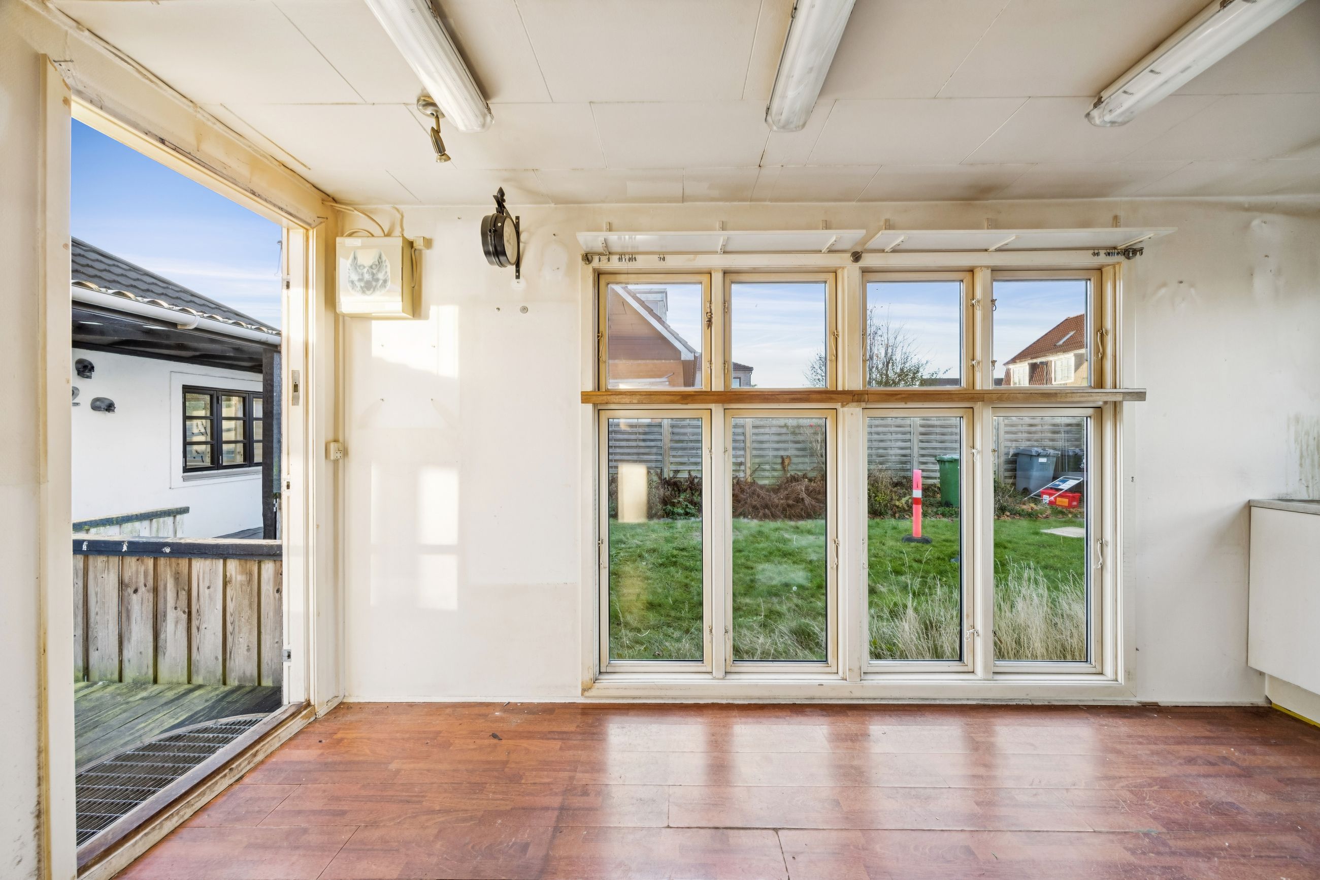 Udenfor byder ejendommen på en dejlig have med åbent kig mod nord, øst og vest, perfekt placeret for at nyde aftensolen eller morgenkaffen. Flere udgange fra huset fører direkte ud i haven.