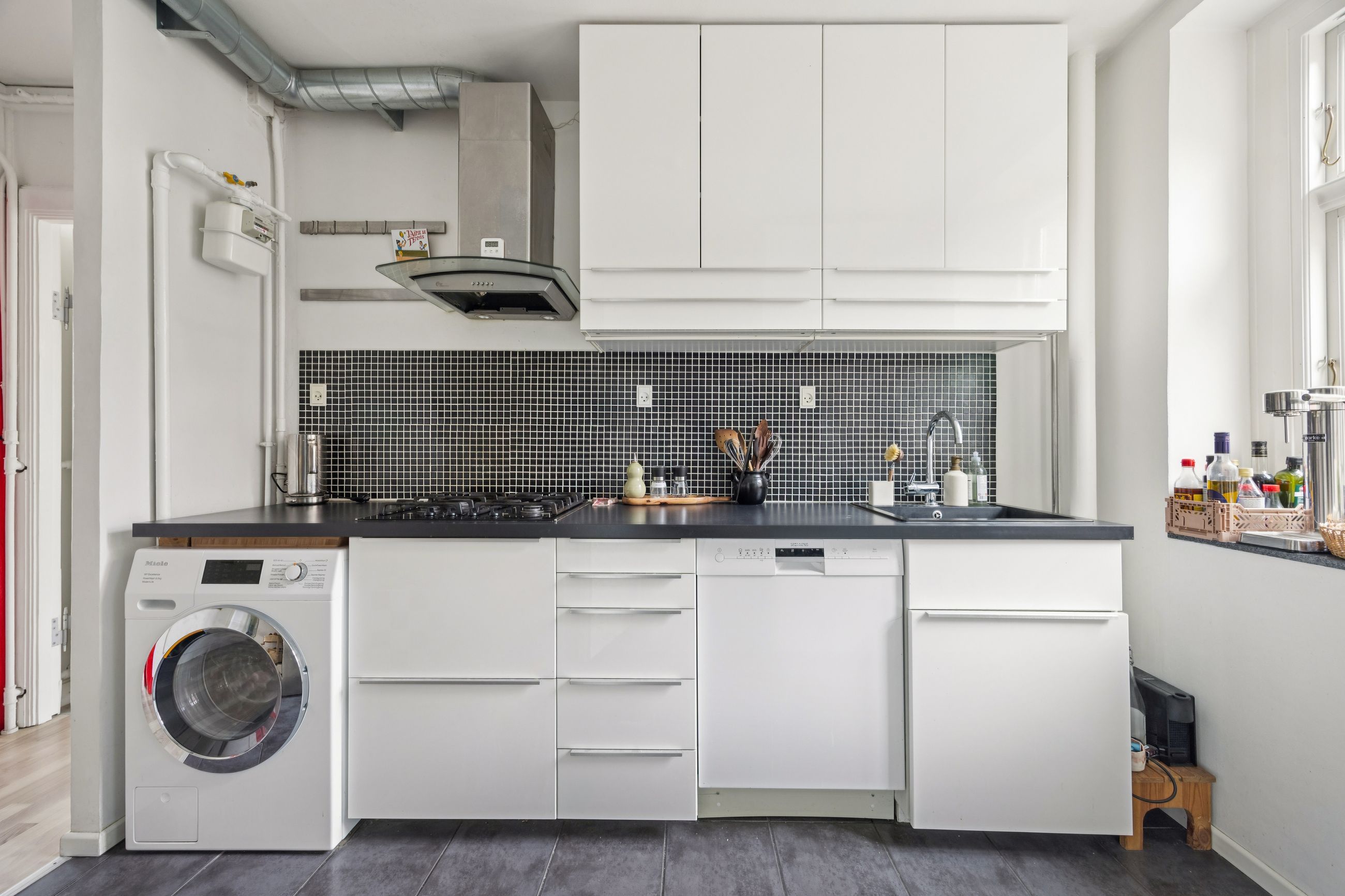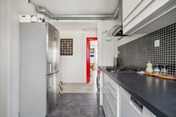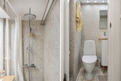 Køkkenet fremstår moderne med rigelig bord og skabsplads, hvilket gør madlavningen til en fornøjelse – her føles intet trangt eller klemt. Badeværelset er stilrent og funktionelt med seperat bad og toilet.