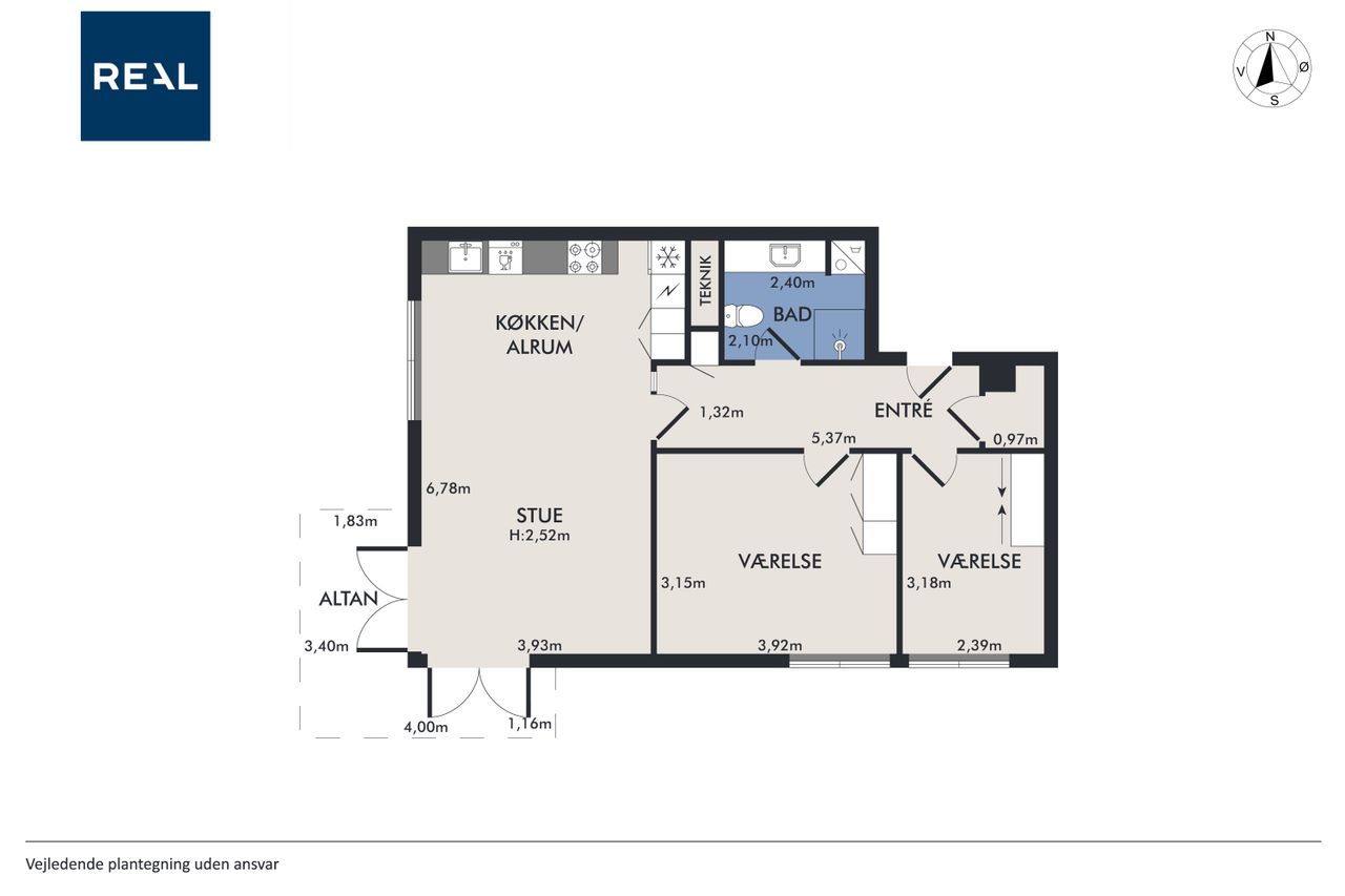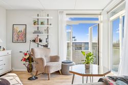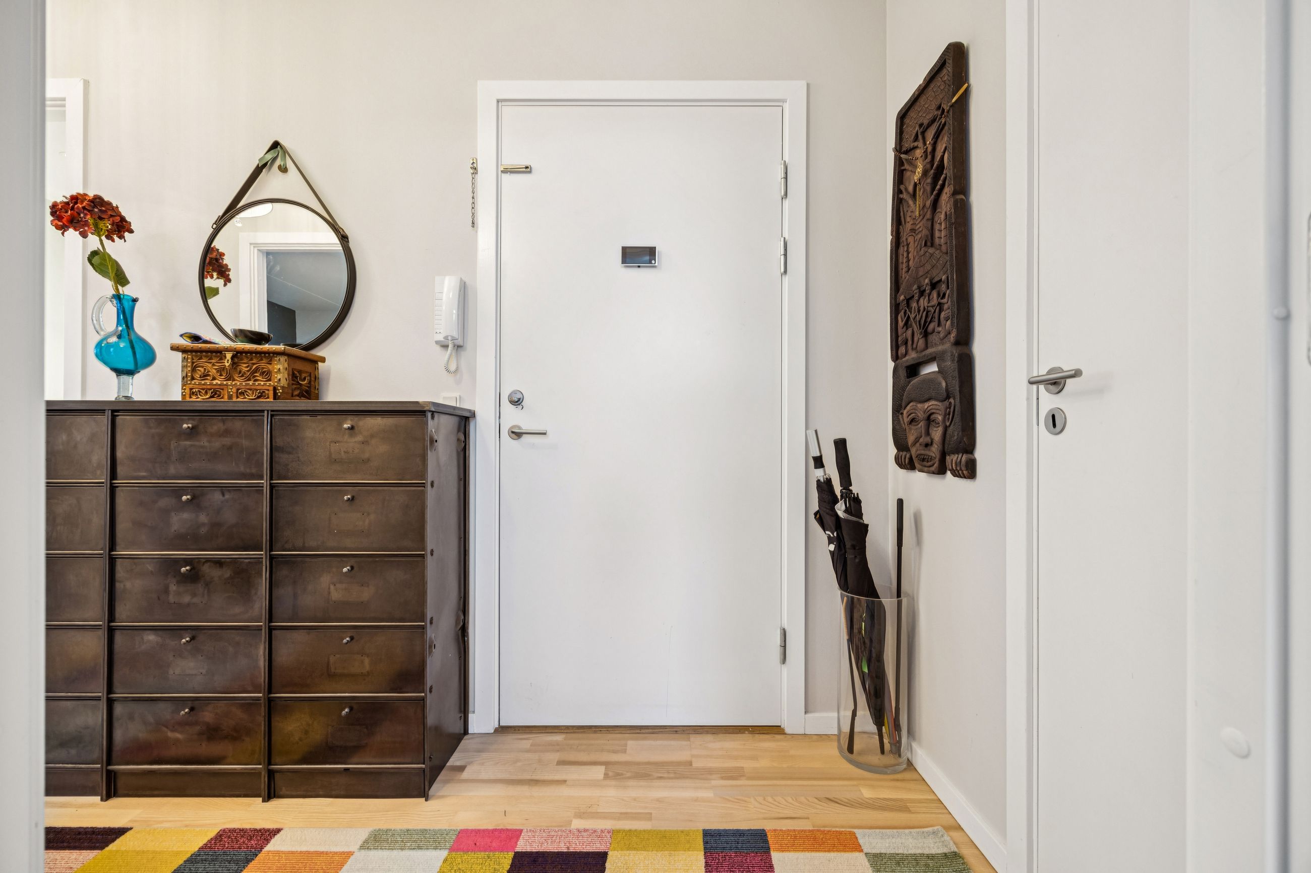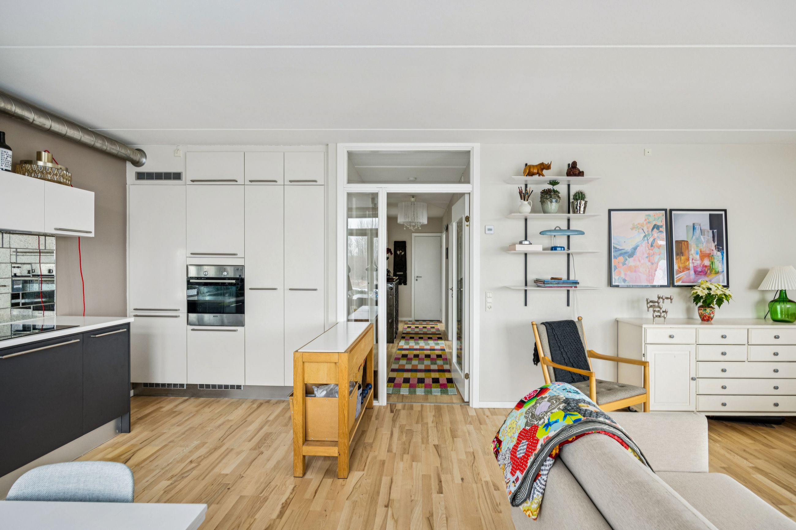 Fra du træder ind på i lejligheden bliver du straks mødt med en indbydende planløsning med entré, 2 soveværelser et rumligt badeværelse samt en stor opholdsstue kombineret med køkkenet som skaber den perfekte ramme til en nem, tryg hverdag for dig, der vil have alle moderne faciliteter uden at gå på kompromis.