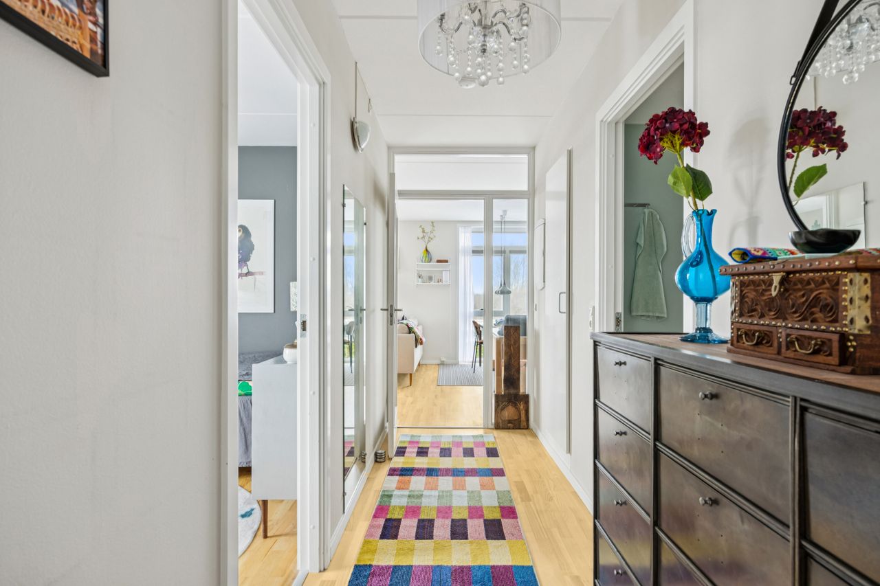 I 2024-25 fik ejendommen en total facelift med ny klimaskærm: 3-lags vinduer med solbeskyttelse, friske fuger, sokler og dobbeltdøre til altanen – resultatet? Lavere varmeudgifter, minimal trafikstøj og et roligt, varmt indeklima, du bare elsker at komme hjem i.