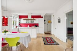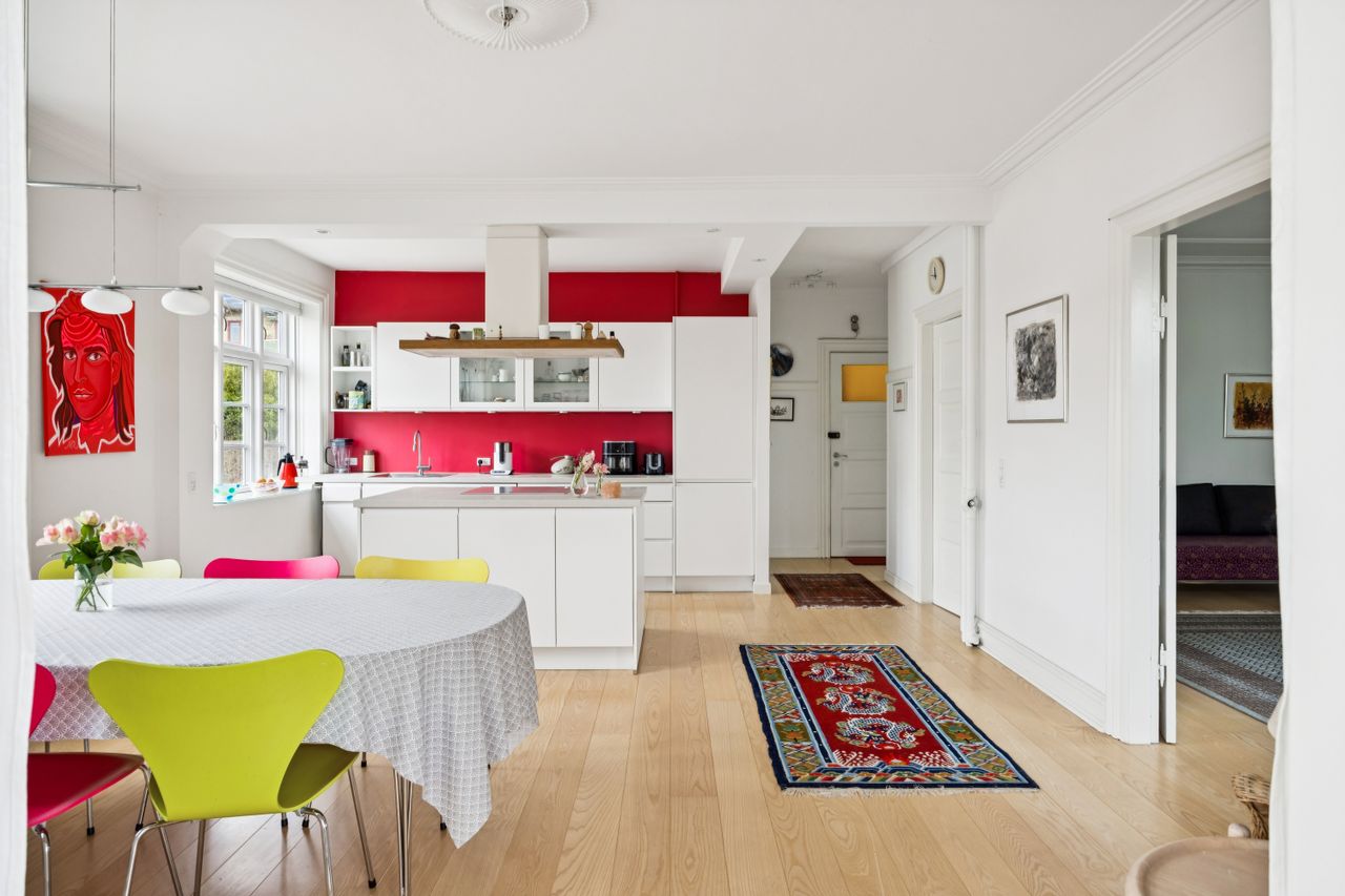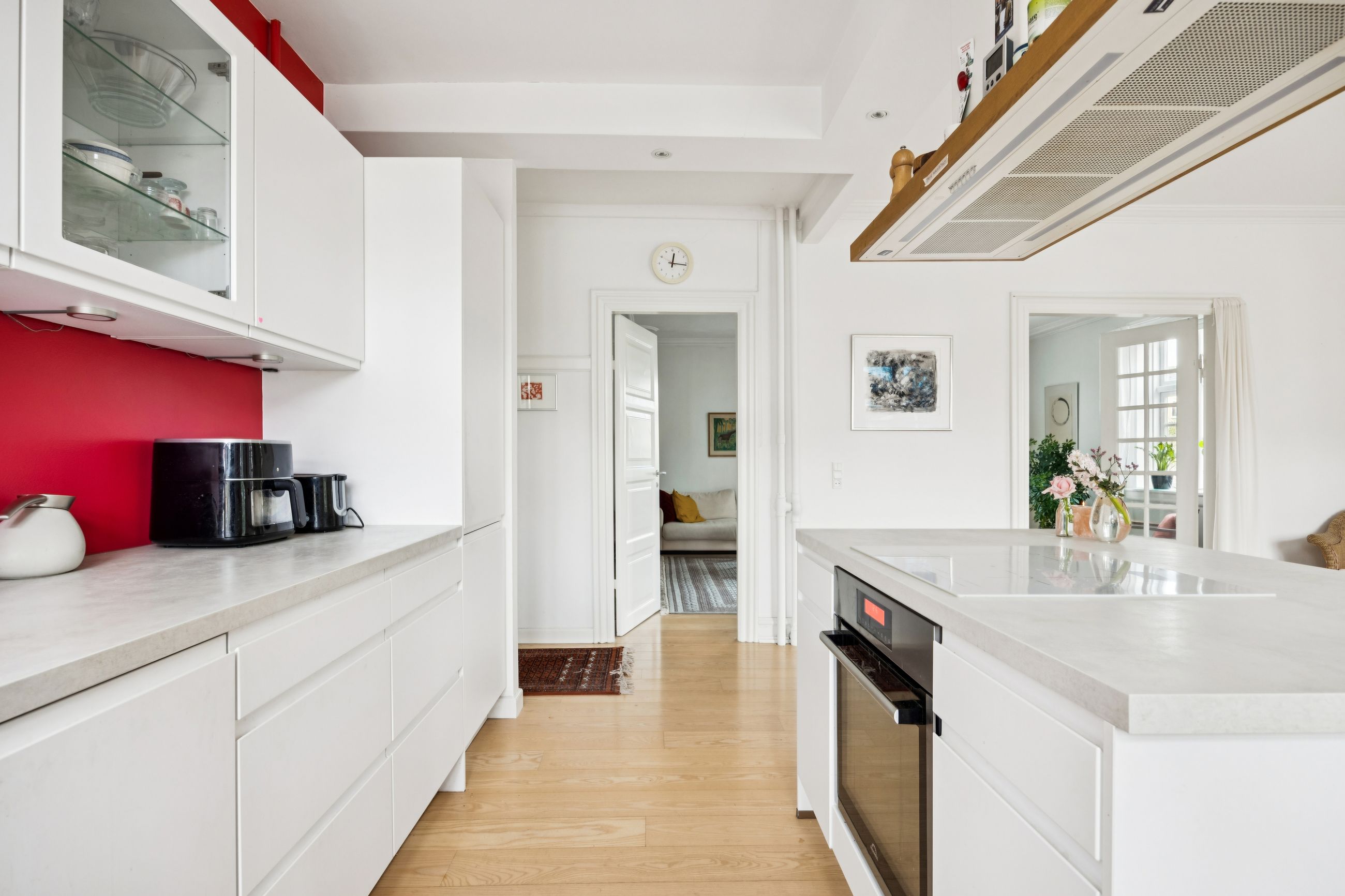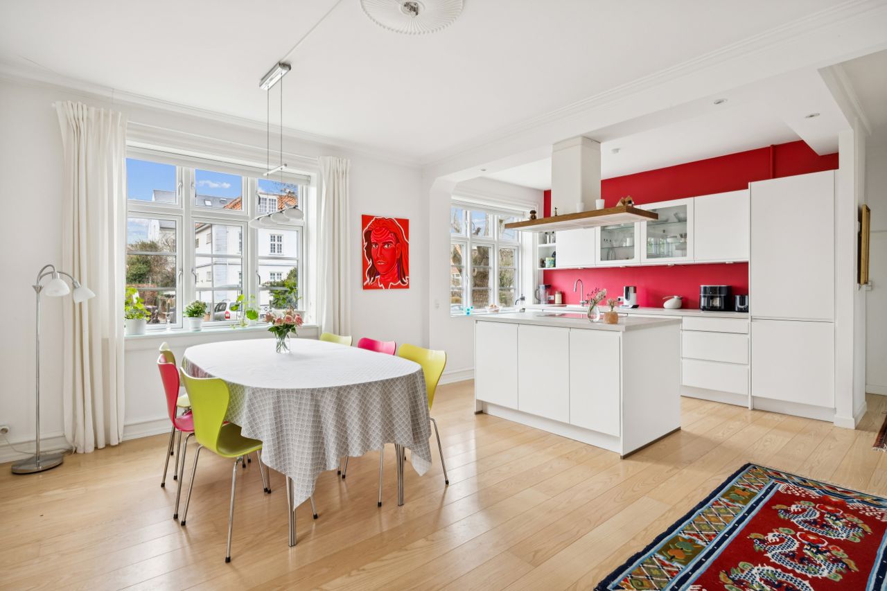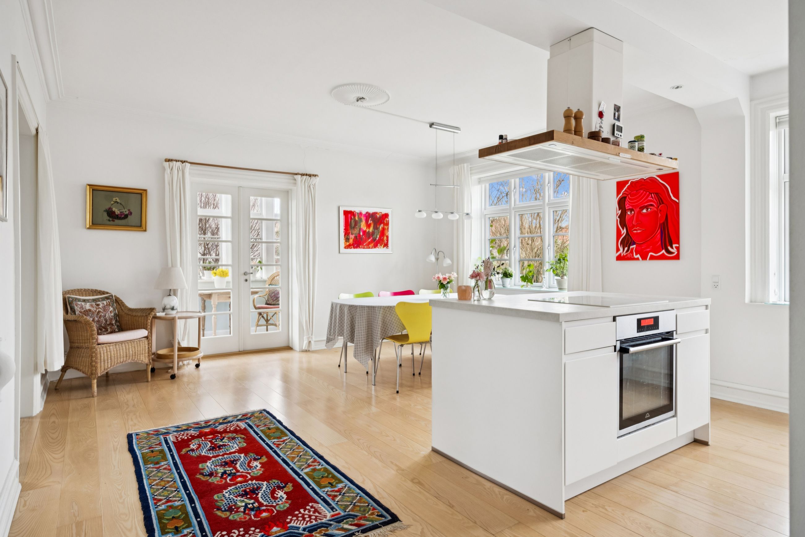 Boligen byder på en flot kombination af velholdte originale detaljer og moderne komfort. De høje lofter og vinduespartier komplimenterer den smukke stukkatur og pæne rosetter, så du får en helt særlig atmosfære. Dette alt imens det velindrettede samtalekøkken fra 2017 fremstår både funktionelt og indbydende med god skabsplads og plads til hyggelig madlavning. Spisestuen er i direkte forlængelse af køkkenet og hvad bedre en ensuite døre til den fantastisk, store stue. Her toppes med en brændeovn, der sætter prikken over i'et på stemningen. Desuden er der gulvvarme i hele opholdsarealet.